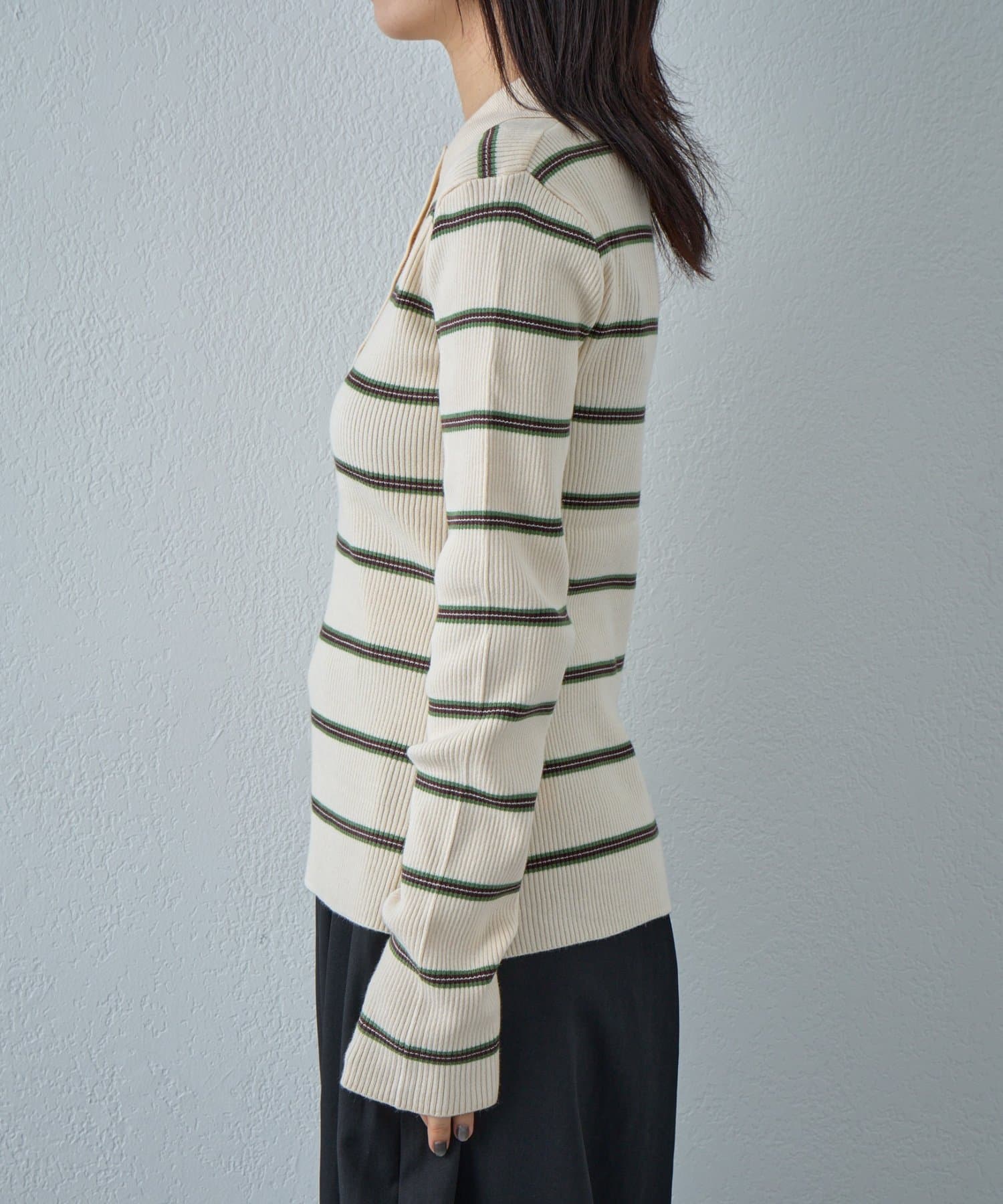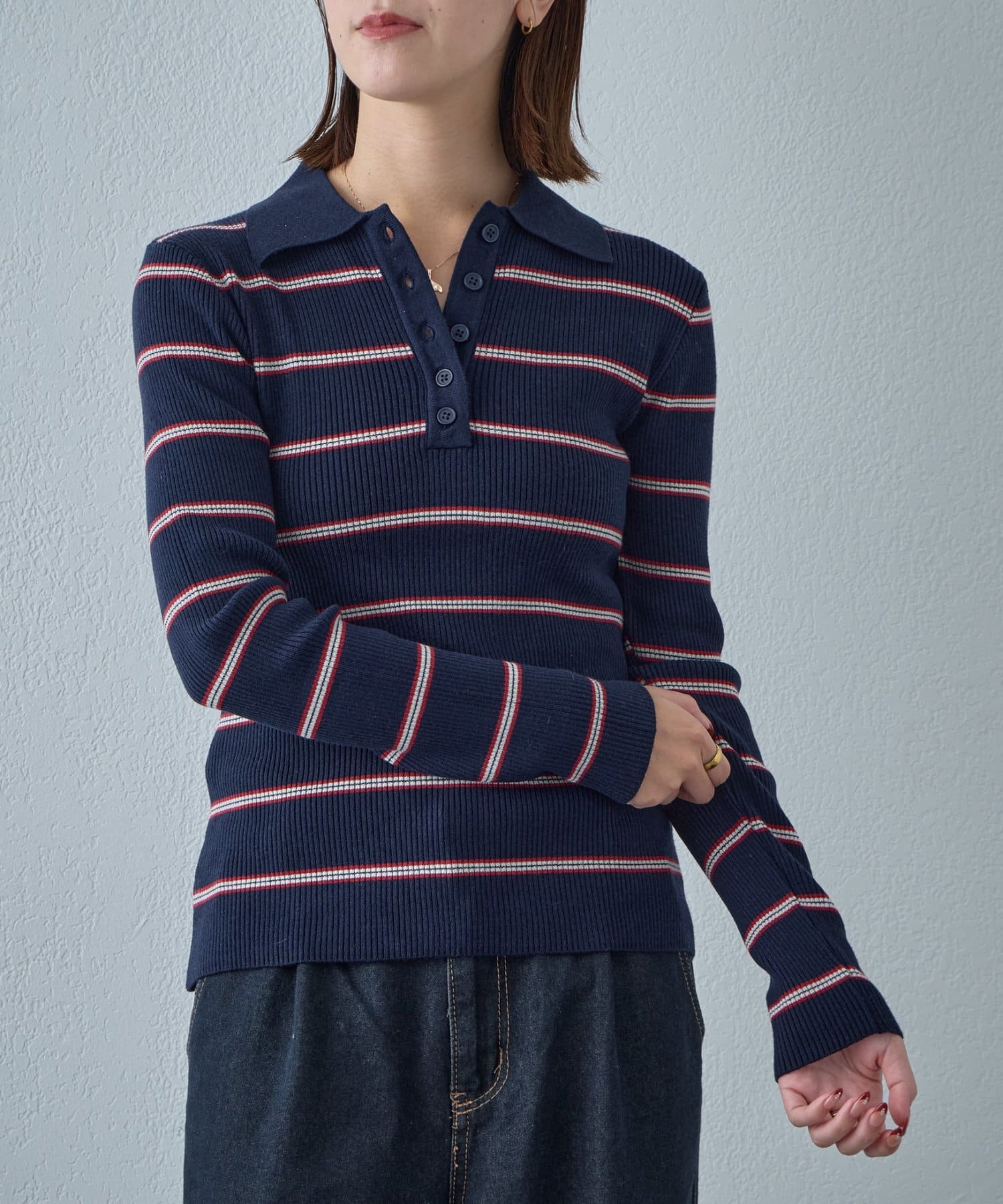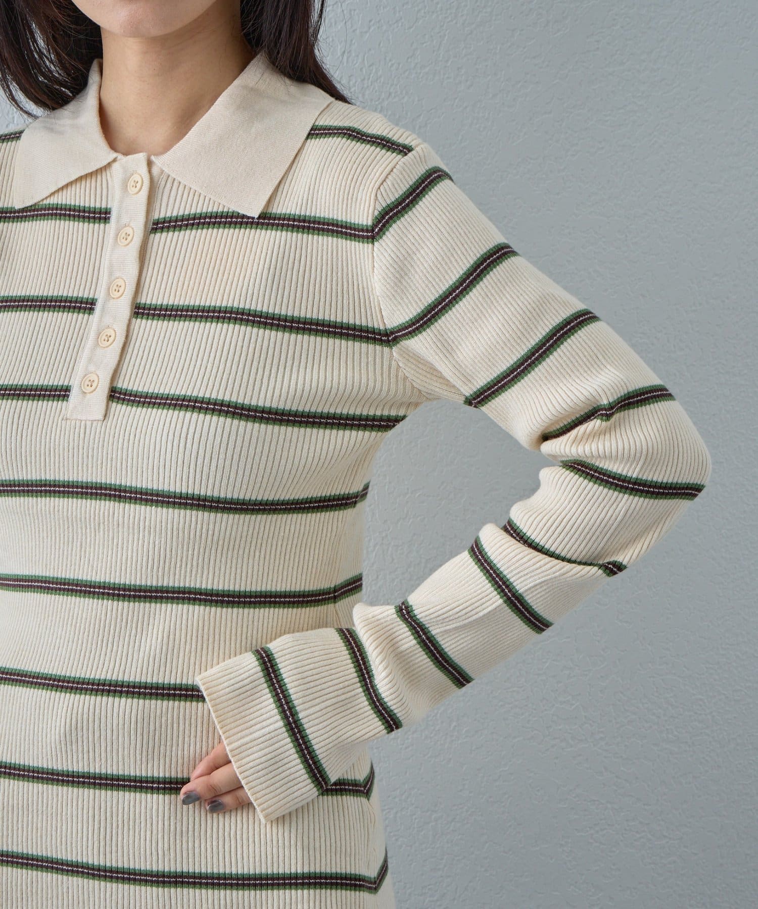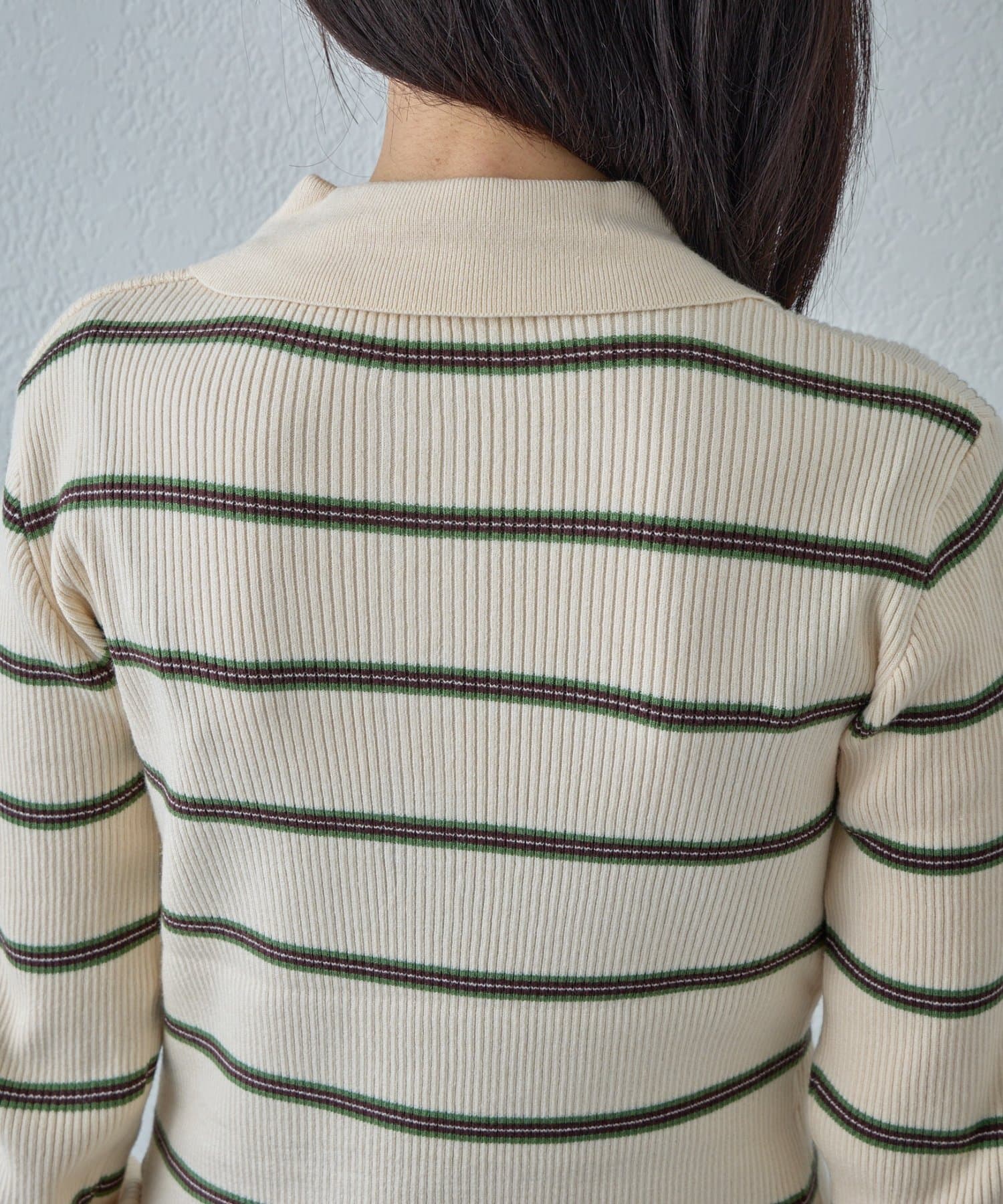 #ボーダーニット #ボーダーポロニット #襟付きニット #ポロニット