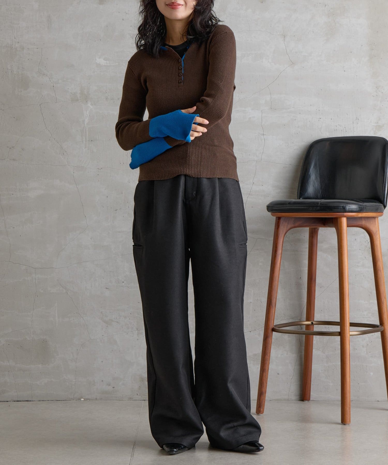 ・まっすぐ落ちるストレートシルエットで脚をすっきり見せるデザイン