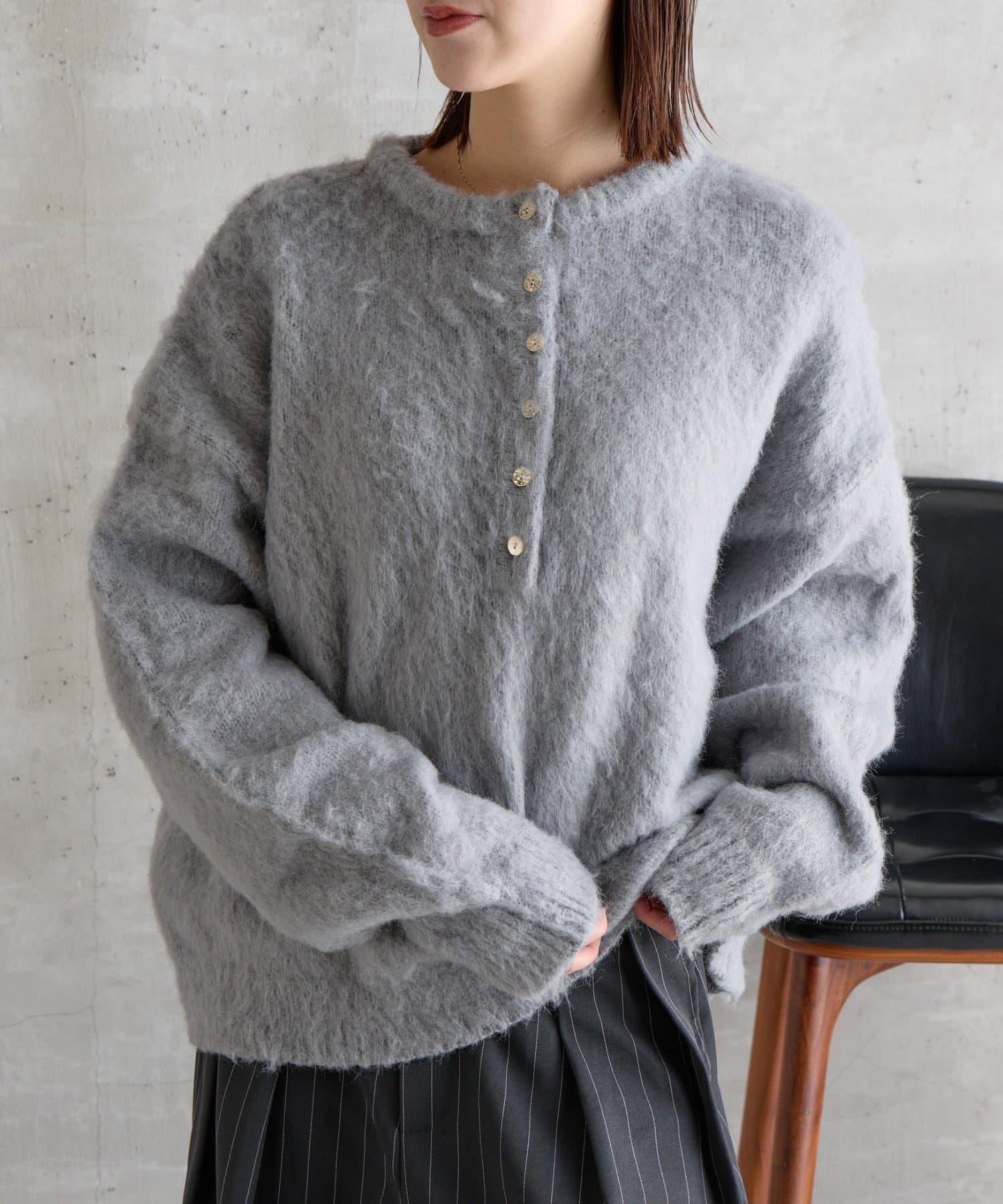 #ウールタッチ #ヘンリーネックニット #ヘンリーネック #ウールタッチヘンリーネック