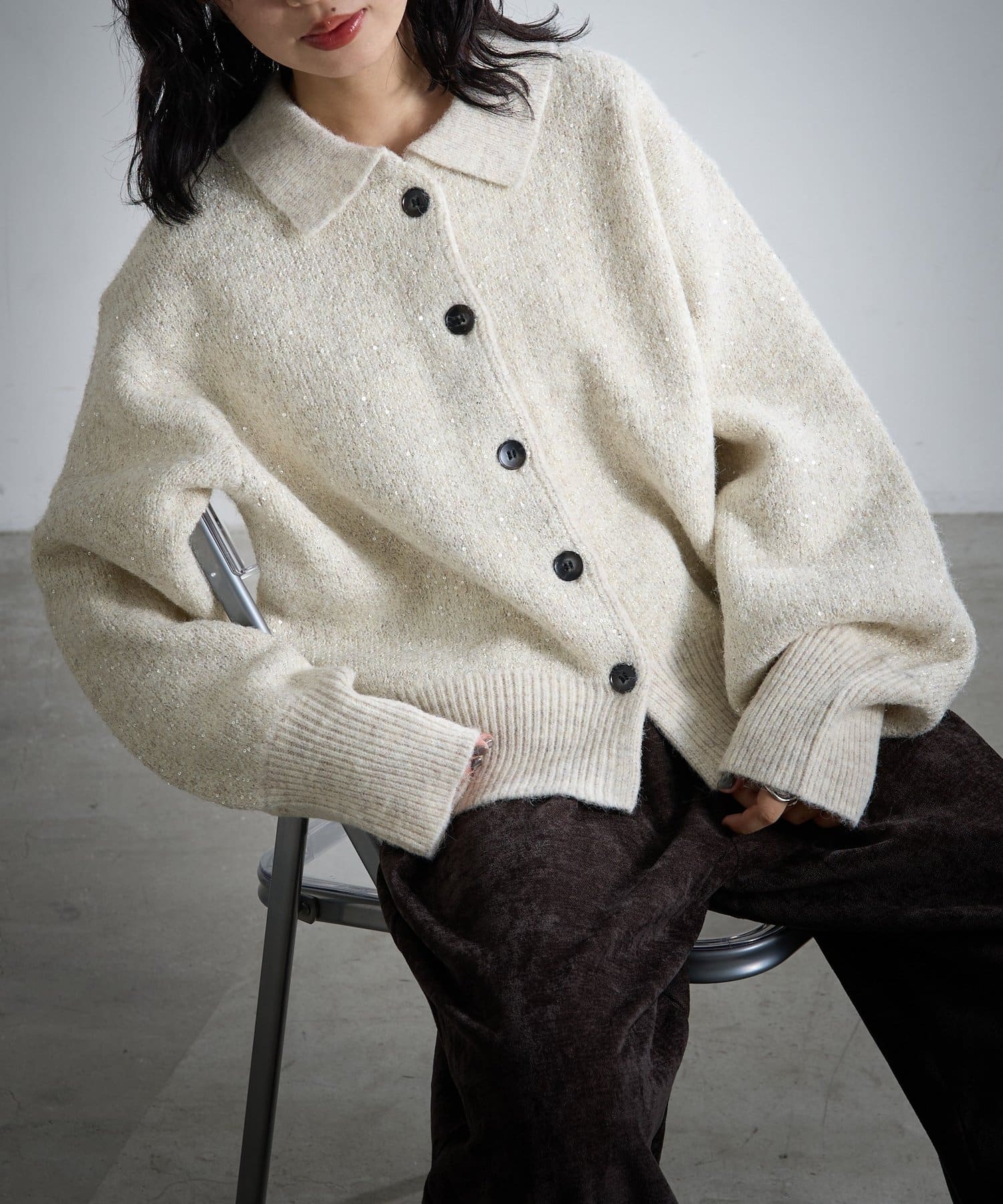 TOP > -goocy- > レディース > トップス > ニット/セーター > スパンコールポロカーディガン