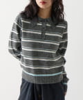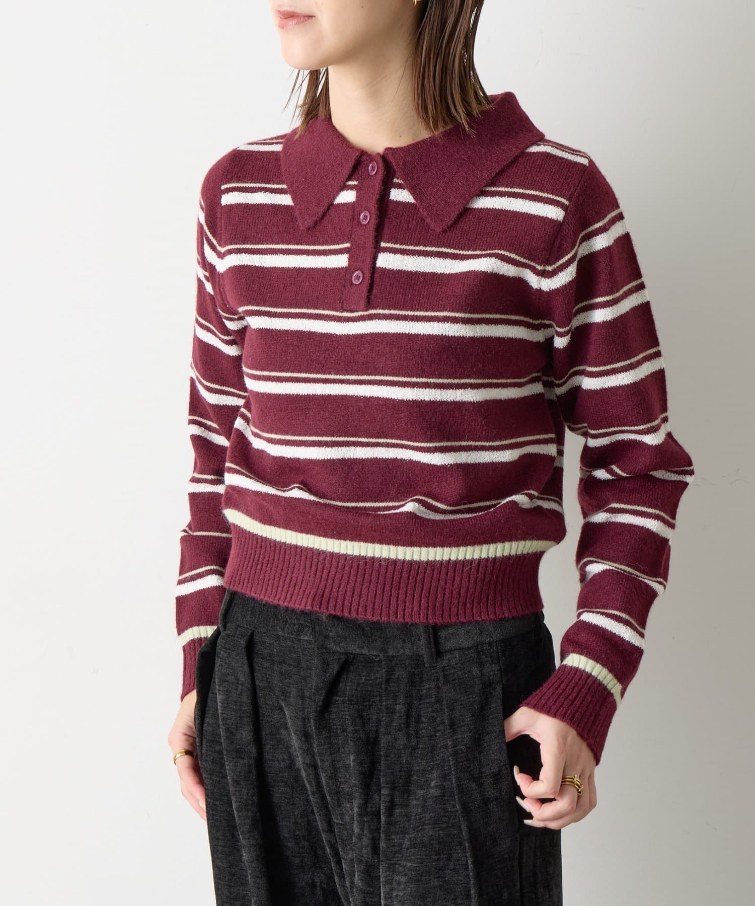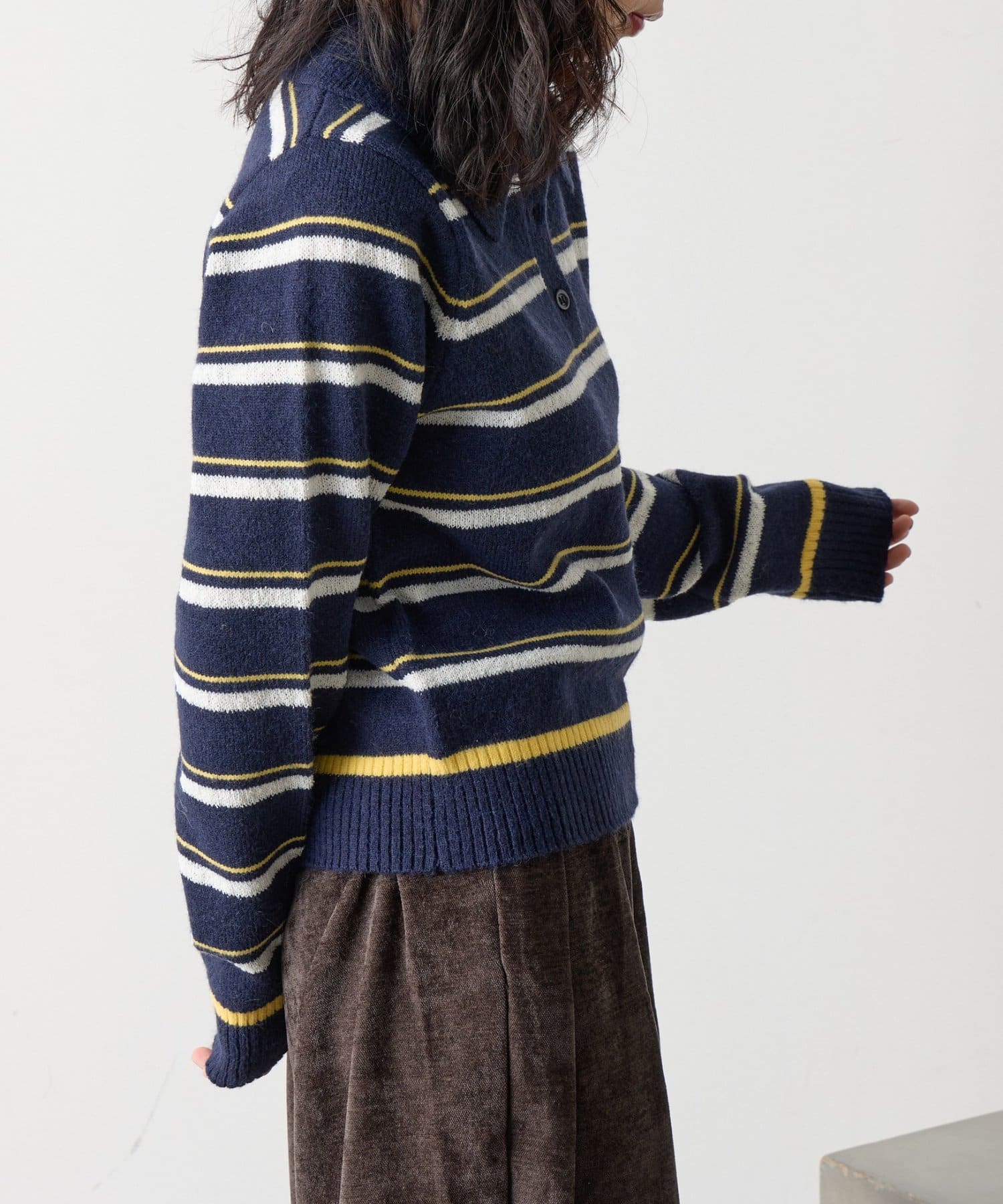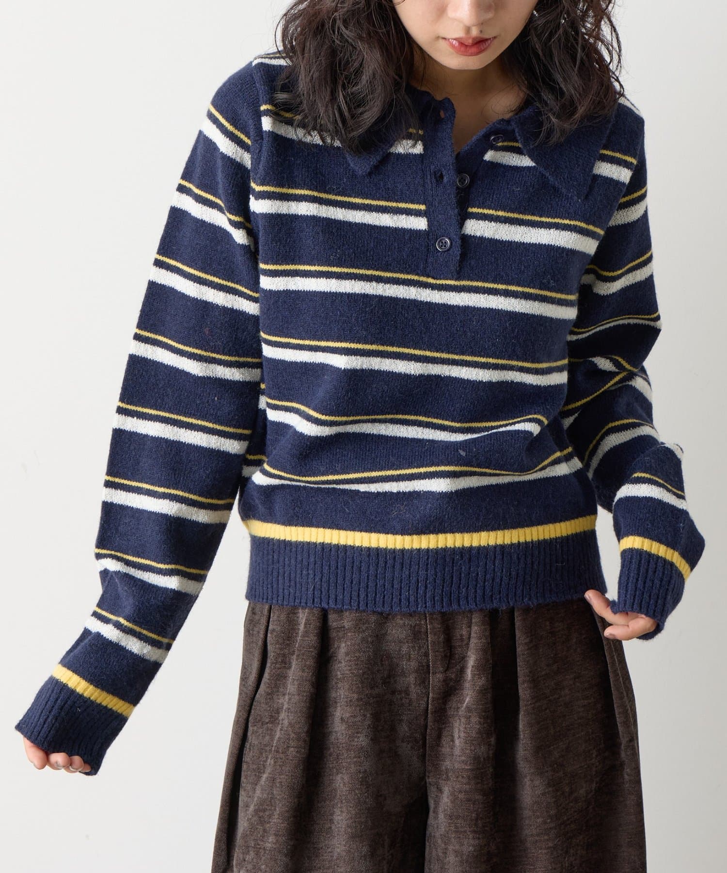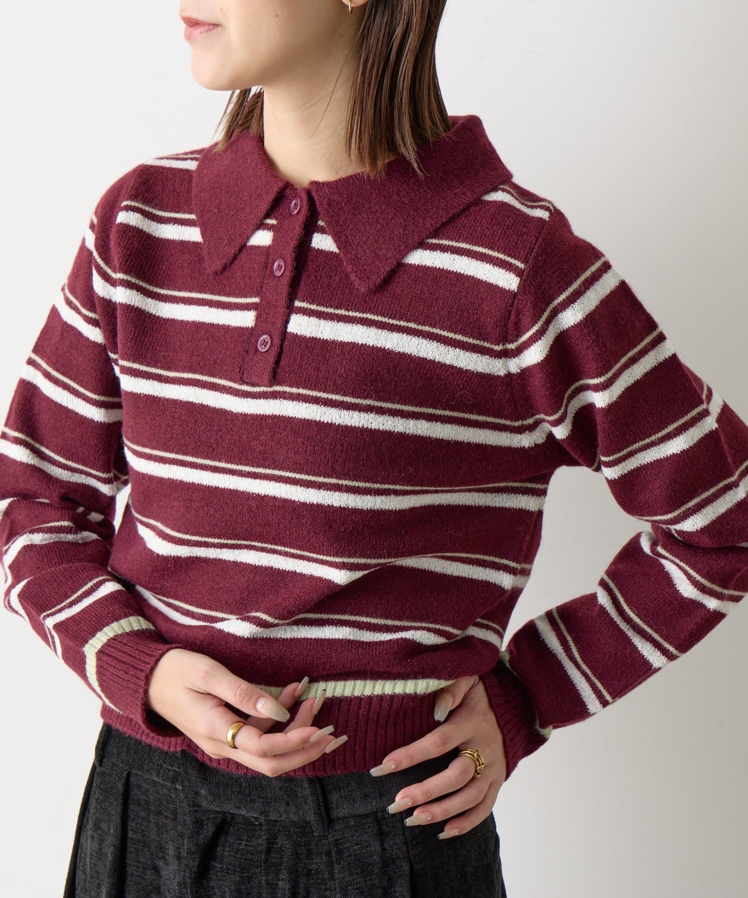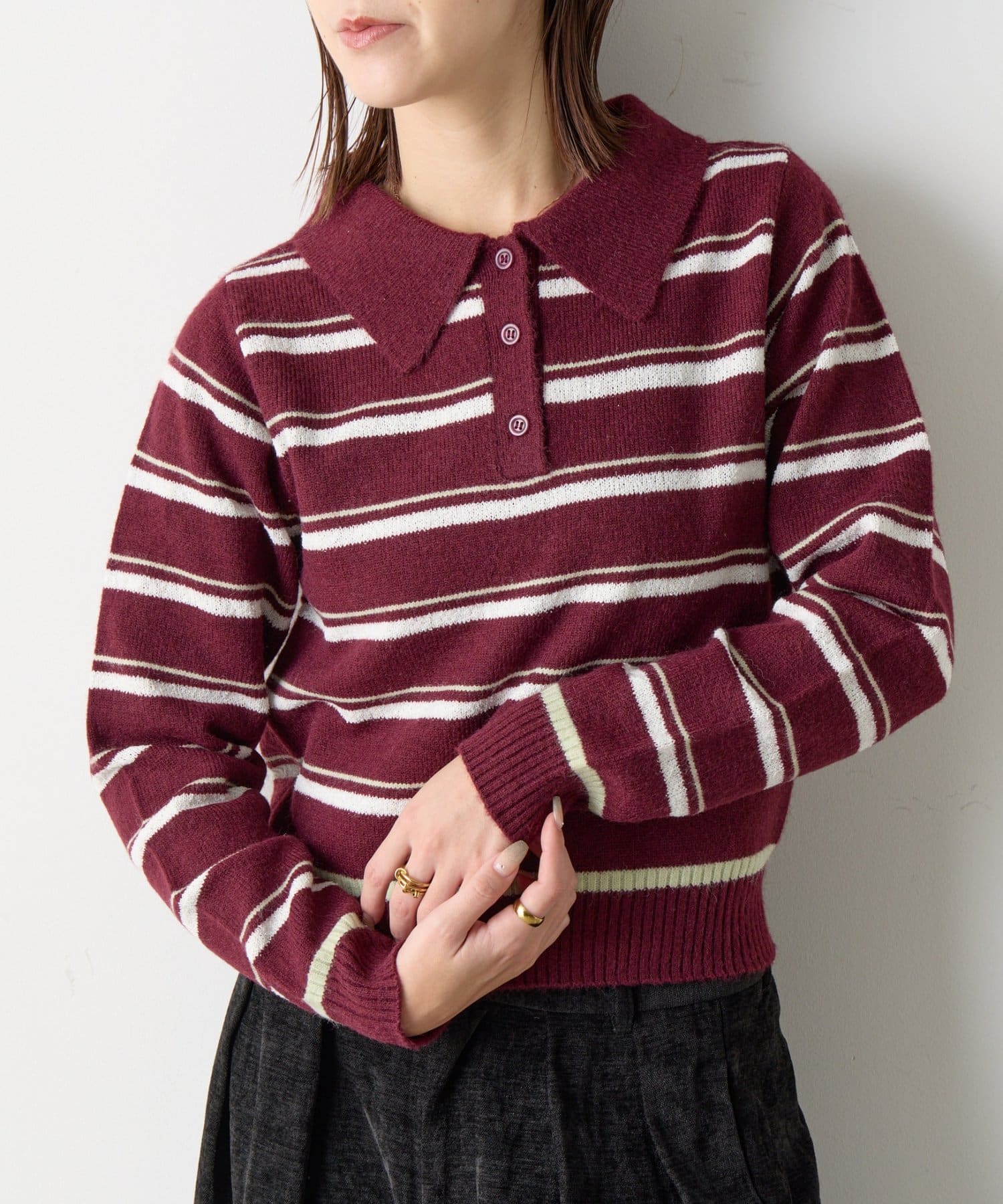 【着映えアイテム!】アルパカタッチボーダーポロニット