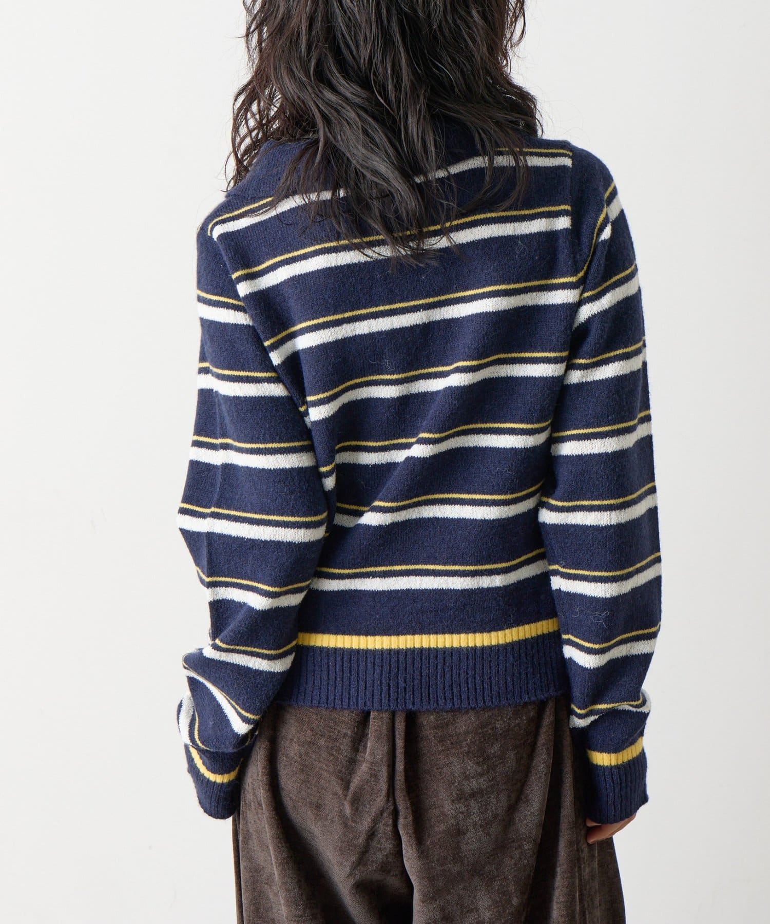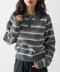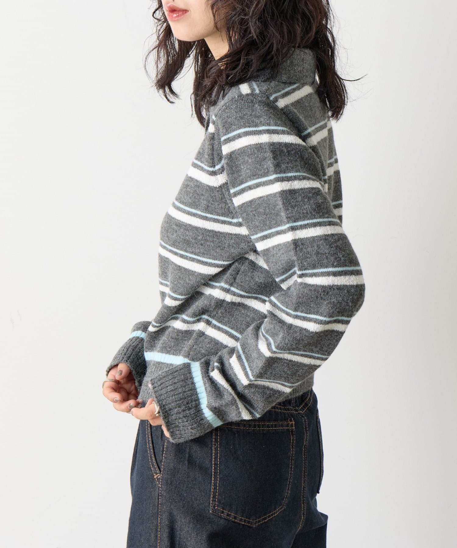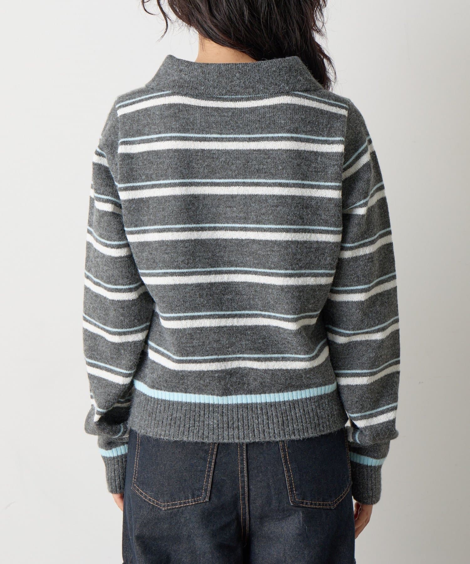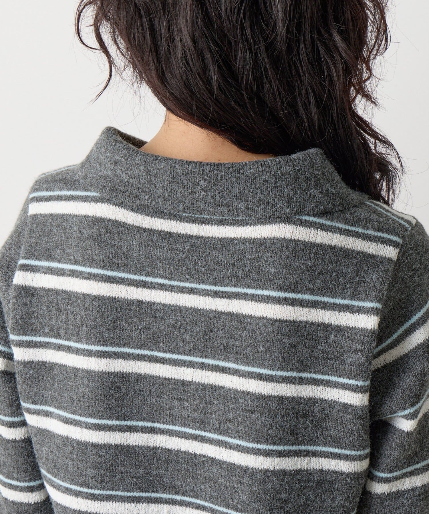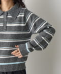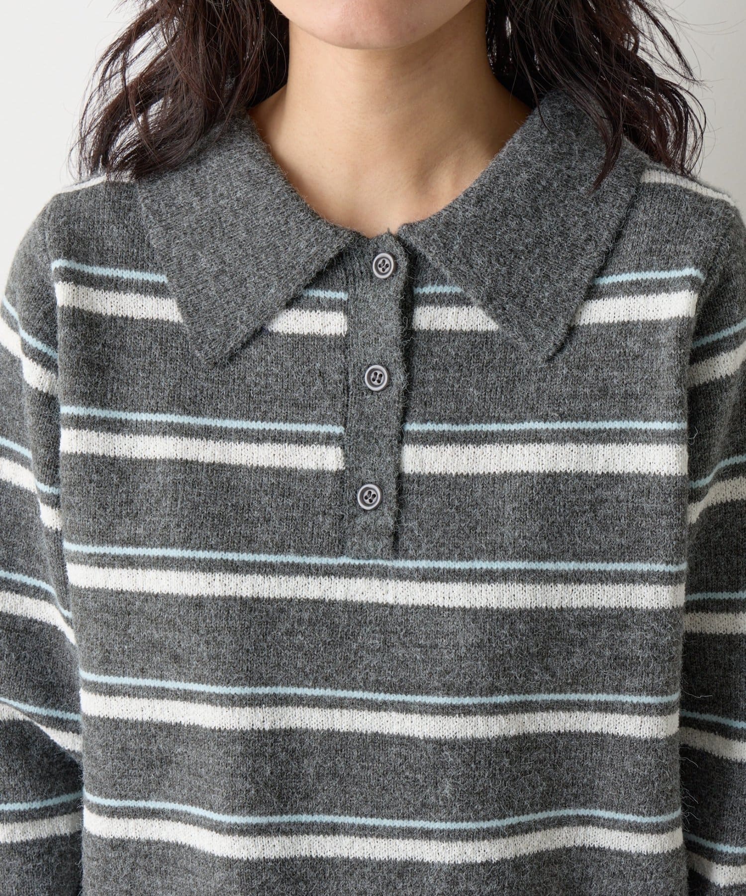 【着映えアイテム!】アルパカタッチボーダーポロニット