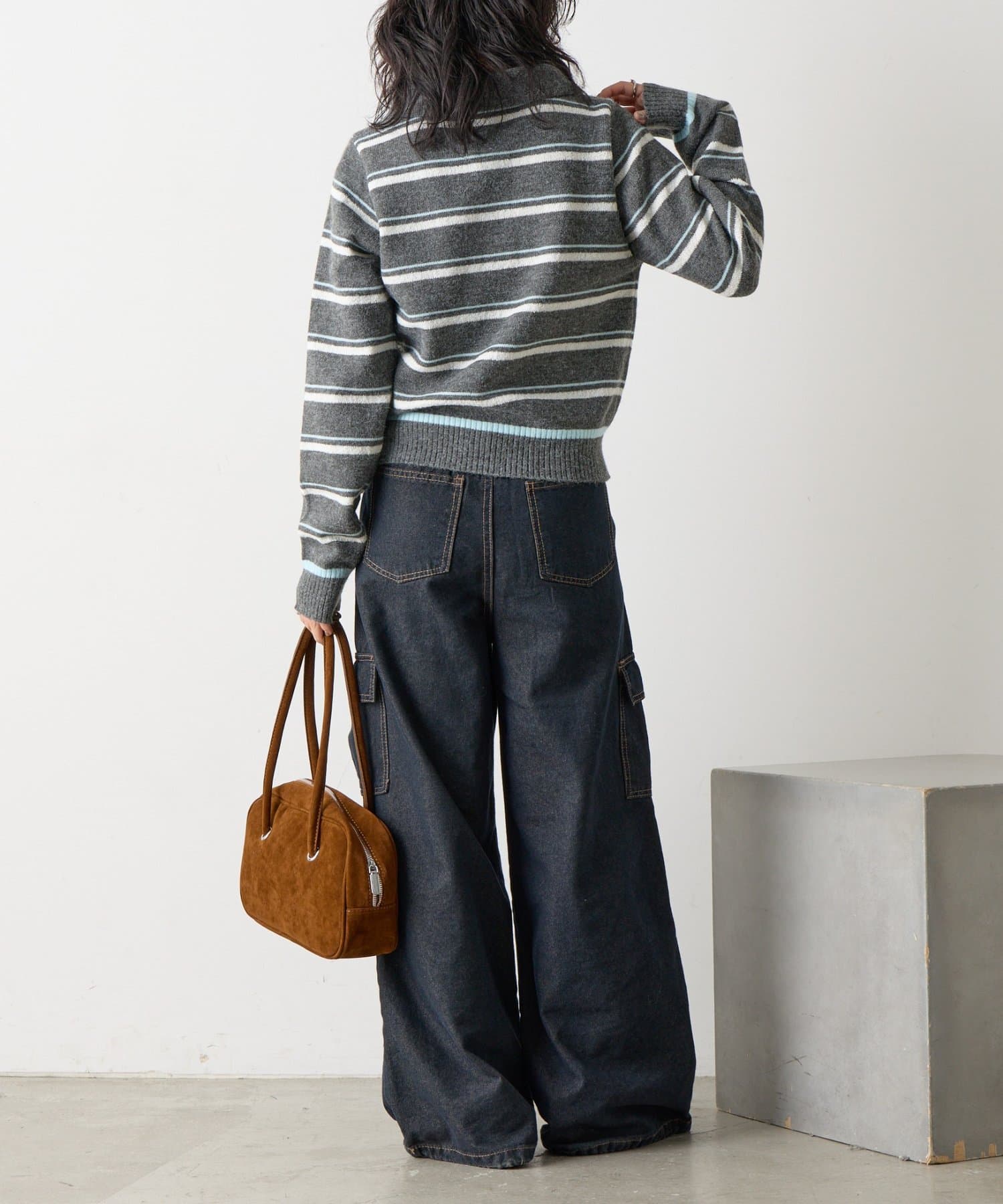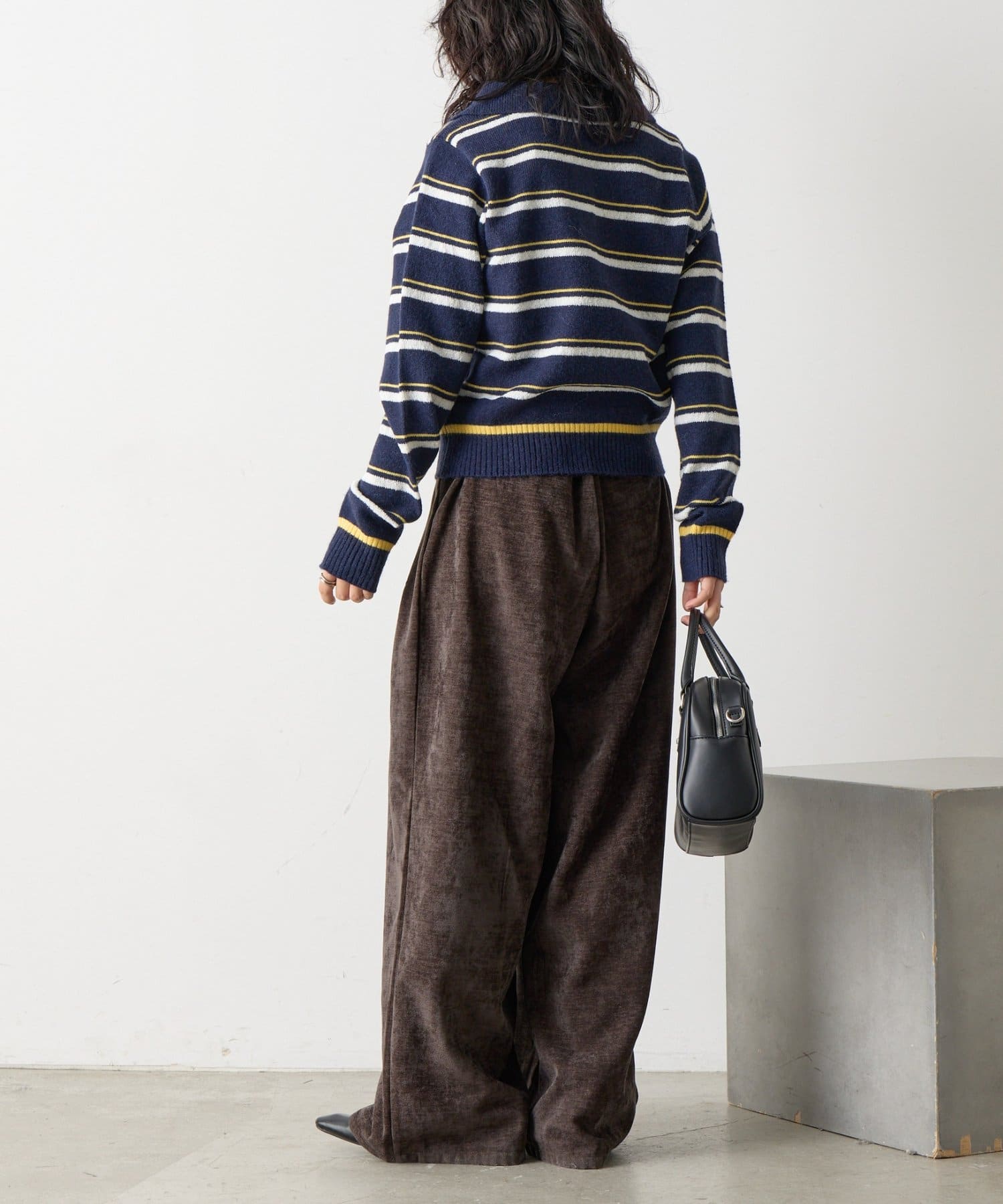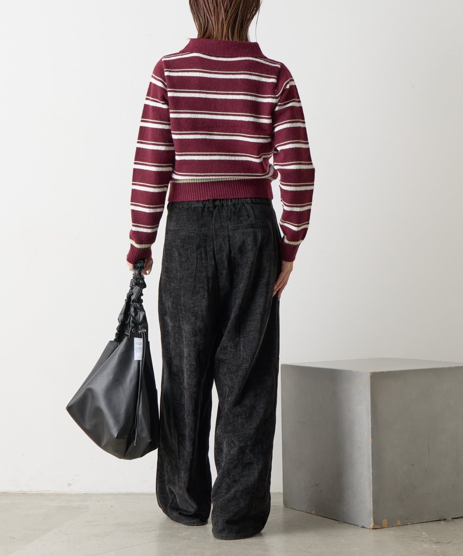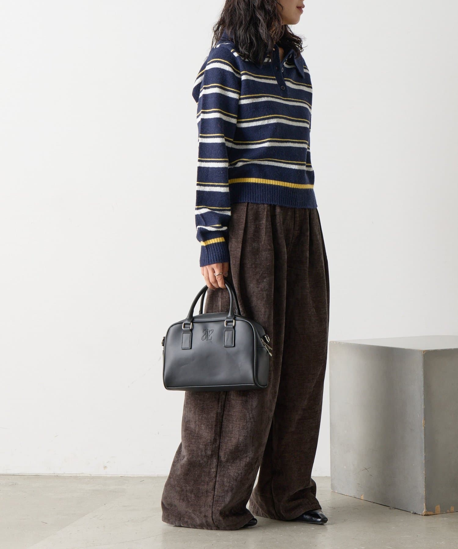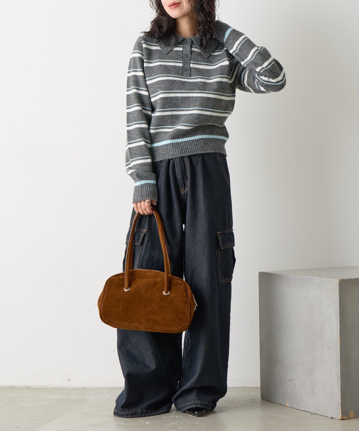 【着映えアイテム!】アルパカタッチボーダーポロニット