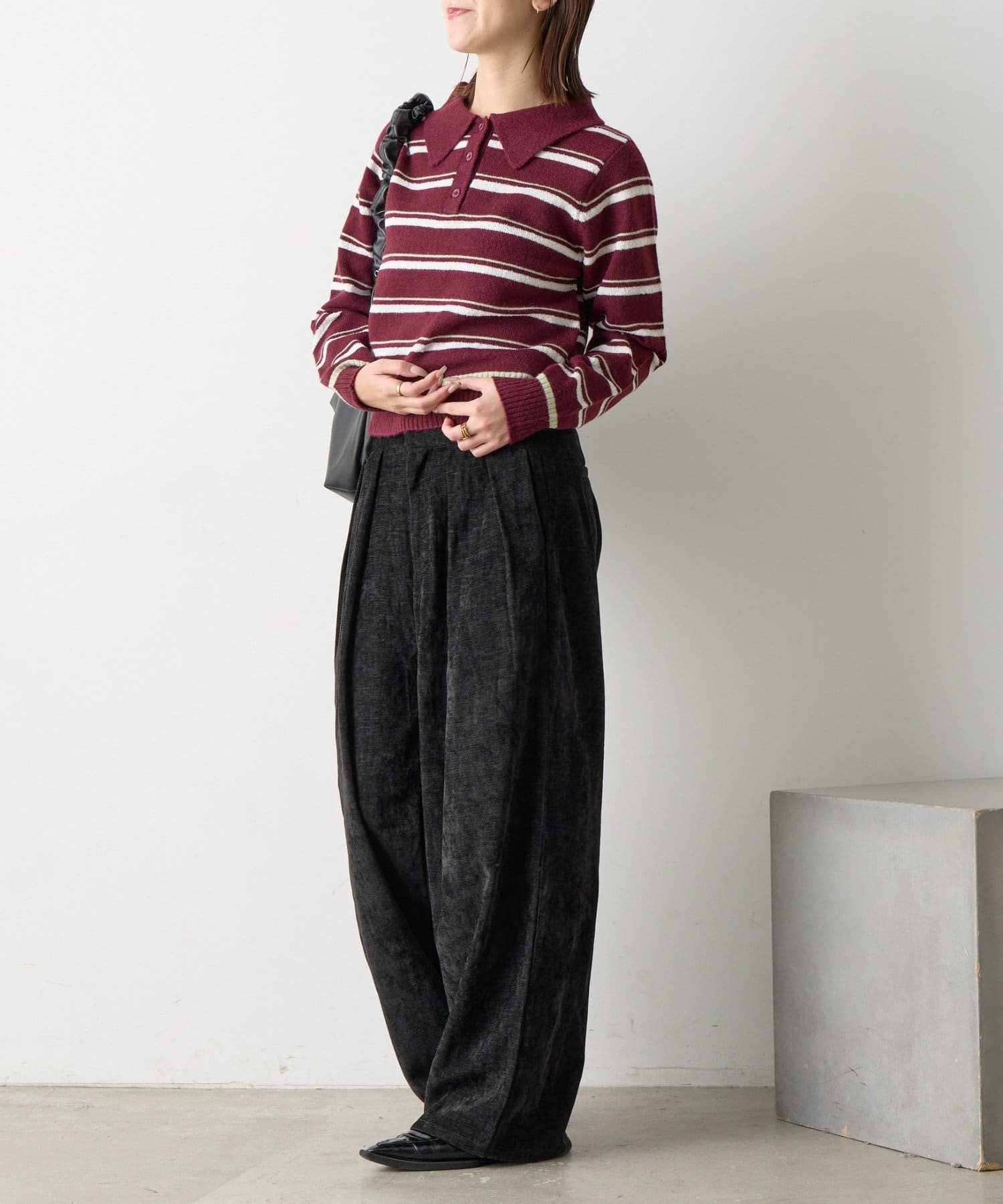 ・タイトめなトップスなのでボリュームのあるパンツや、ワイドシルエットパンツ合わせがおすすめ