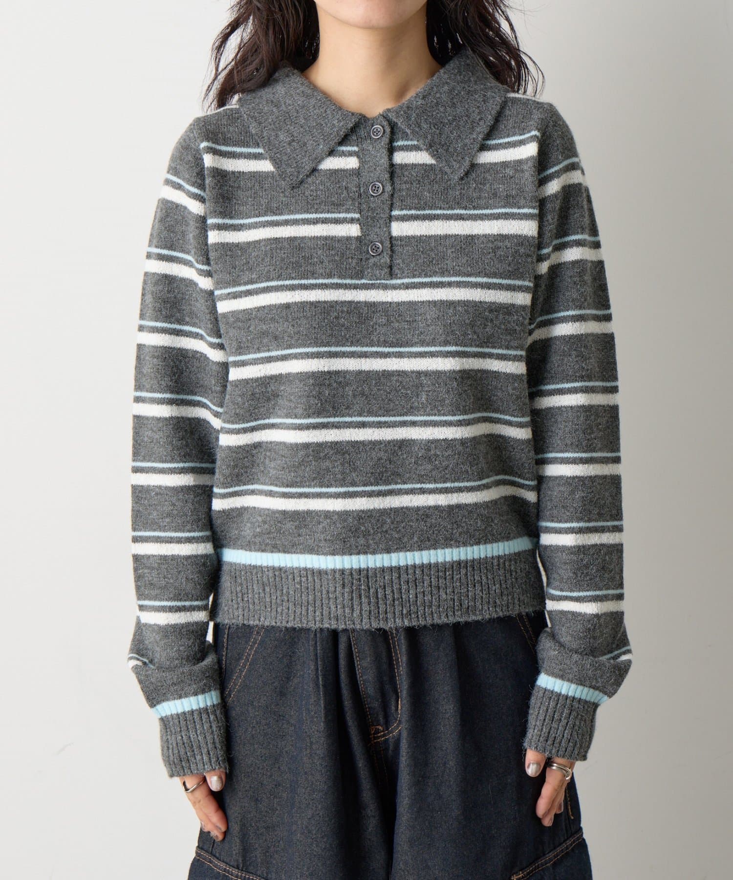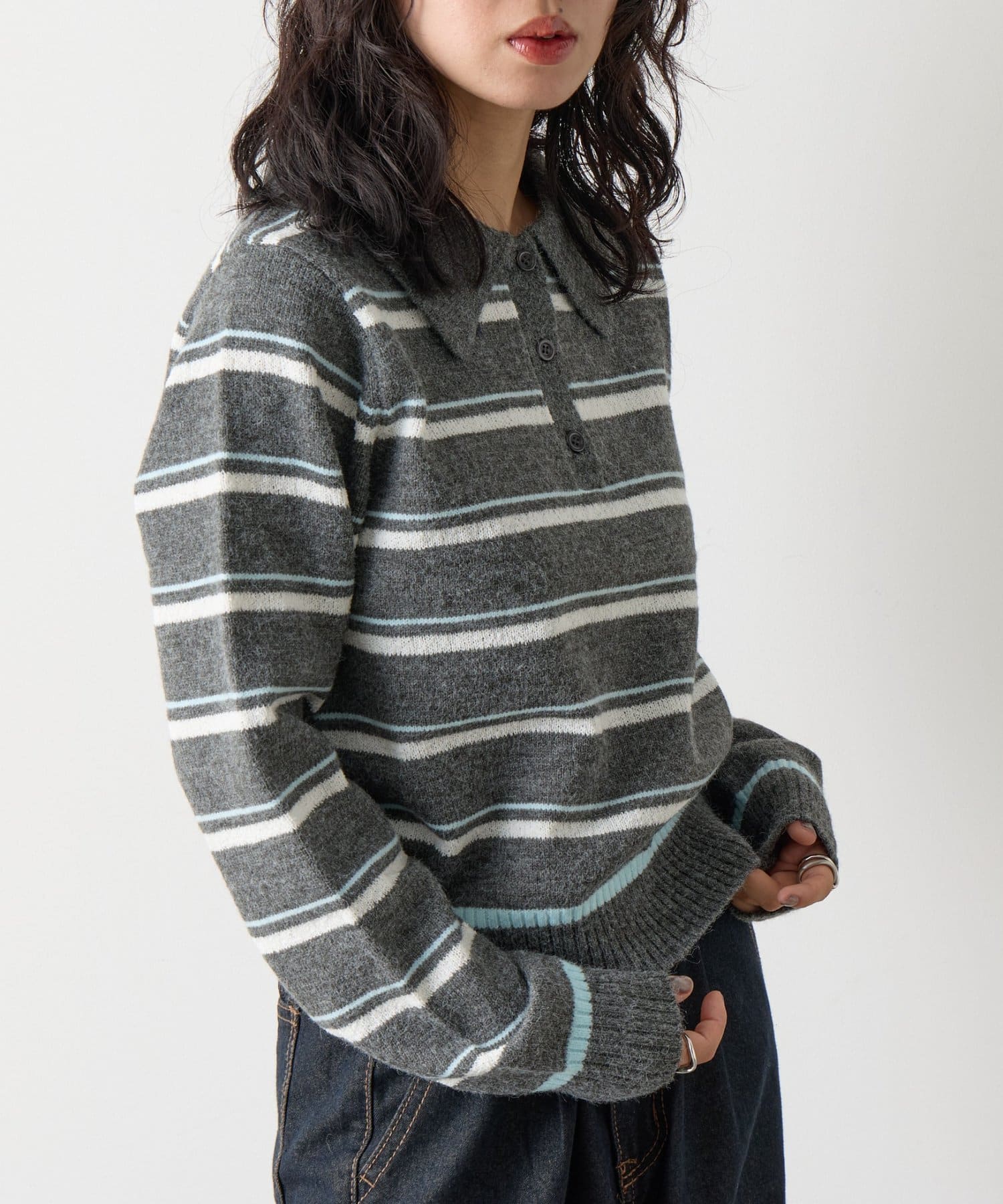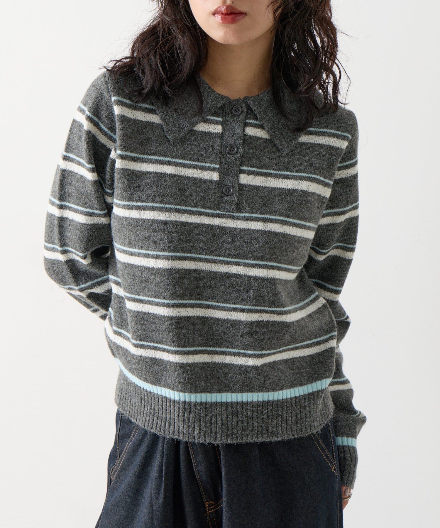 #ボーダー #ポロニット #ボーダーポロ #ニットポロ #アルパカタッチニット