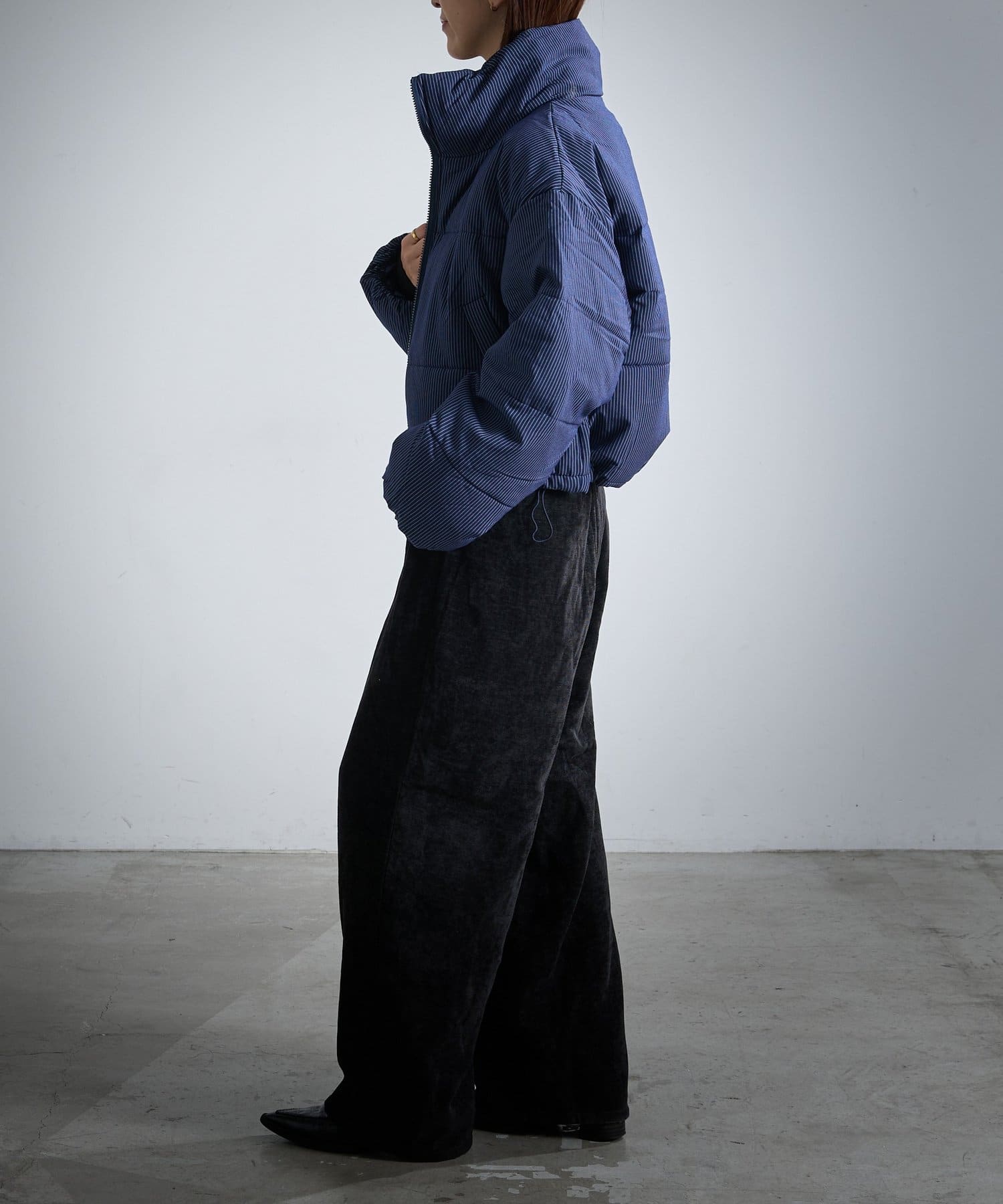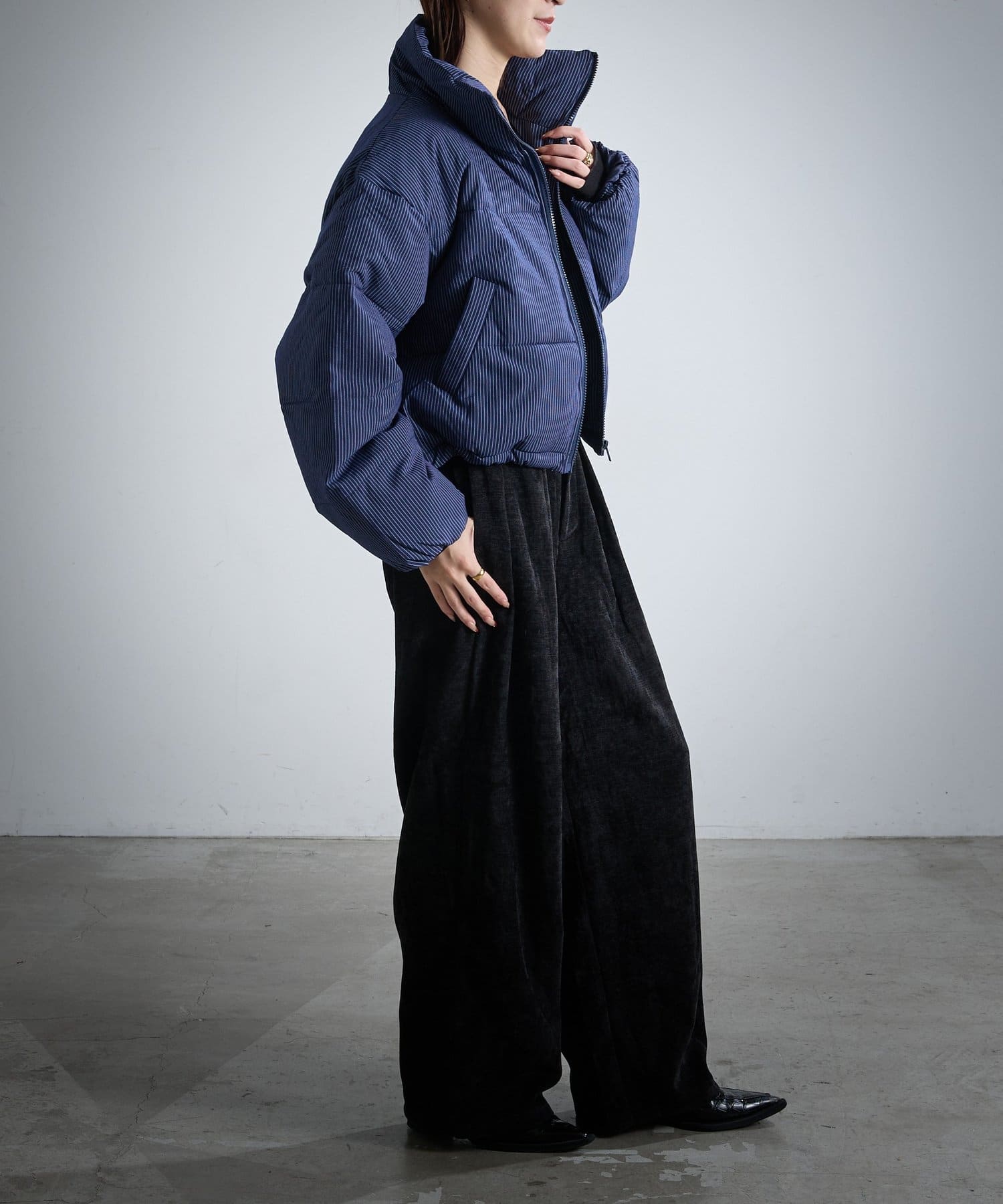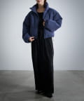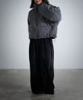 ・腰の位置を高く見せるショート丈デザインでハイウエストのパンツ合わせがおすすめ