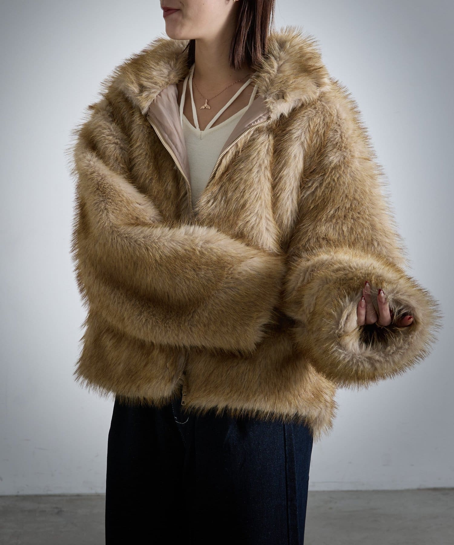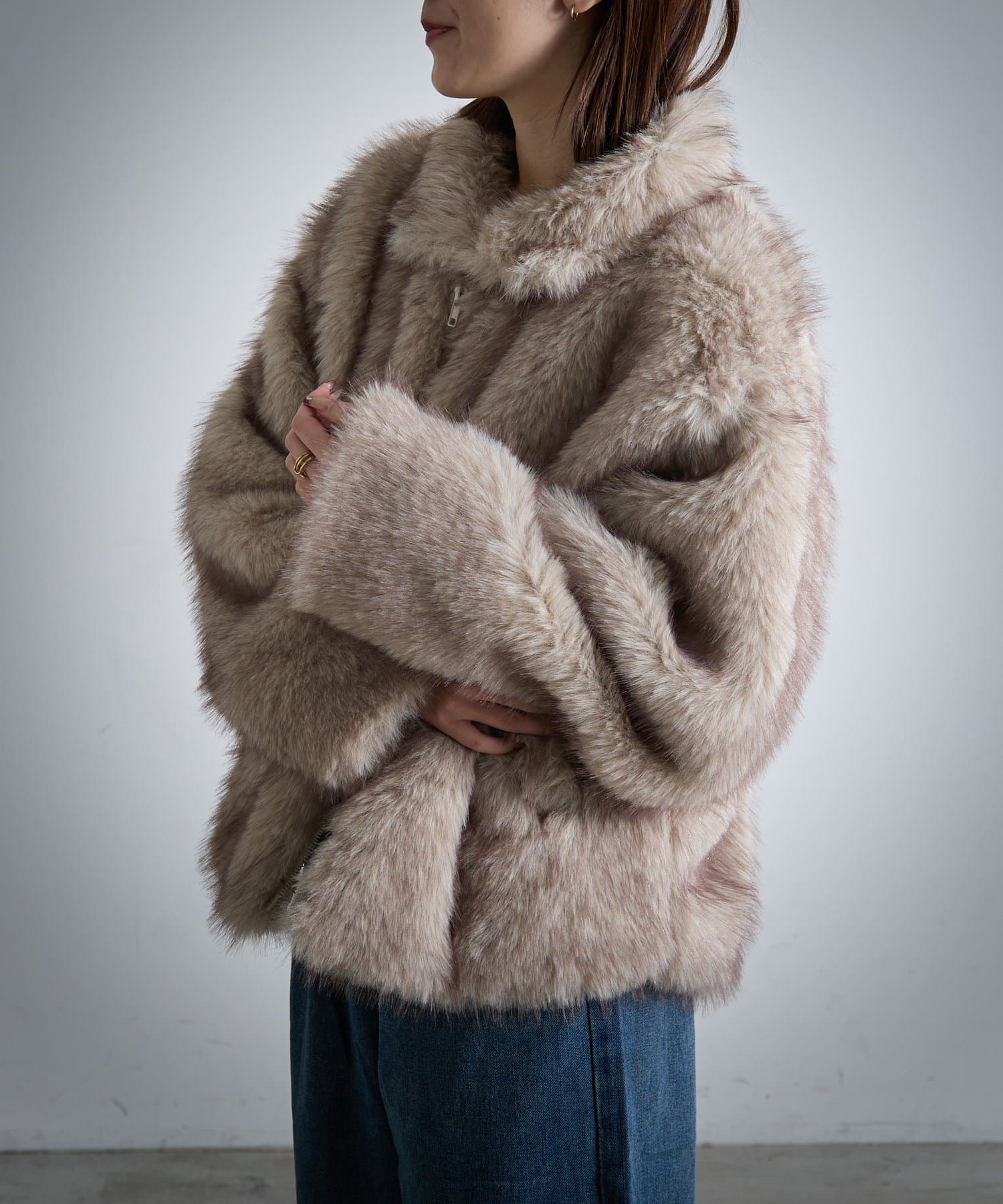 #ファーアウター #ファー #フェイクファー #ダブルジップアウター