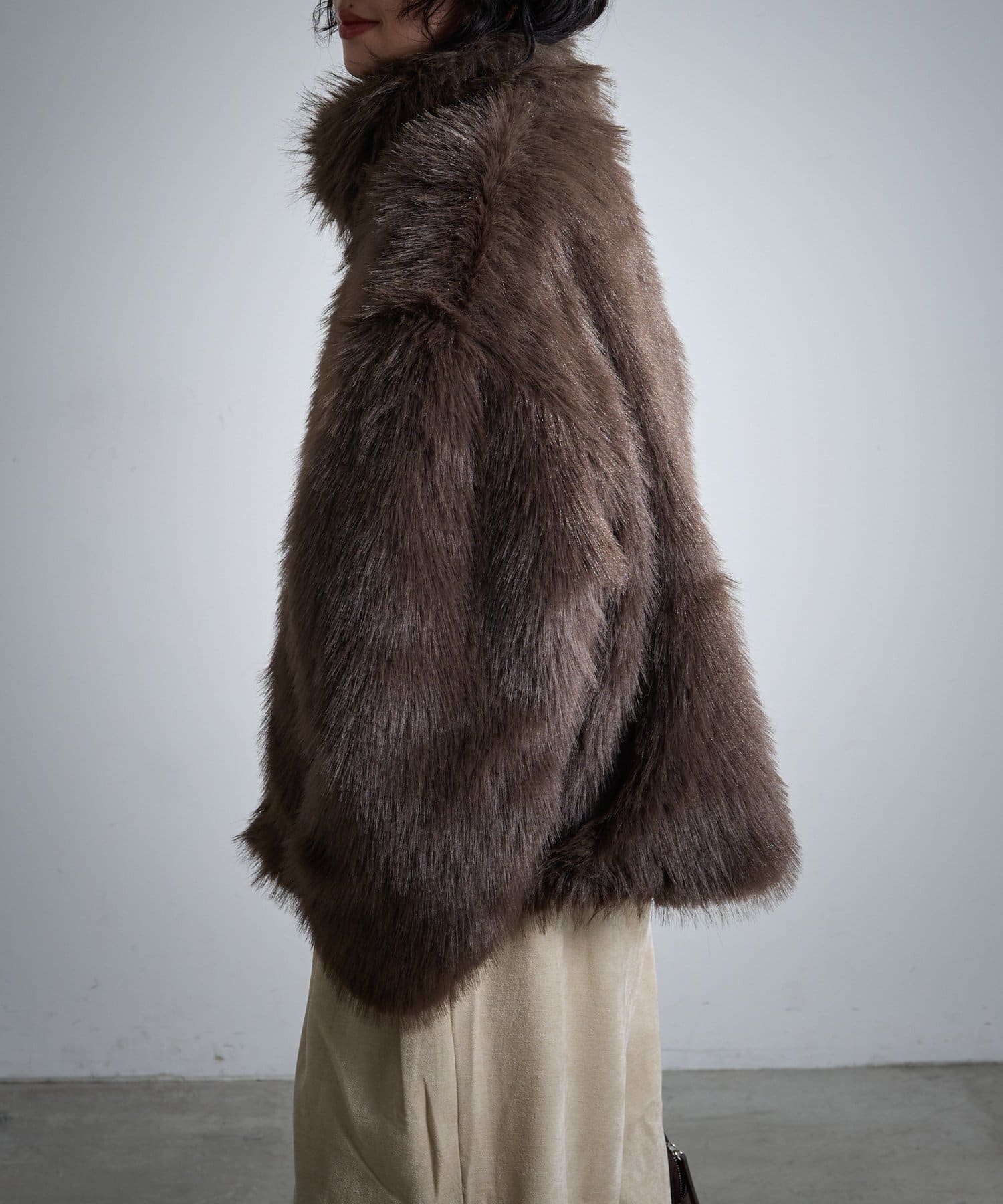 ・ふわふわのフェイクファー素材で、軽さと暖かさを両立