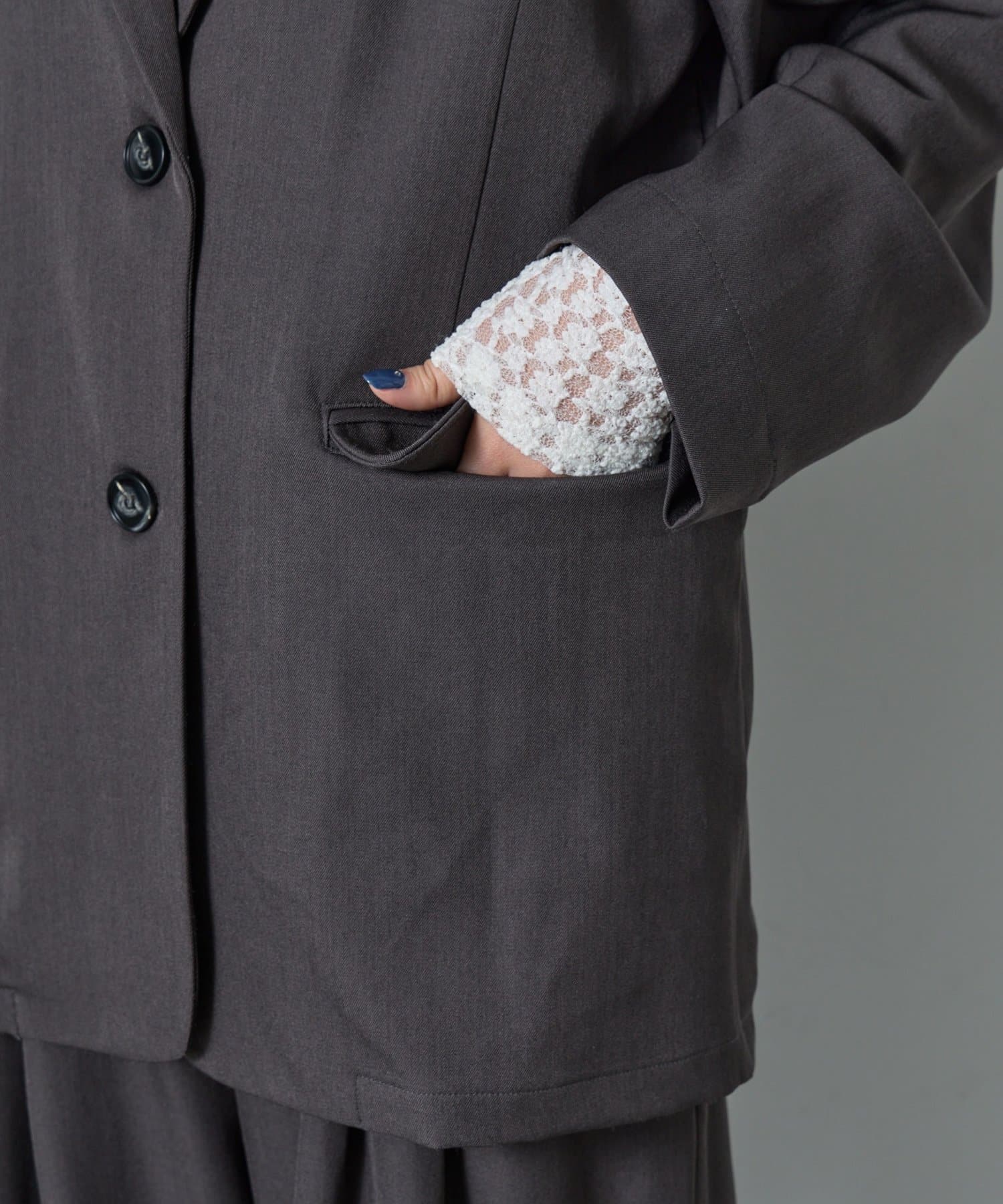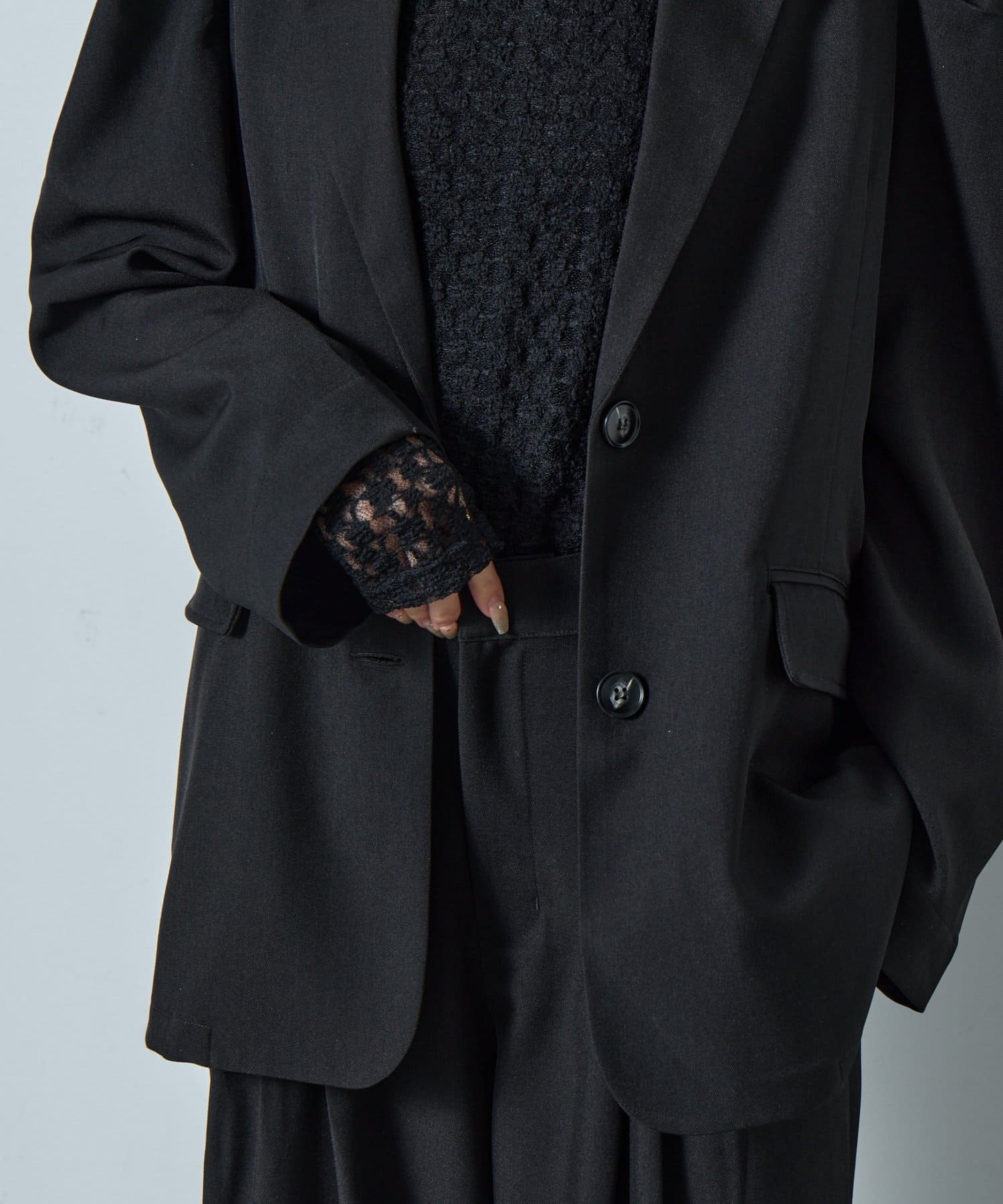 ・セットアップ対応なのでセットで着ても◎