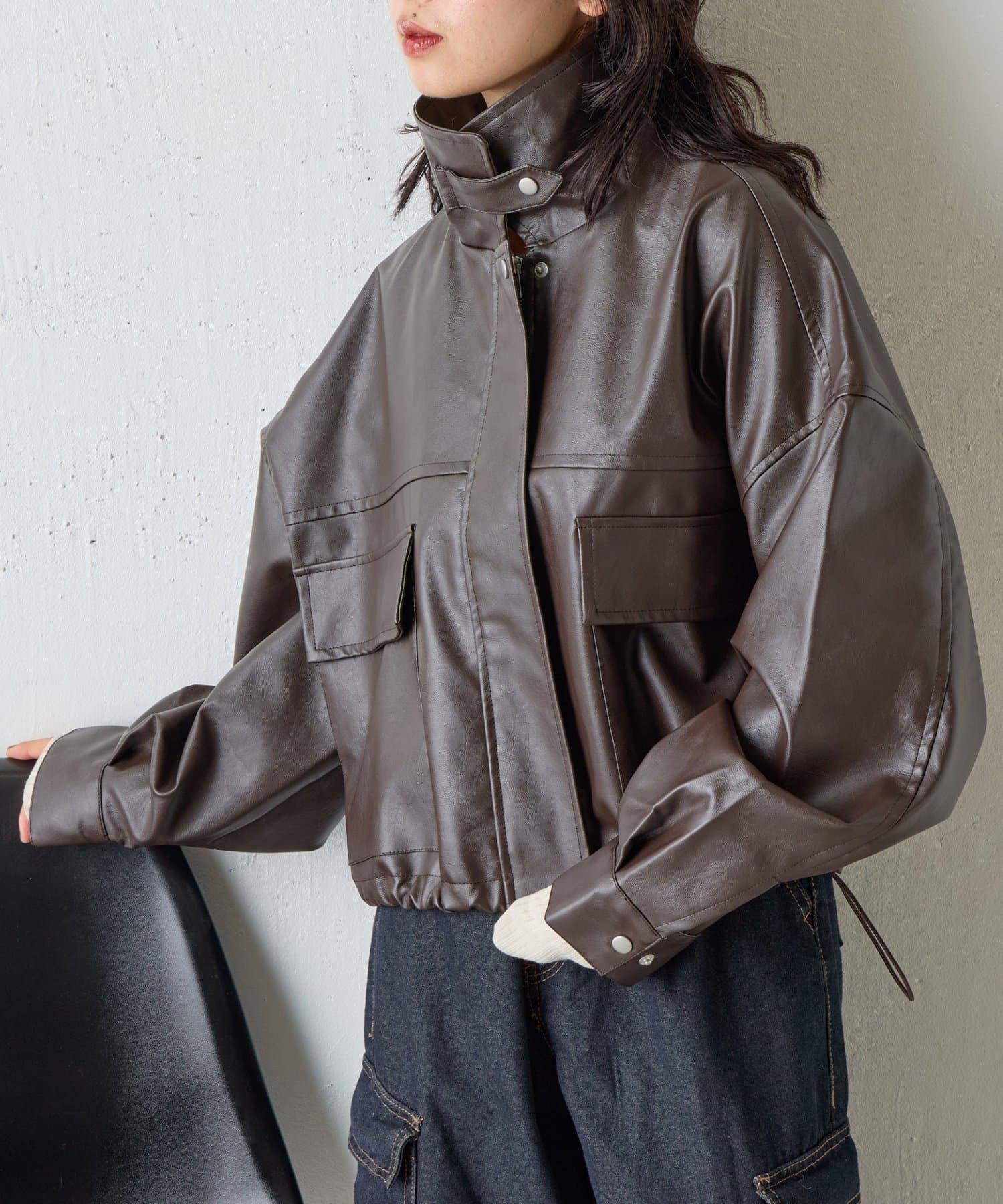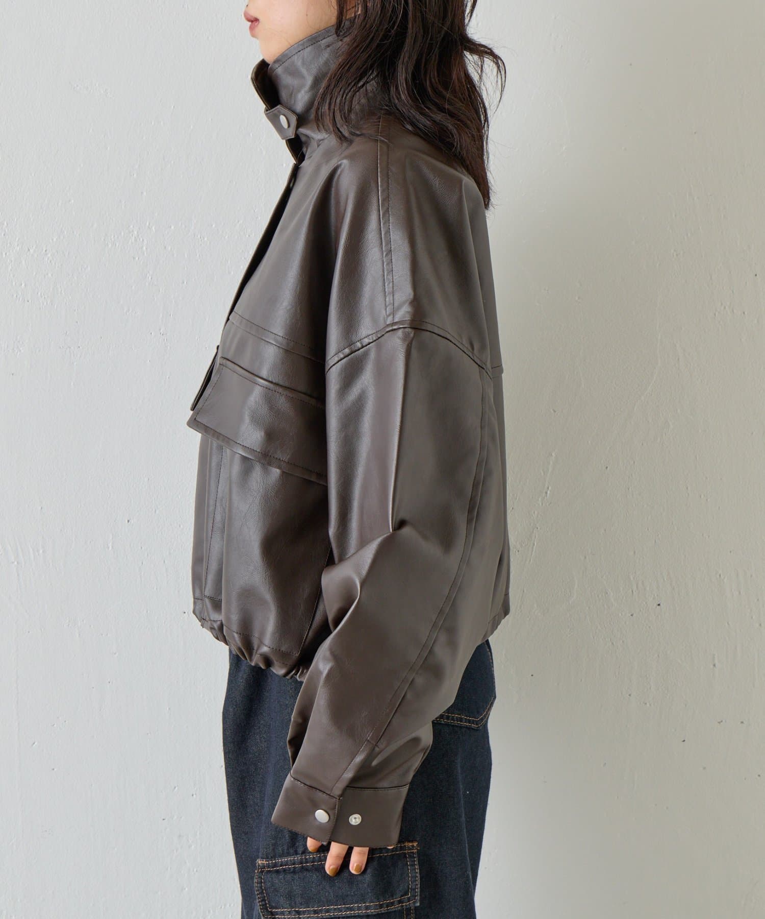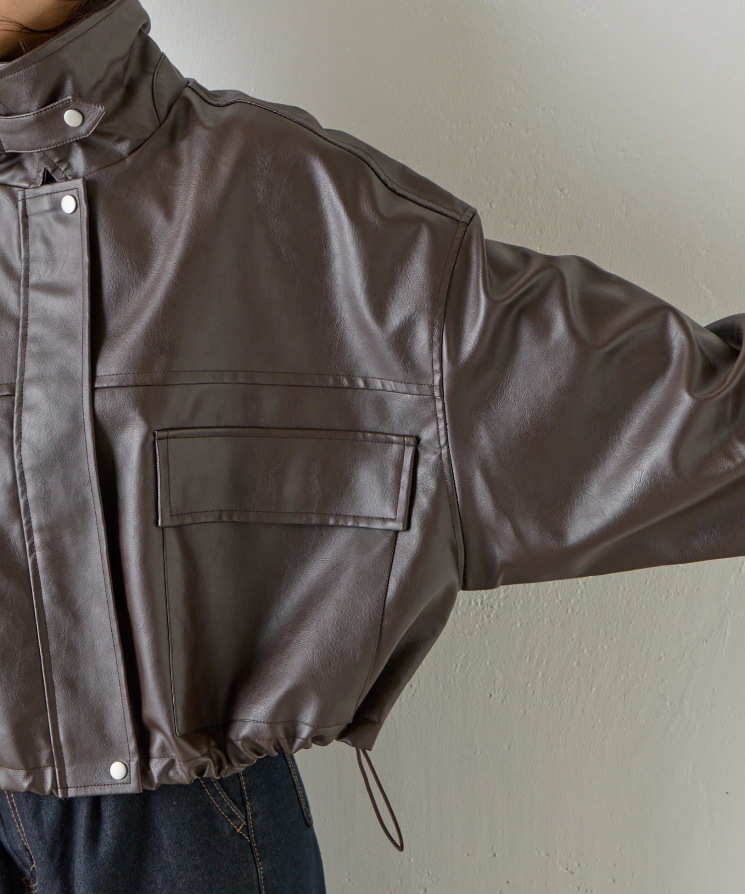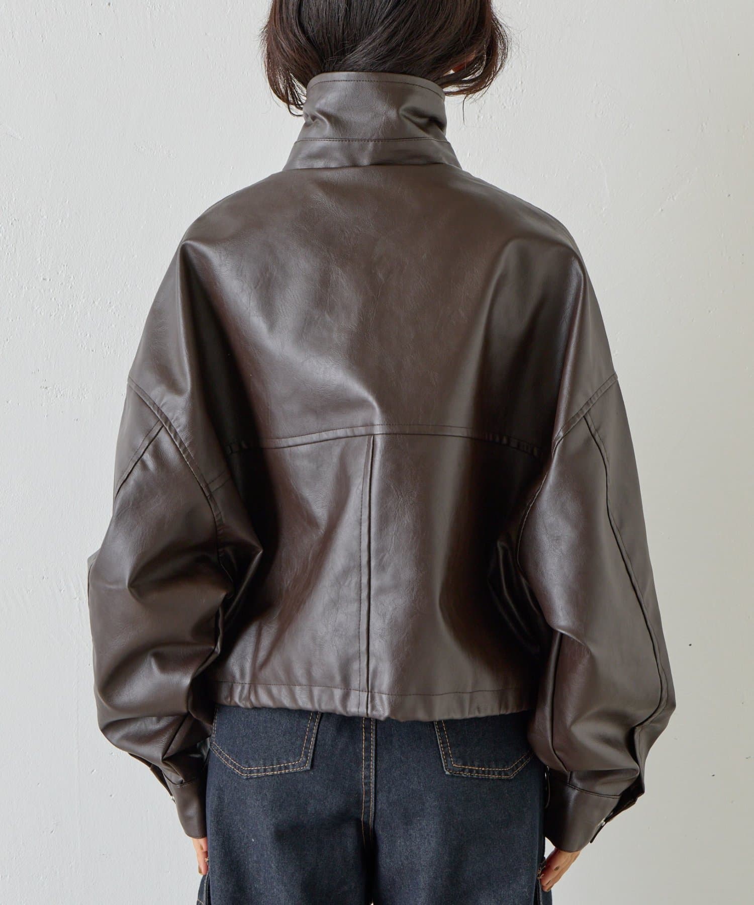 【スタンドネック仕様に◎】2WAYカラー合皮ブルゾン