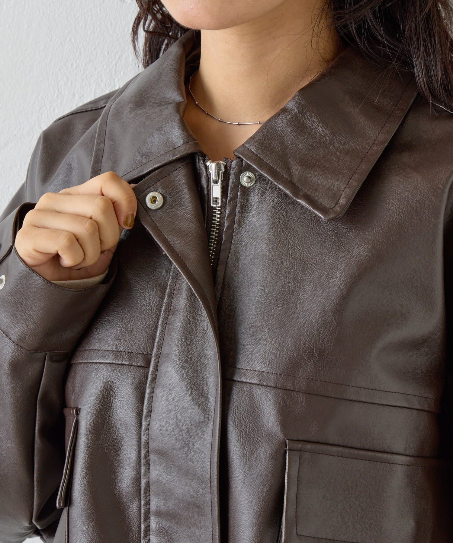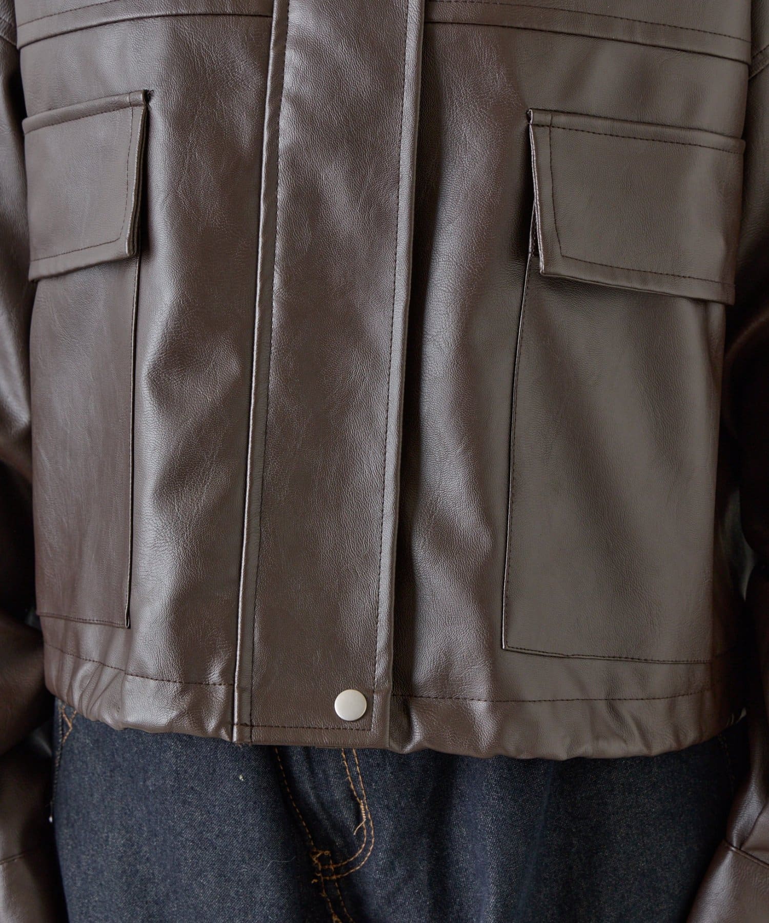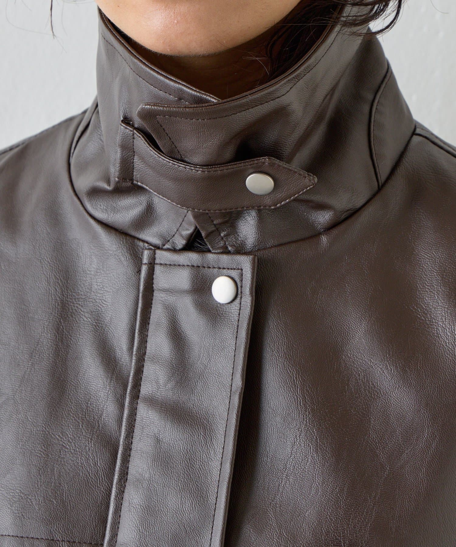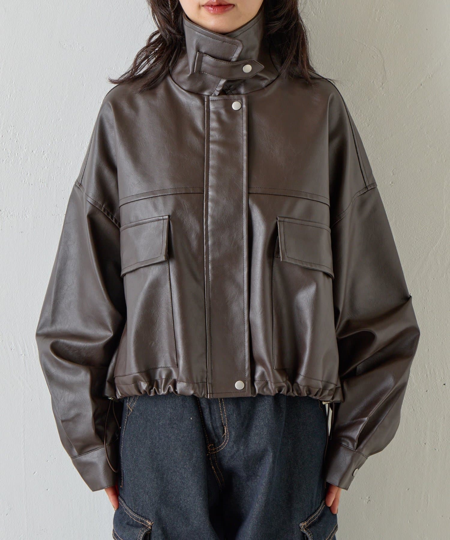 【スタンドネック仕様に◎】2WAYカラー合皮ブルゾン