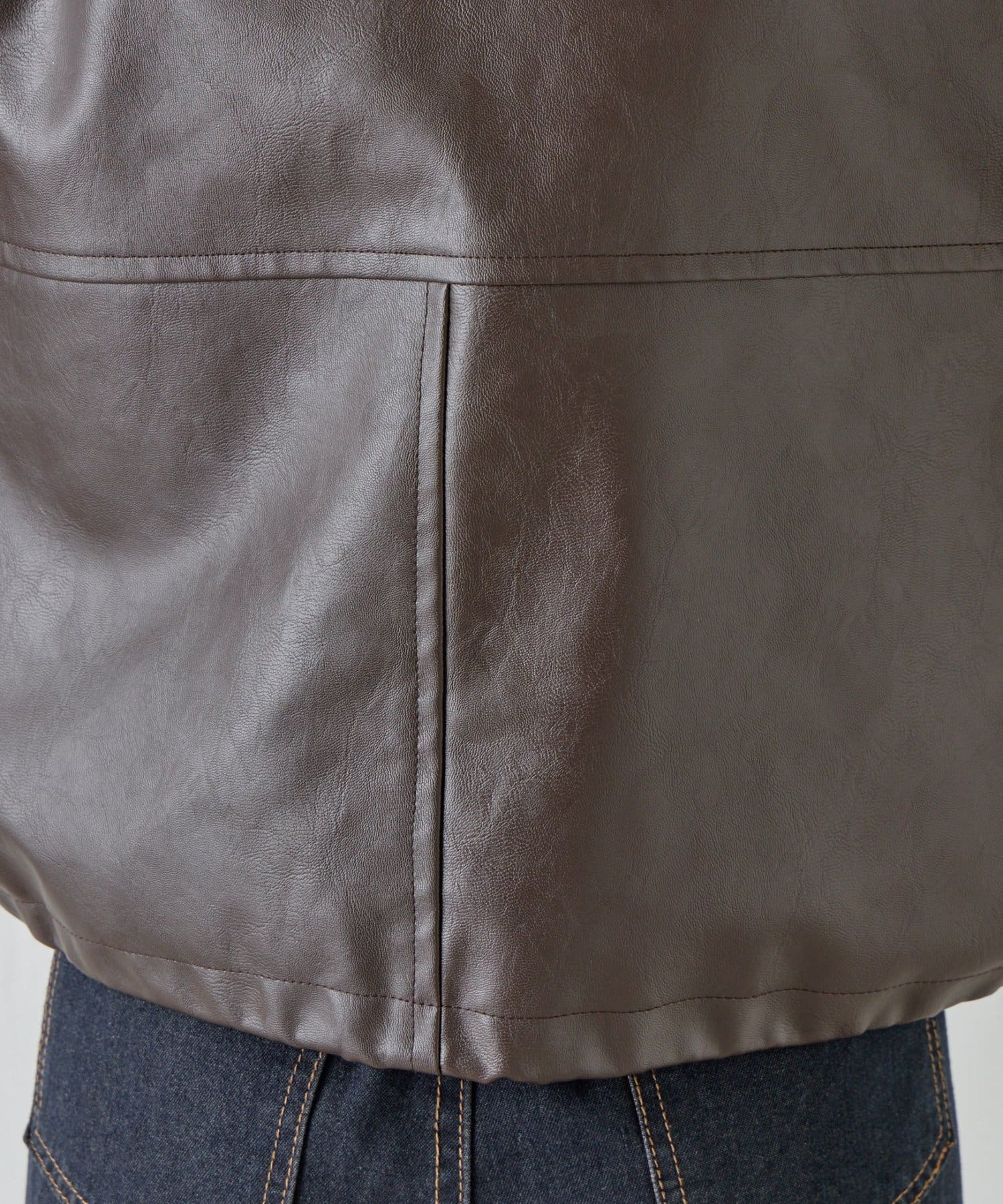 ・軽やかな着心地の合皮素材を使用し、季節の変わり目に最適