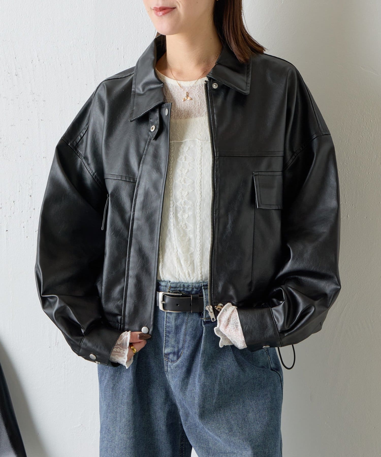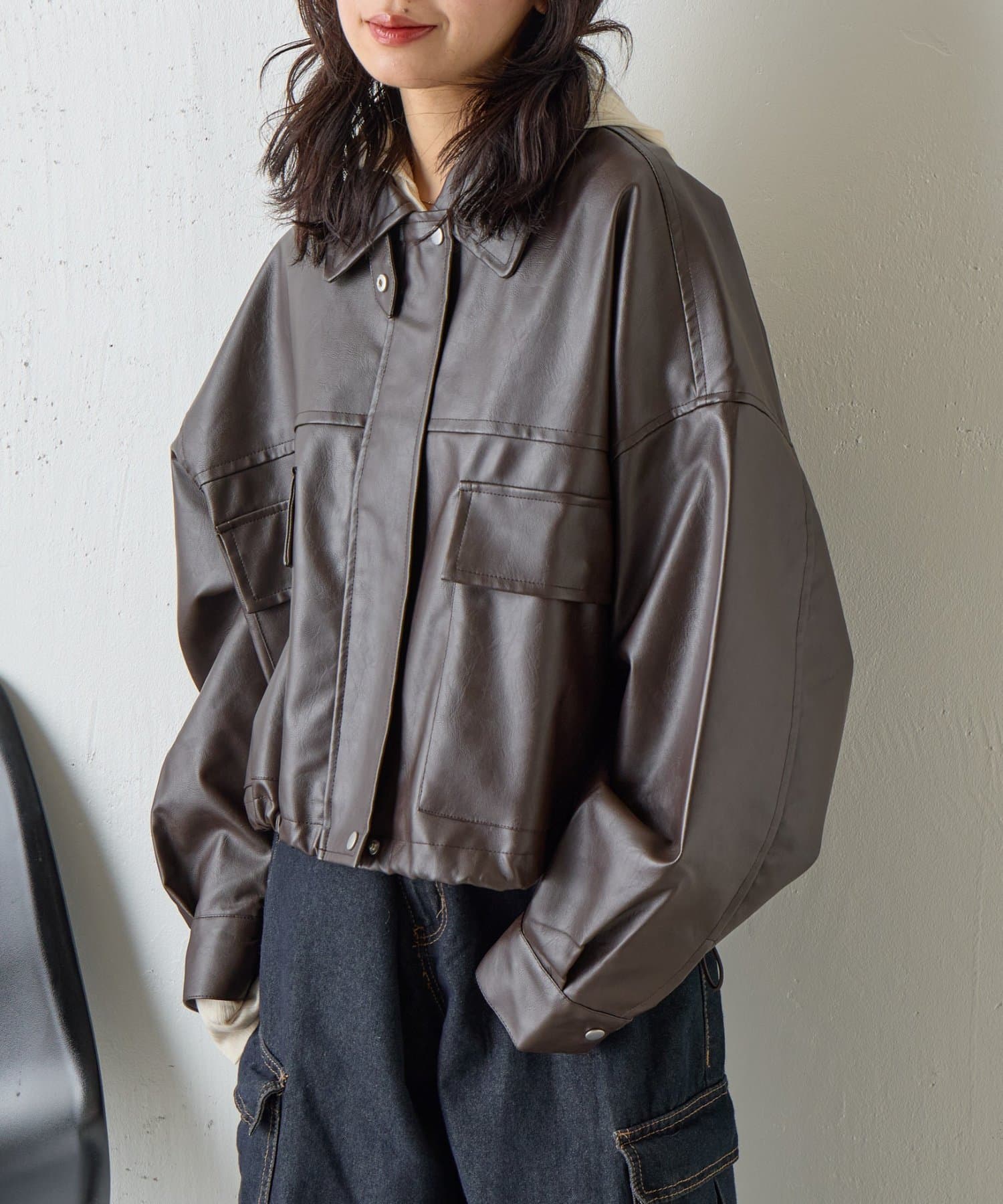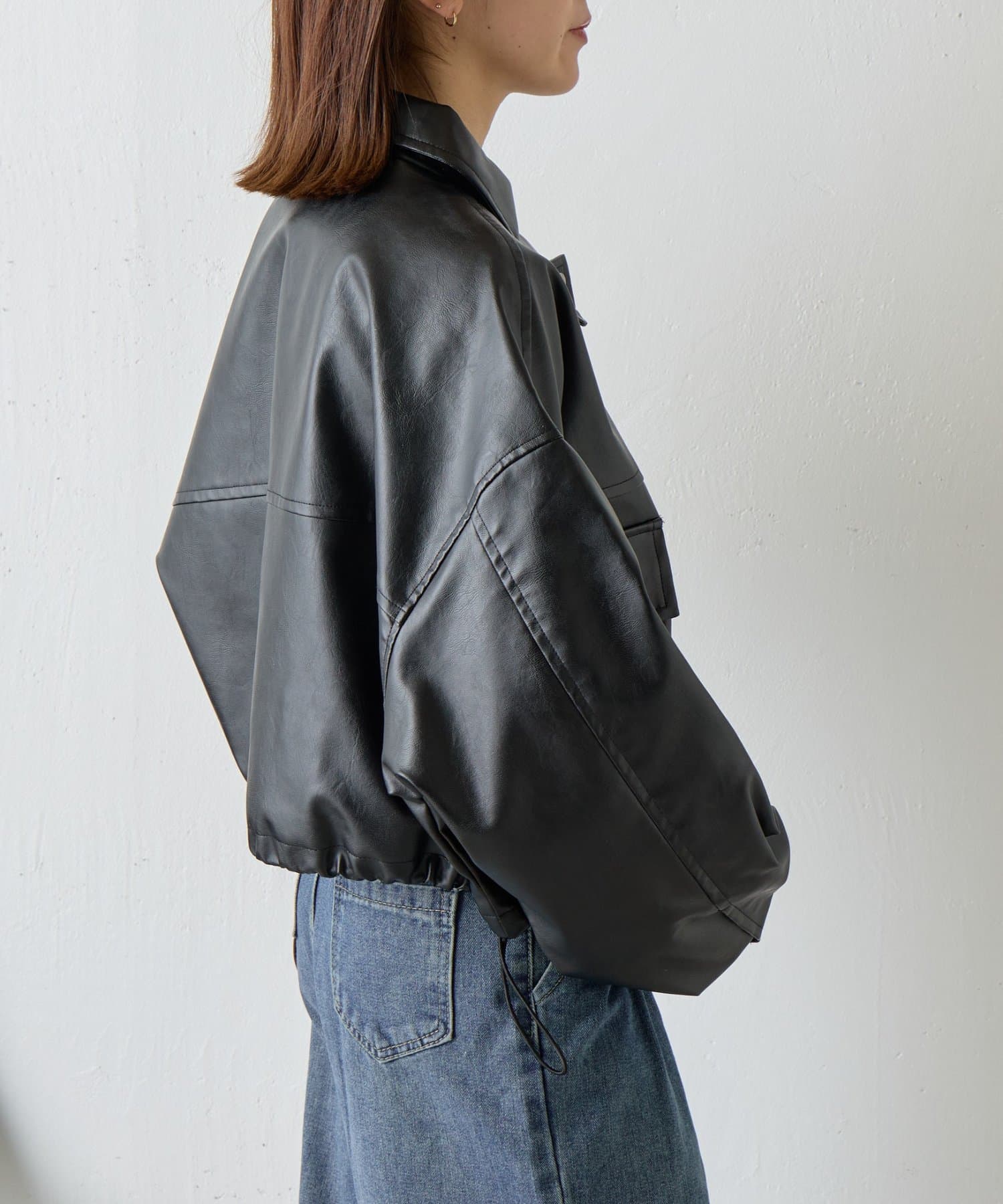 #合皮ブルゾン #レザーブルゾン #春コーデ #ショート丈ジャケット
