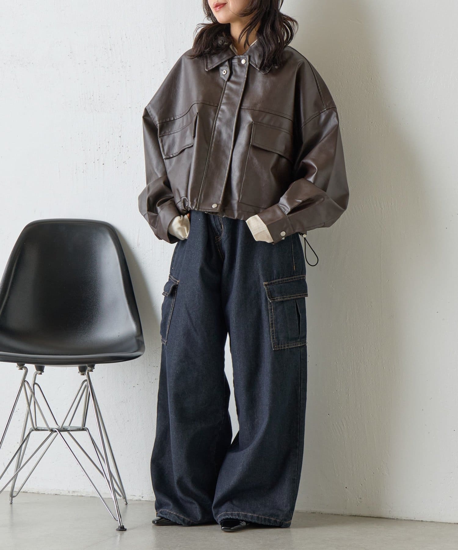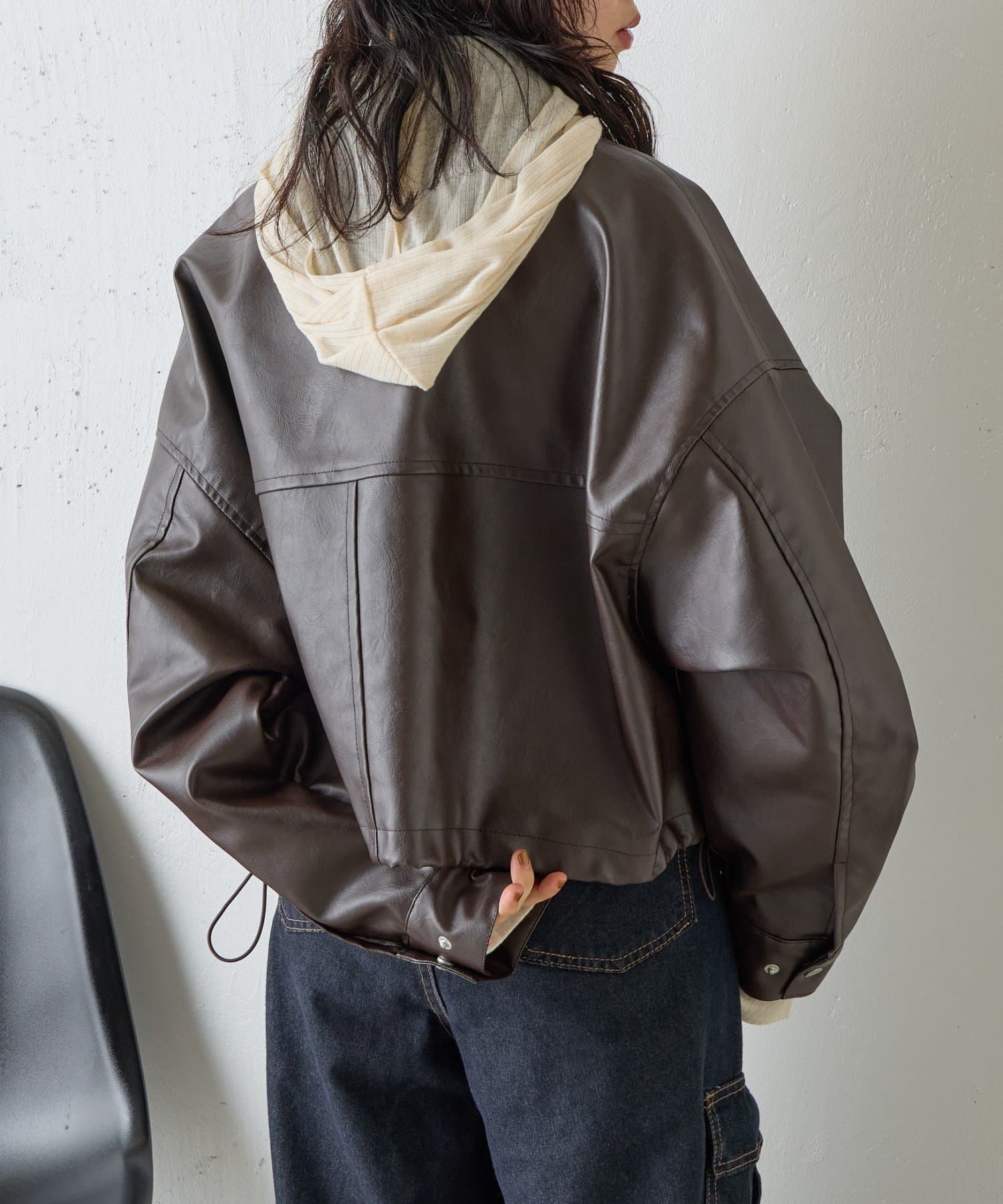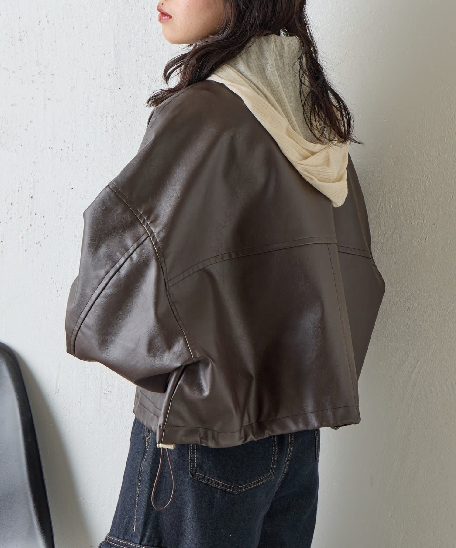 #合皮ブルゾン #レザーブルゾン #春コーデ #ショート丈ジャケット