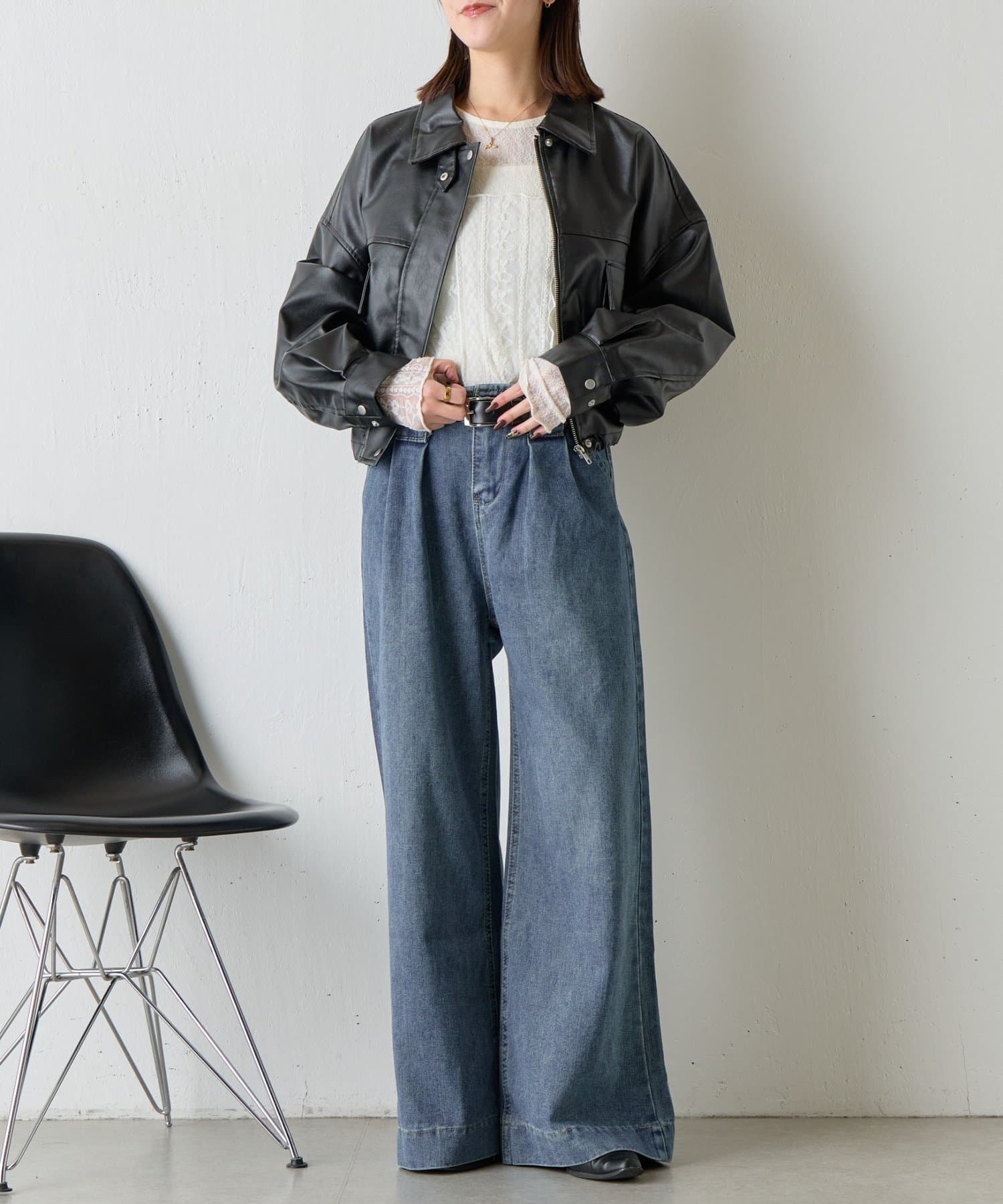 ・ショート丈なので、ハイウエストのボトム合わせがバランスよく着用できておすすめ