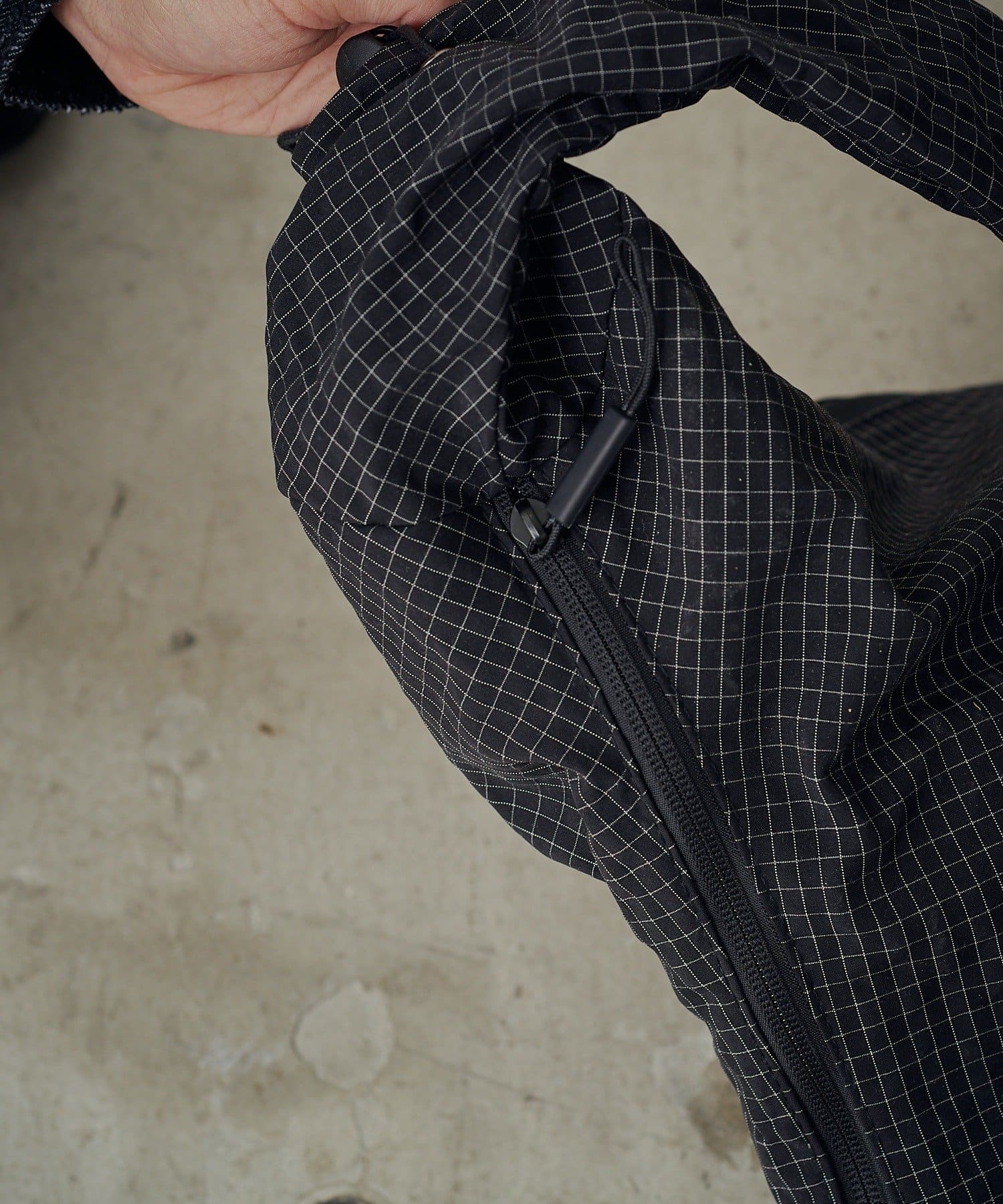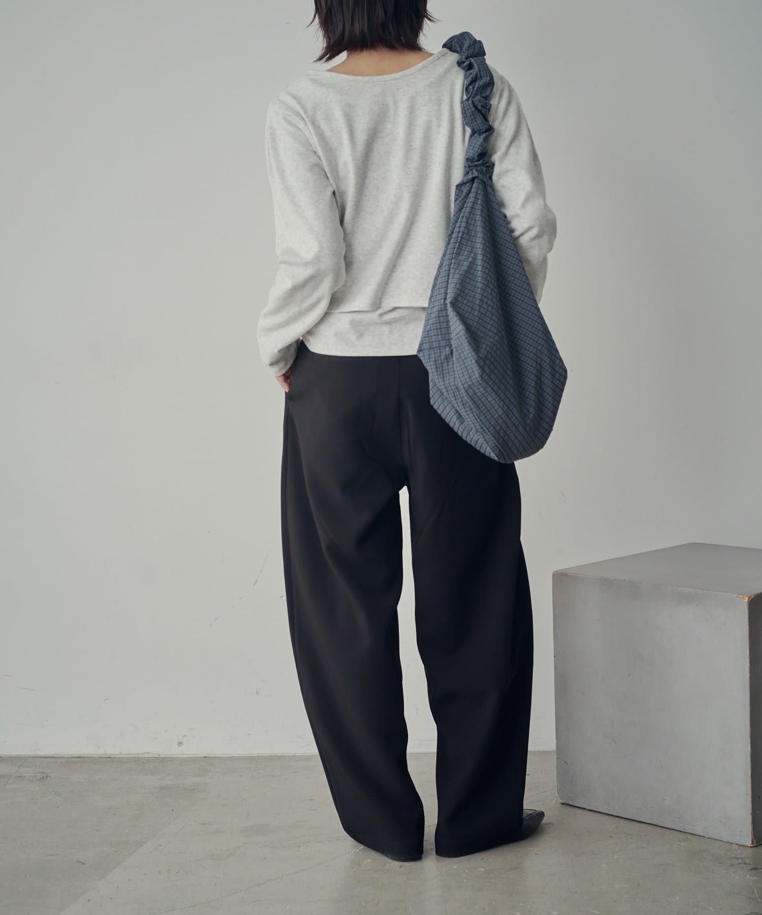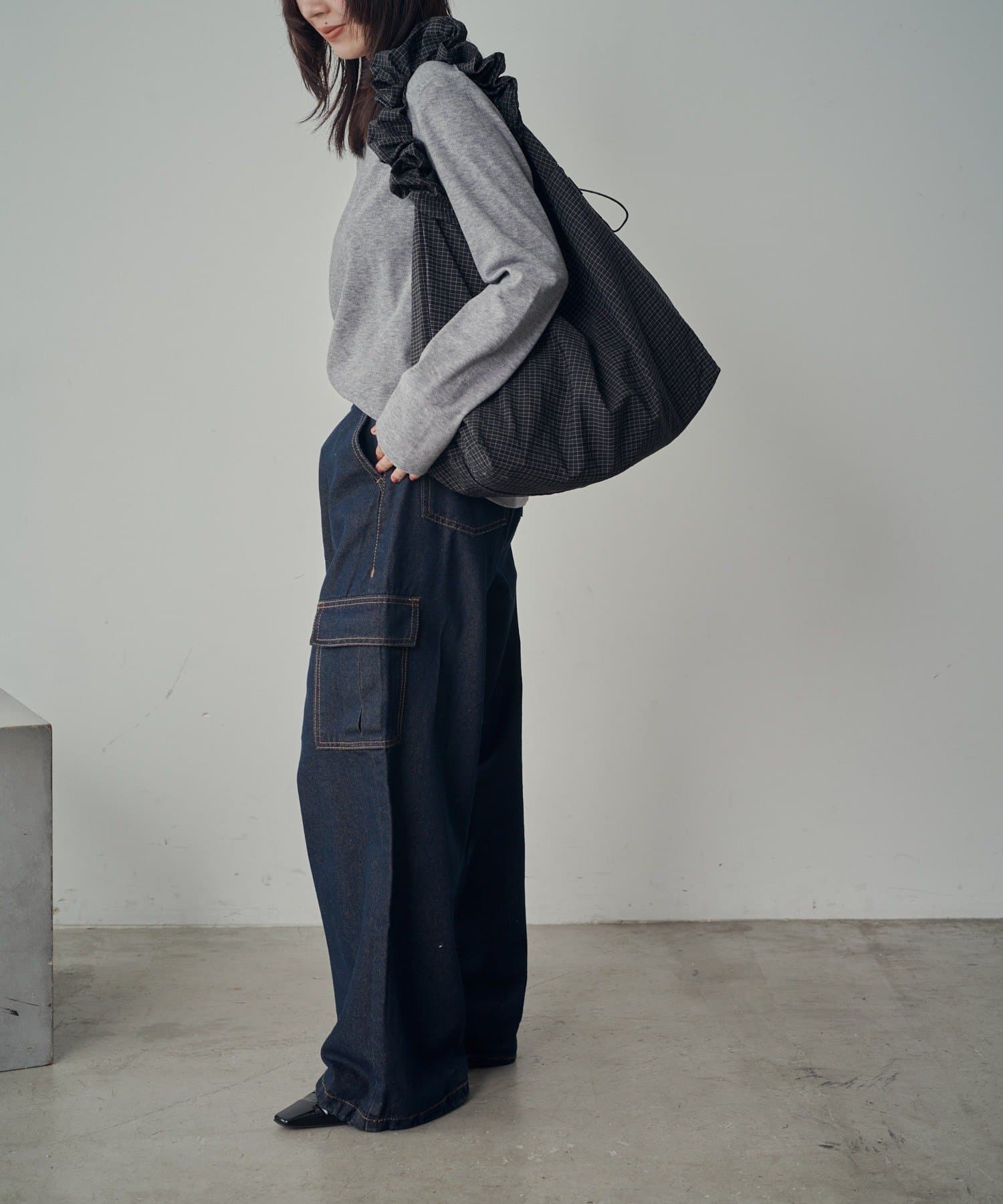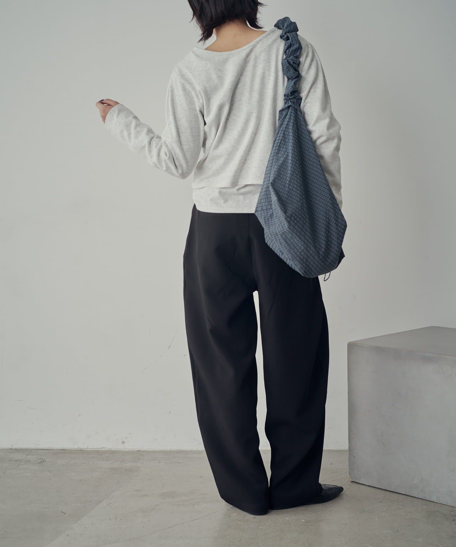 ・くしゅっとした手持ちが、シンプルコーデにこなれ感をプラス