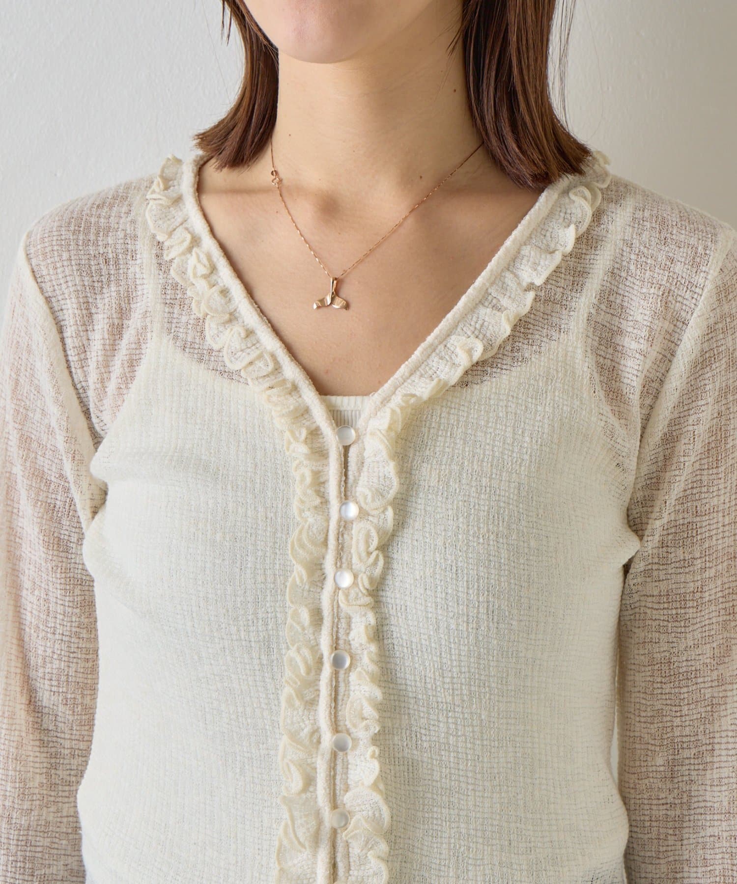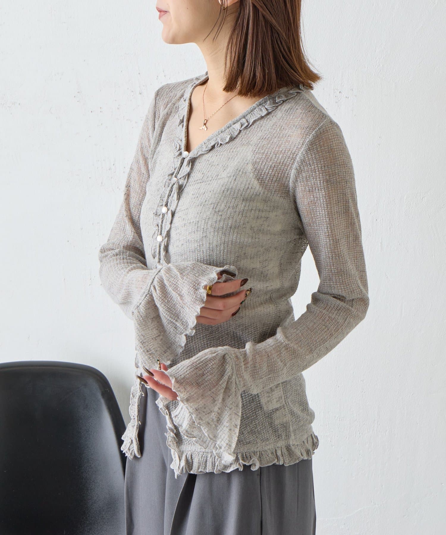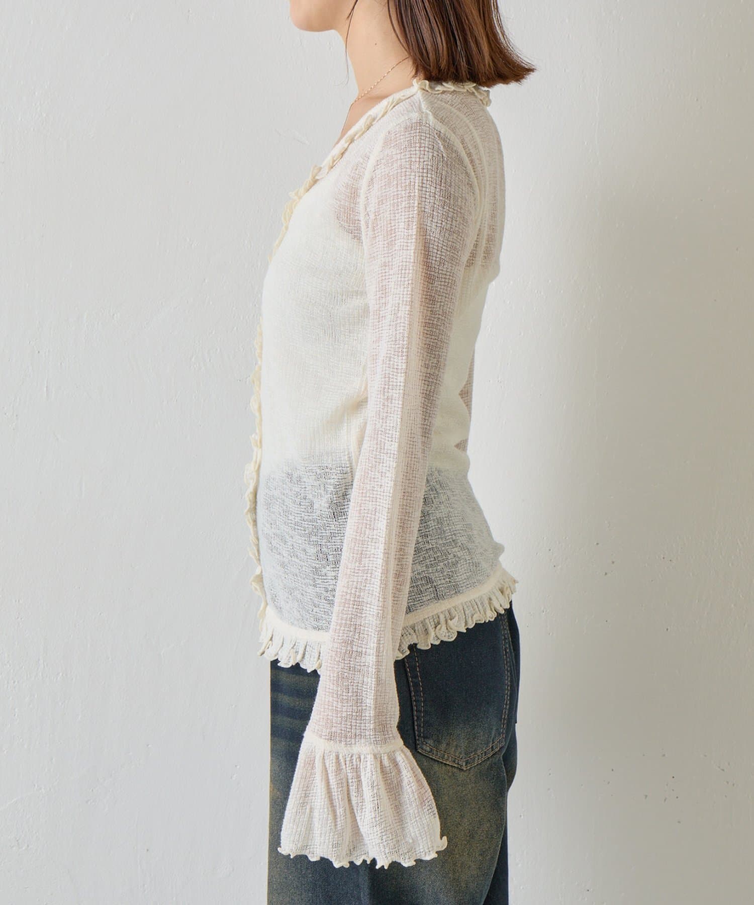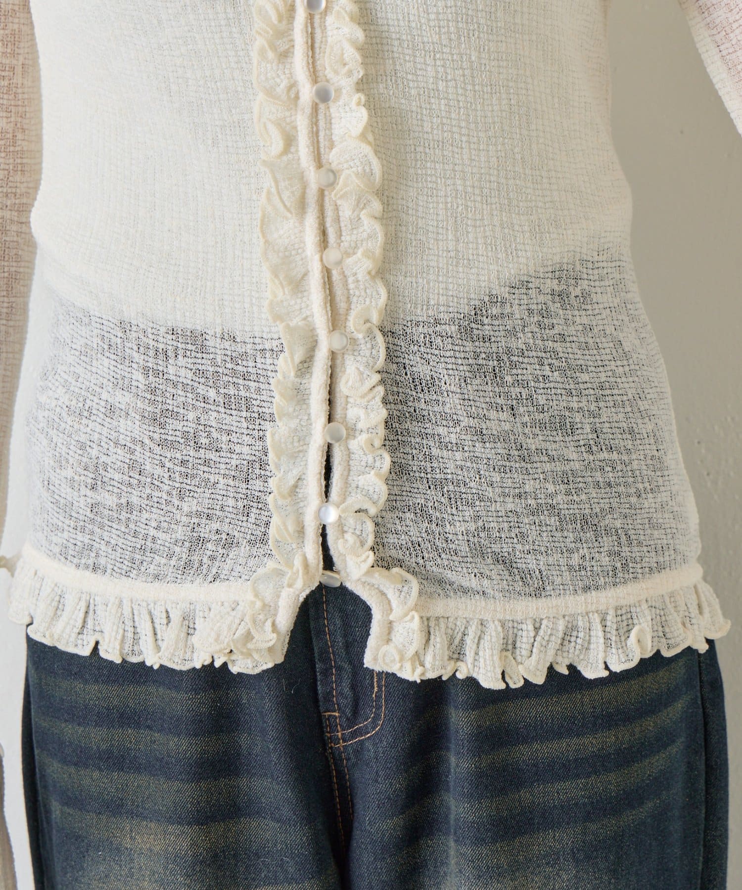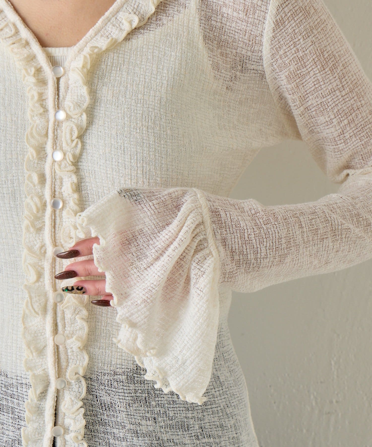 シアーワッフルフリルカーディガン