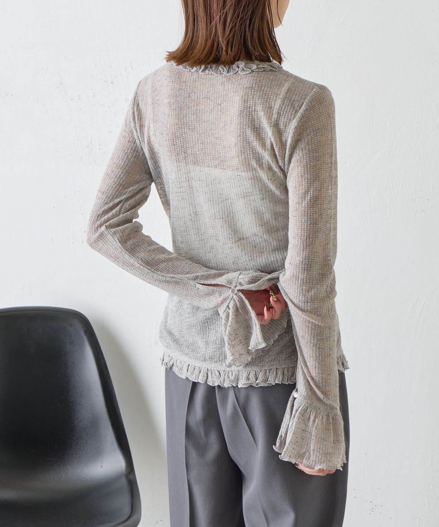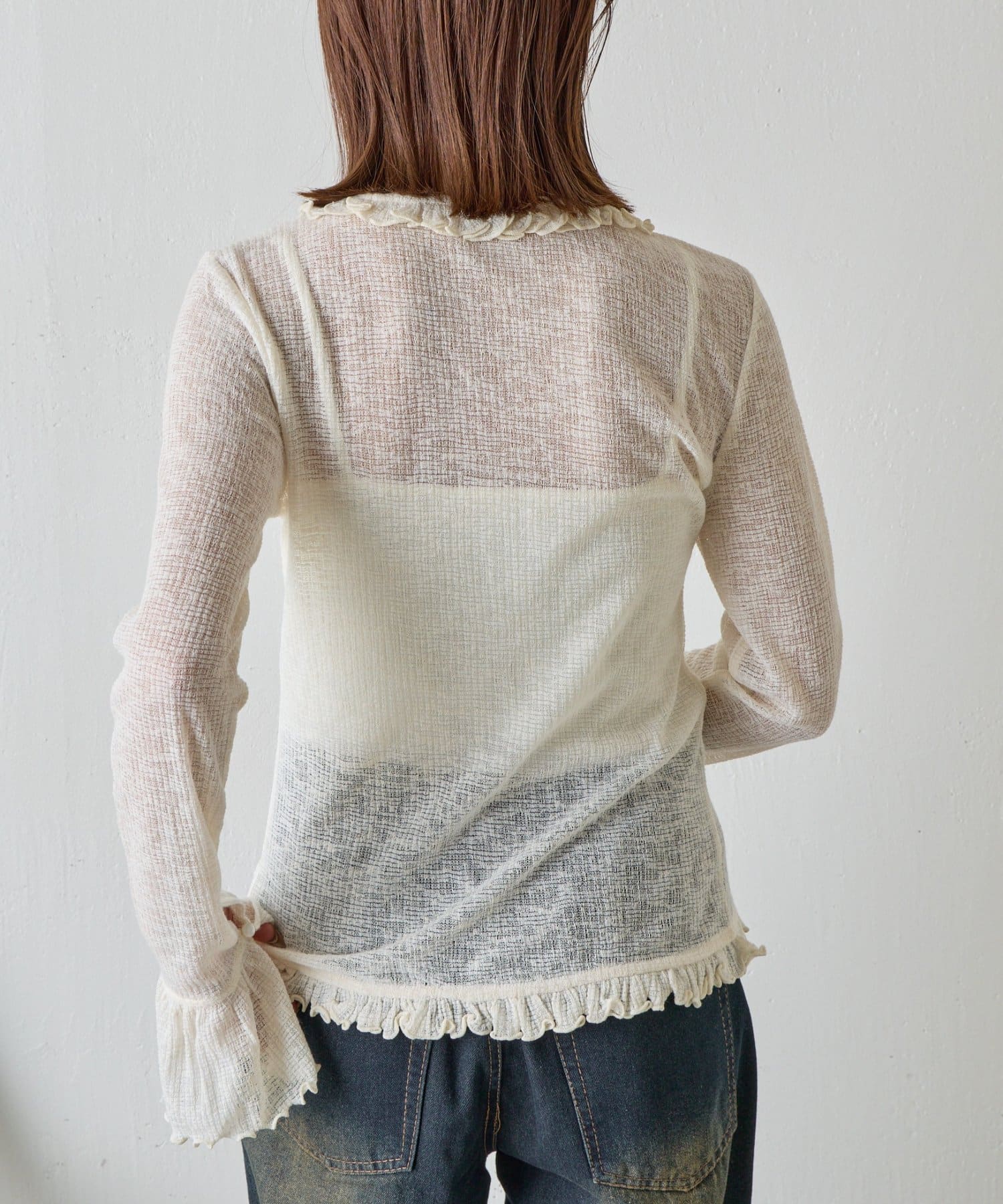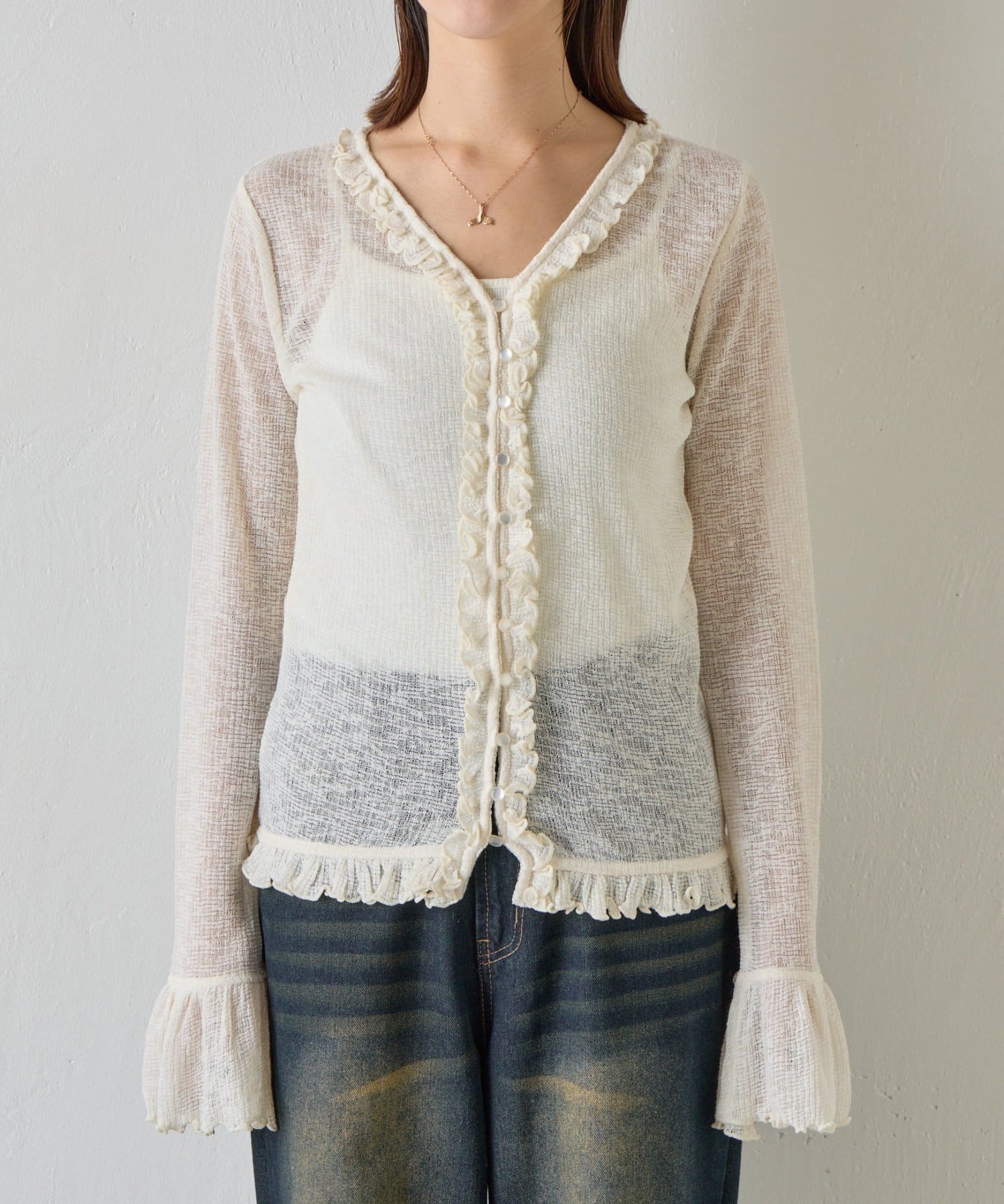 TOP > -goocy- > レディース > トップス > Tシャツ/カットソー > シアーワッフルフリルカーディガン
