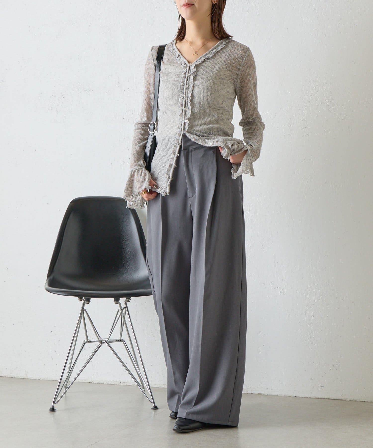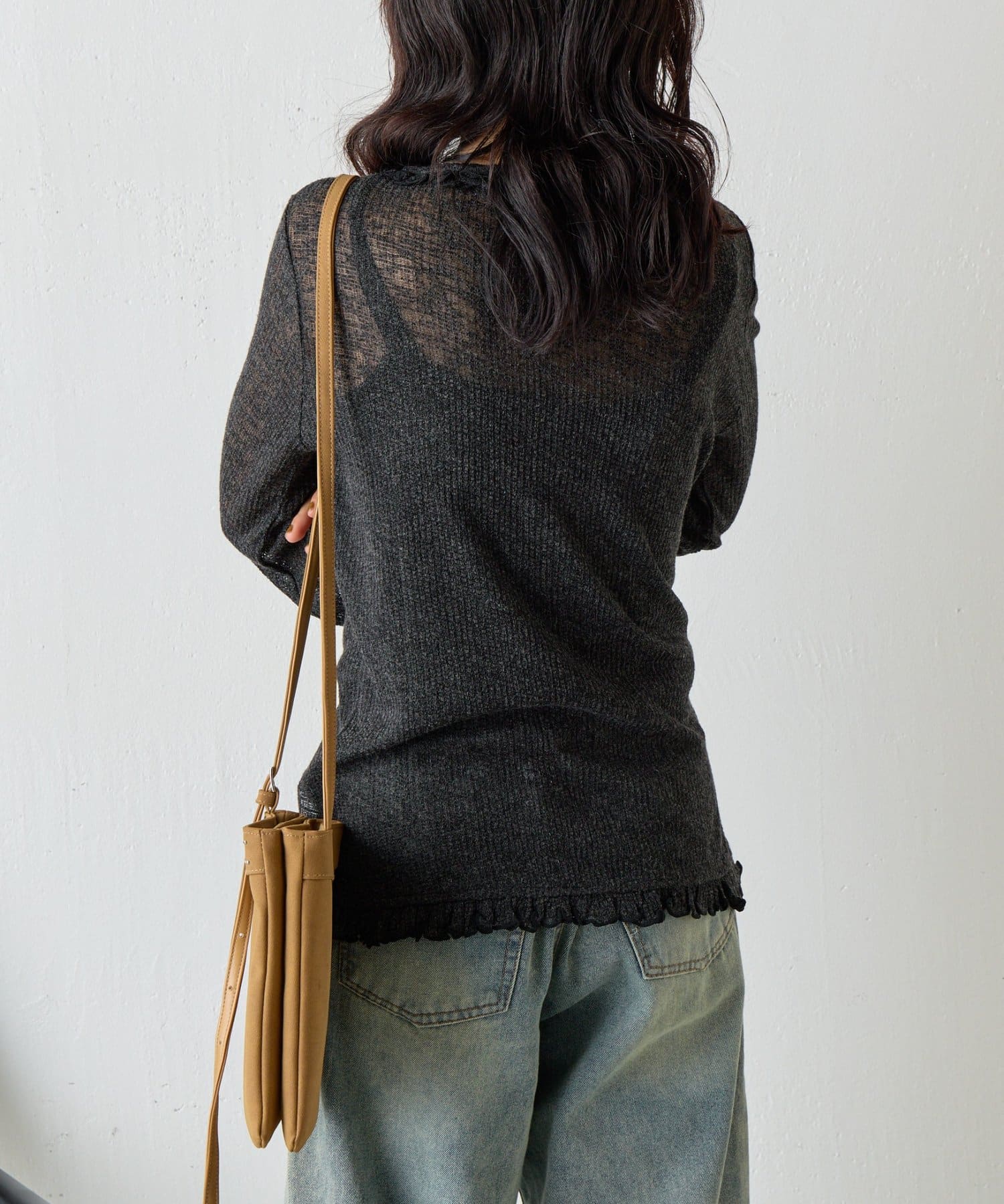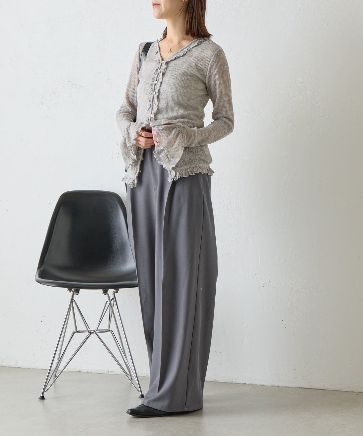 • -goocy-(グーシー) シアーワッフルフリルカーディガン