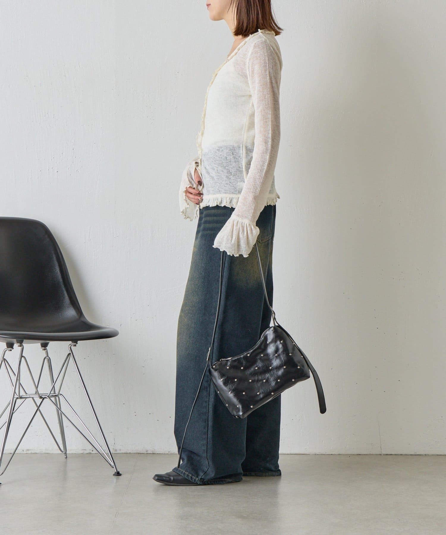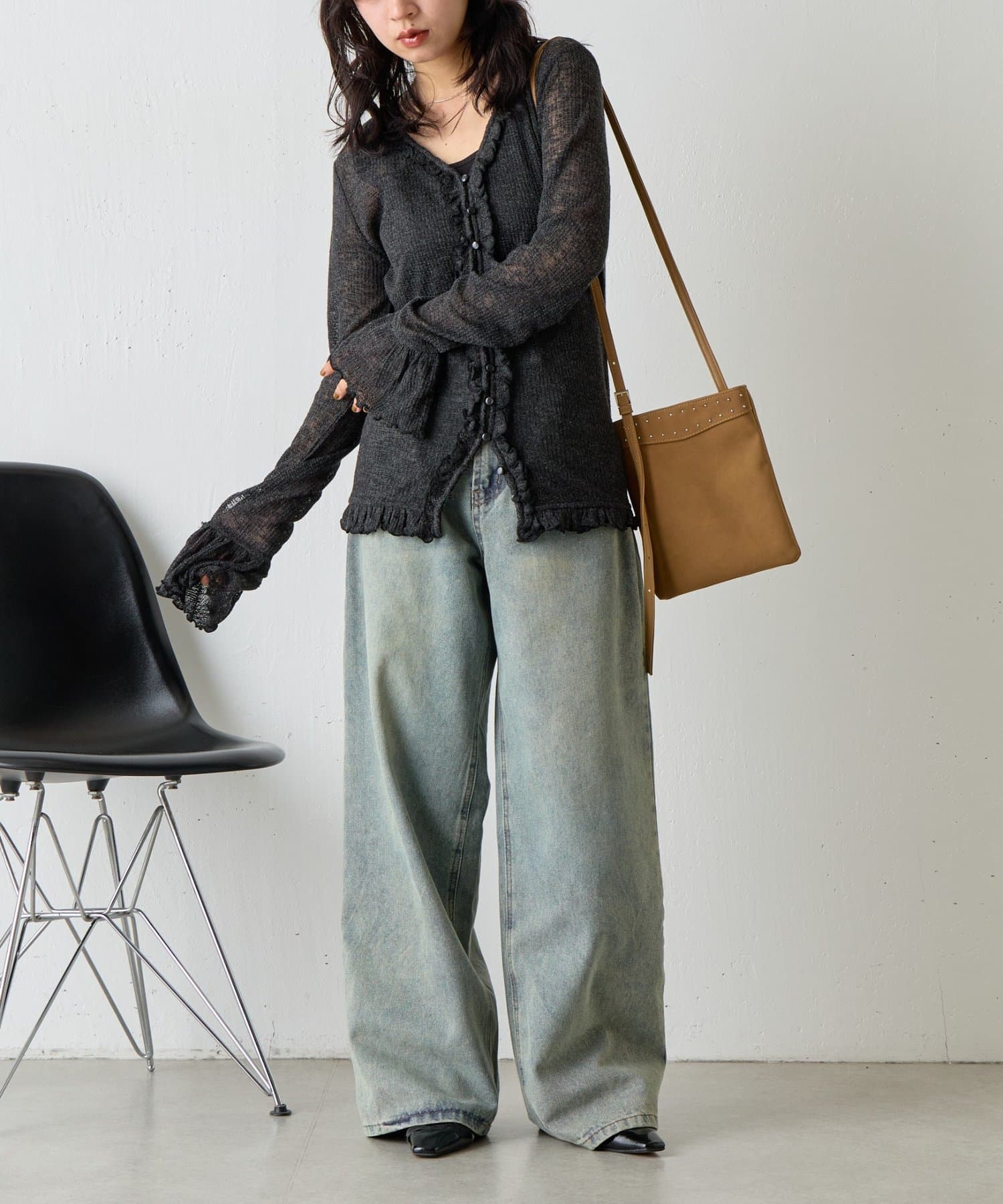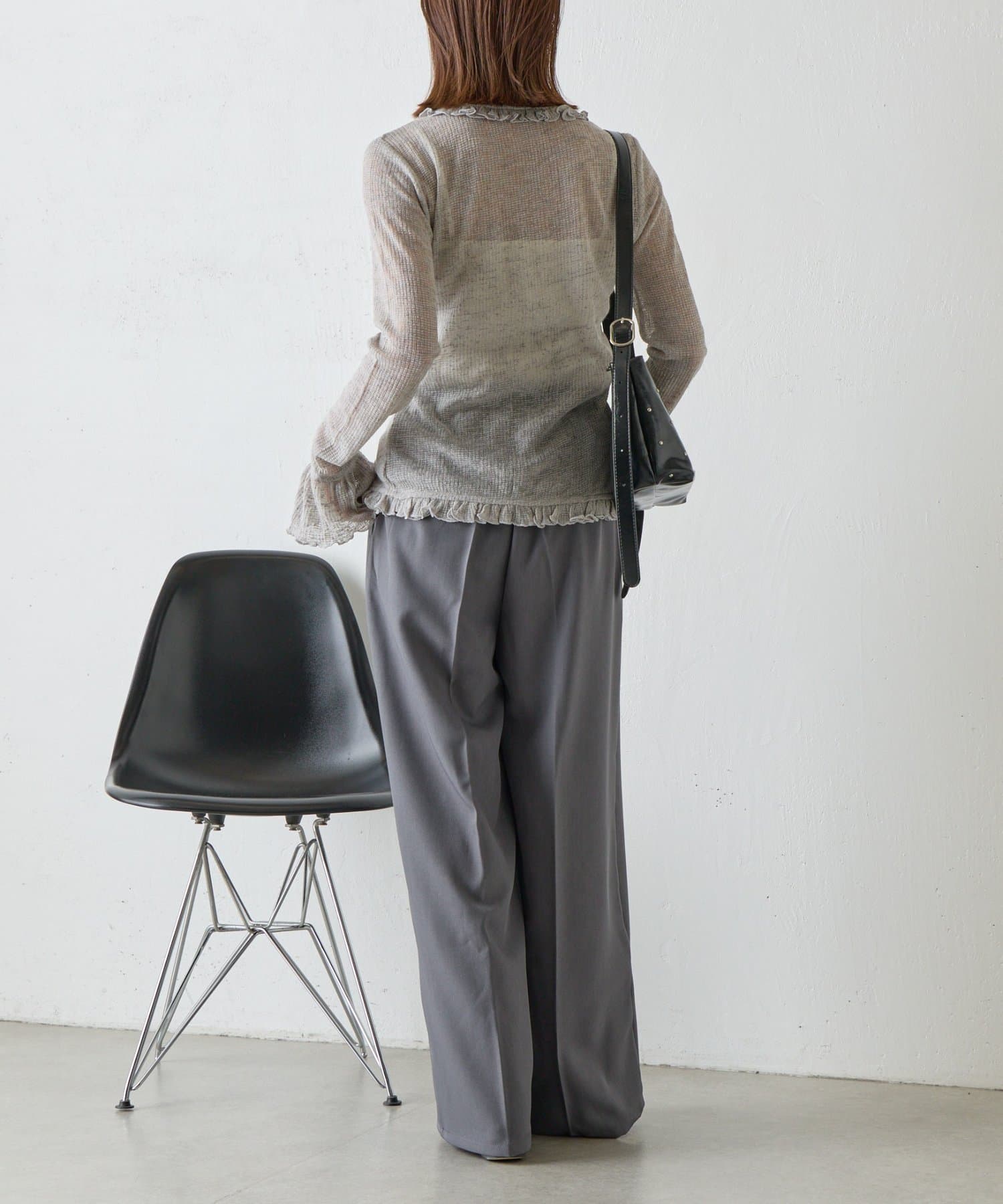 • -goocy-(グーシー) シアーワッフルフリルカーディガン