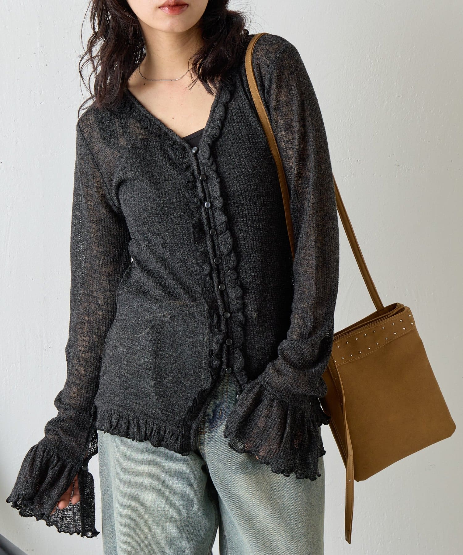 -goocy-(グーシー) シアーワッフルフリルカーディガン