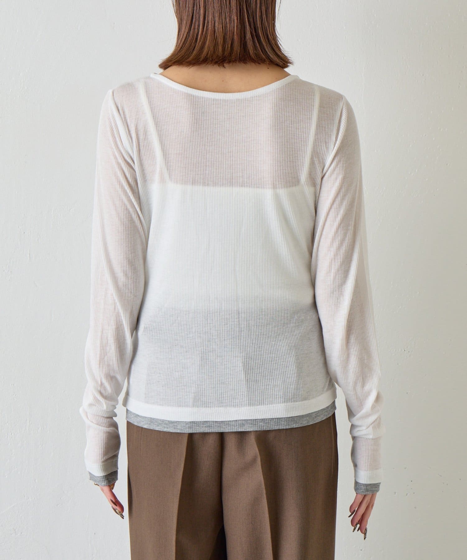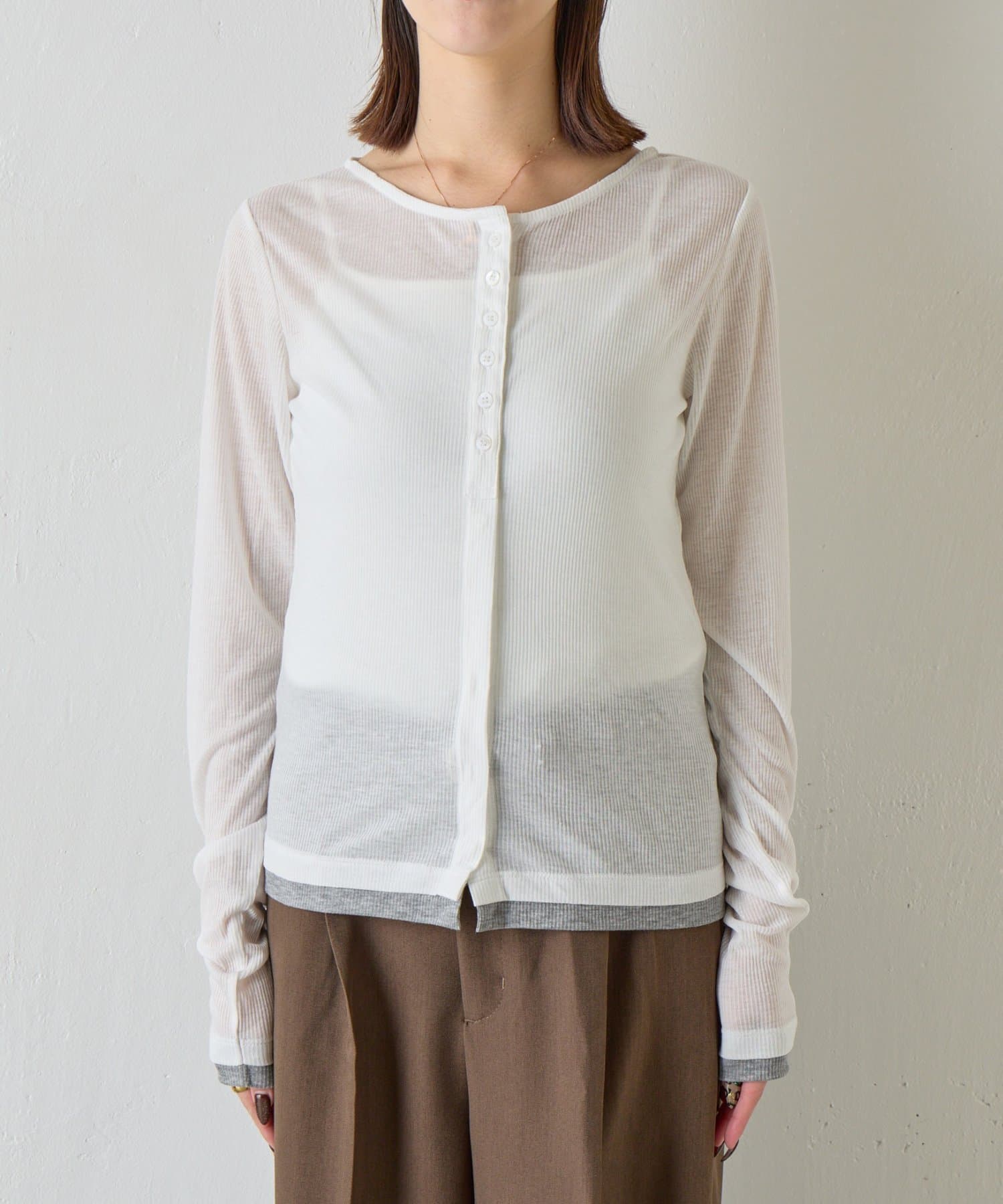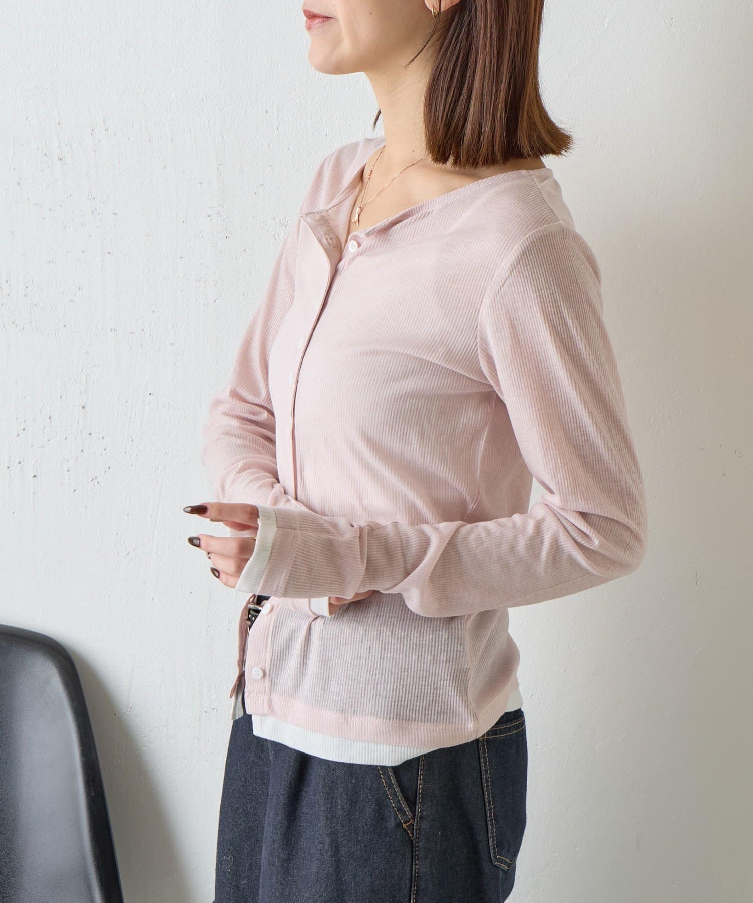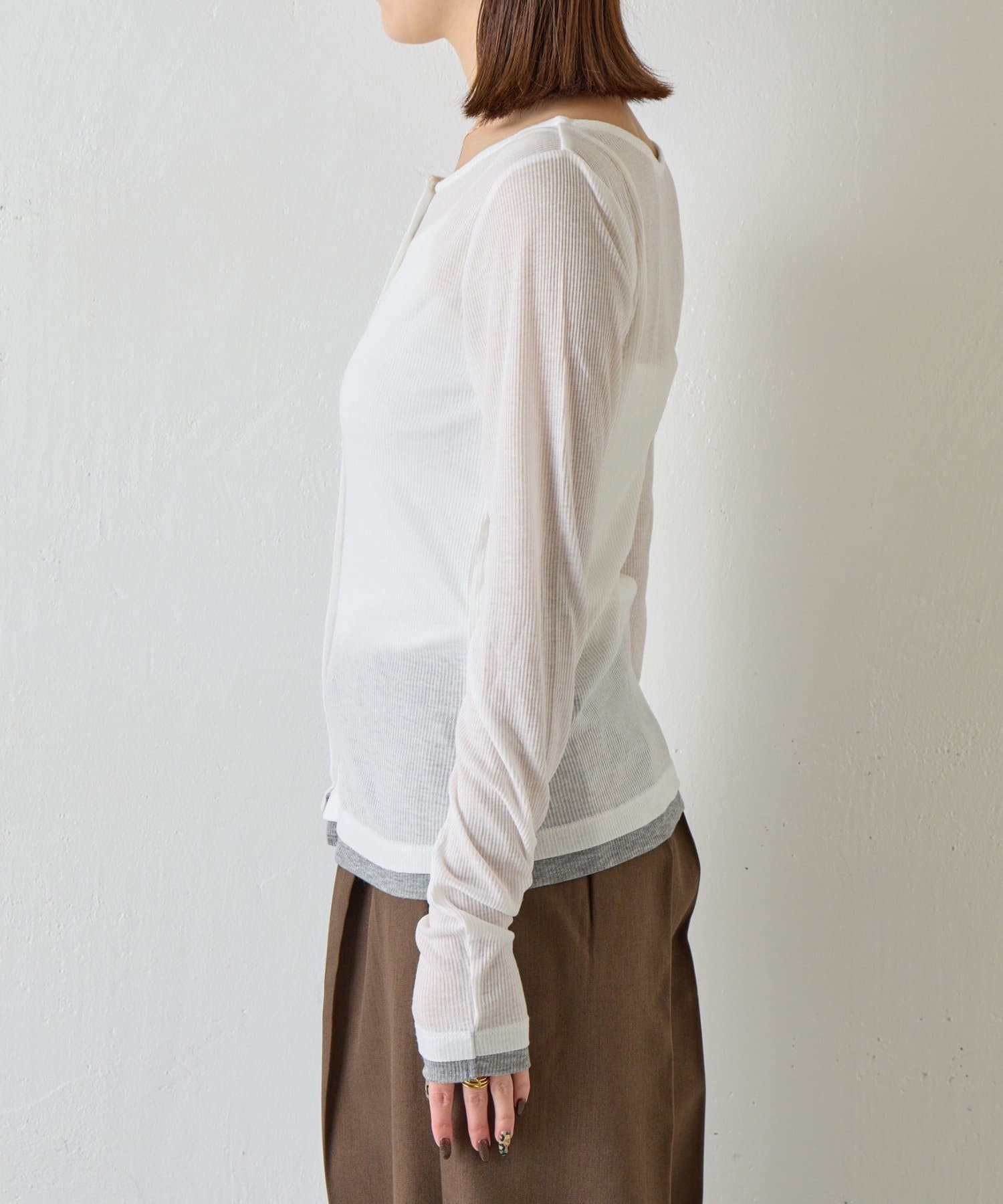 バイカラーシアーリブカーディガン