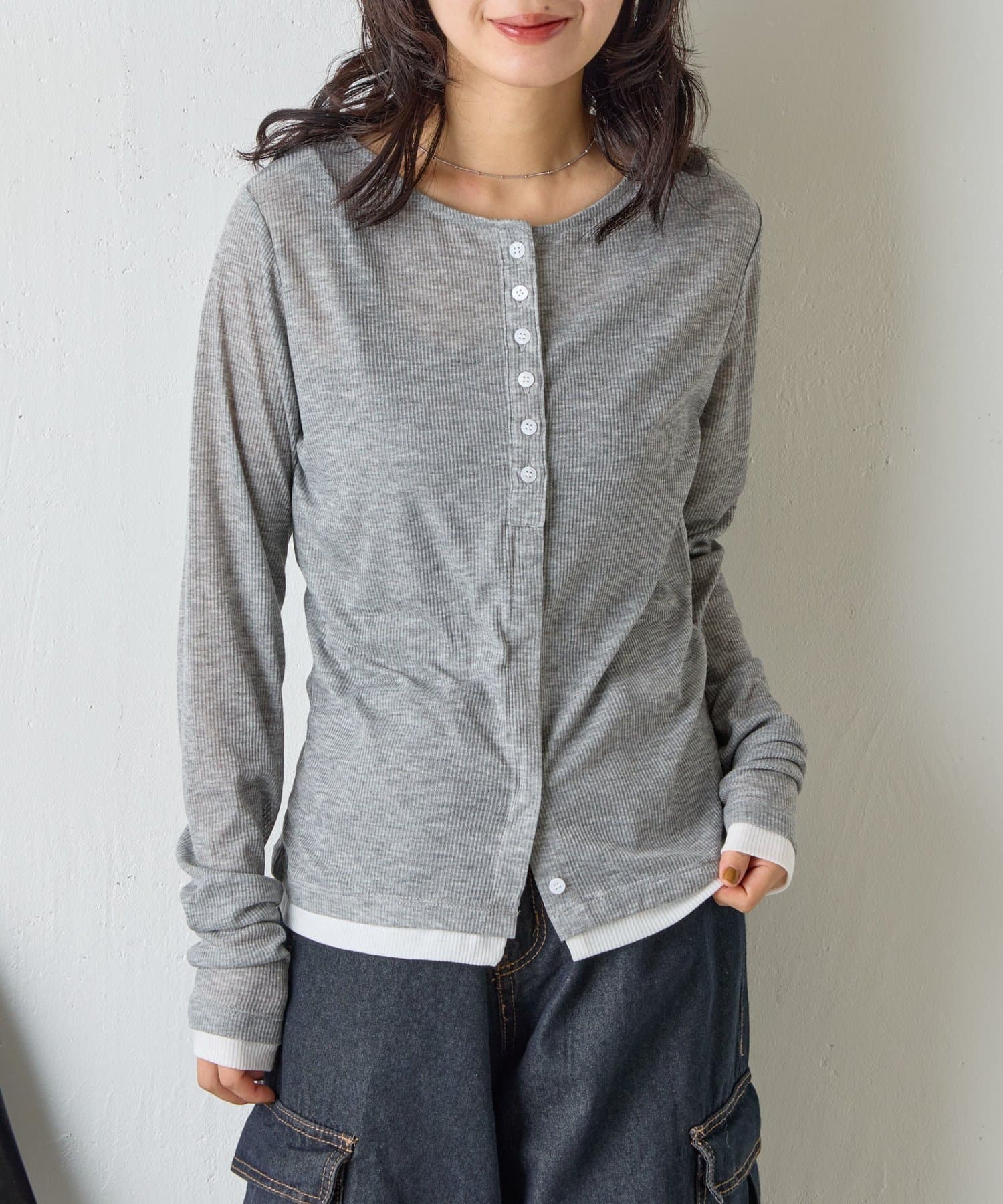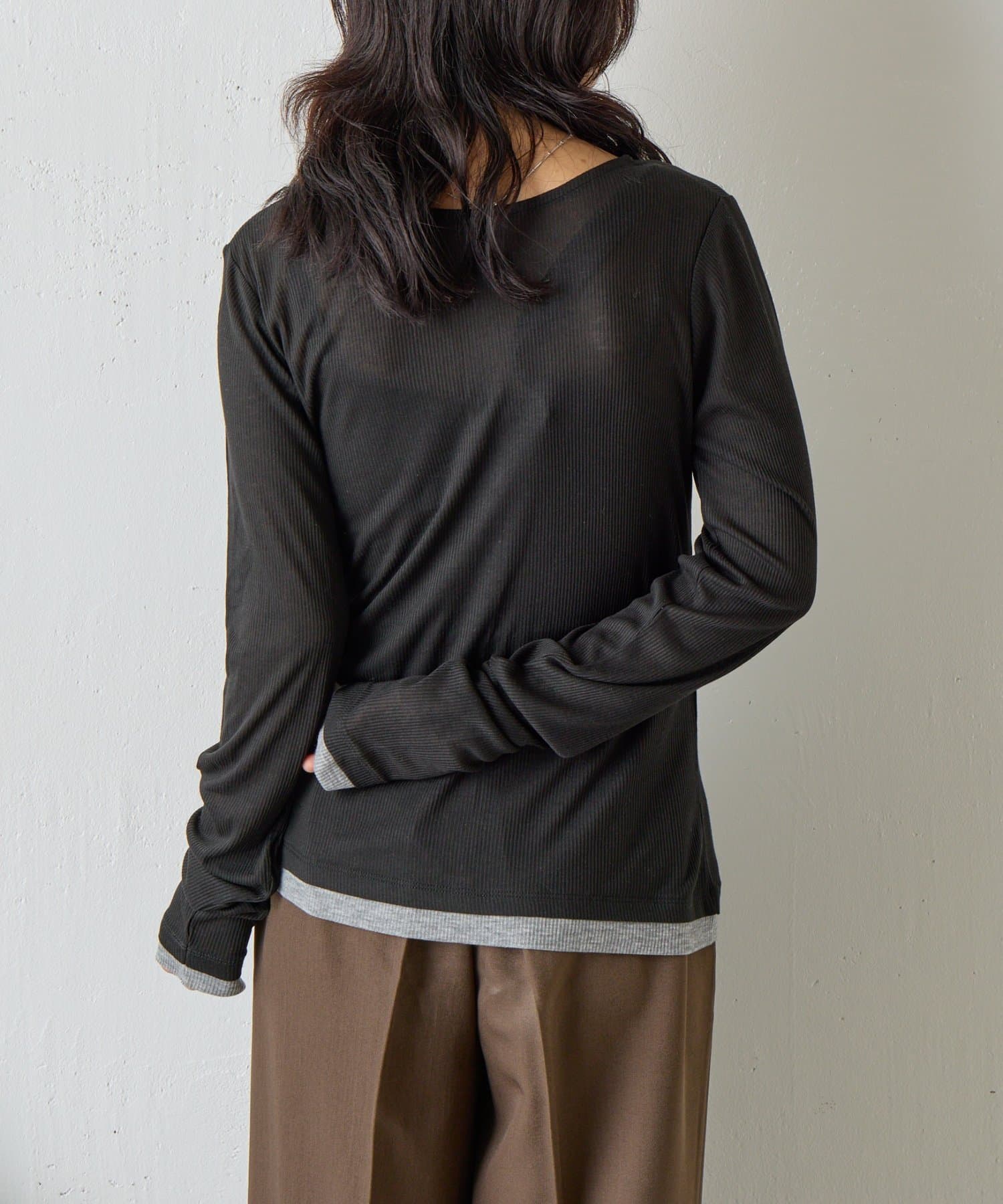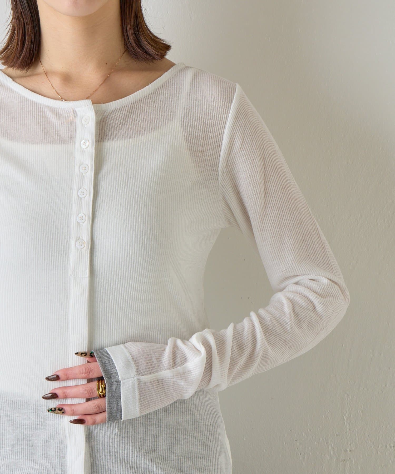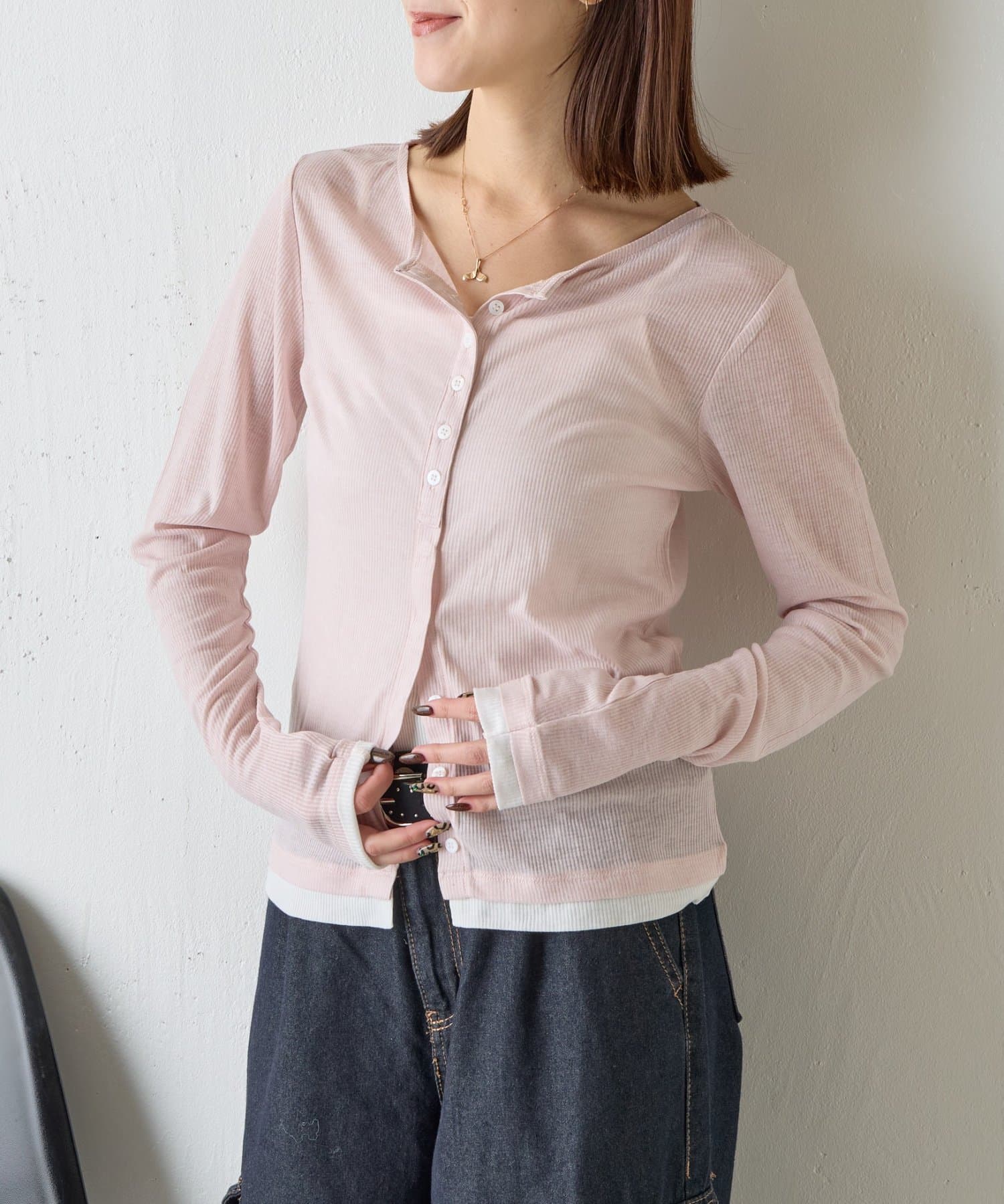 バイカラーシアーリブカーディガン