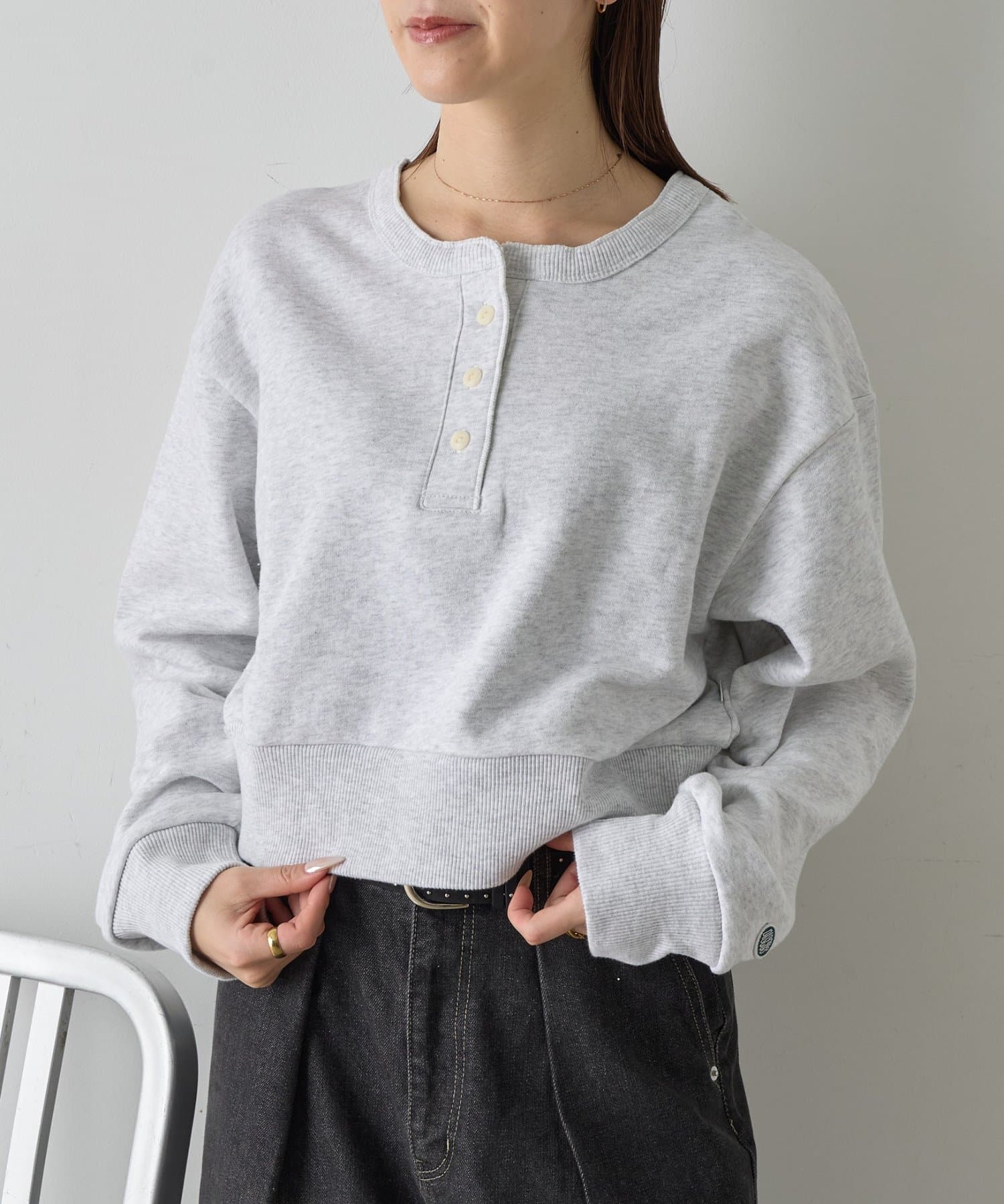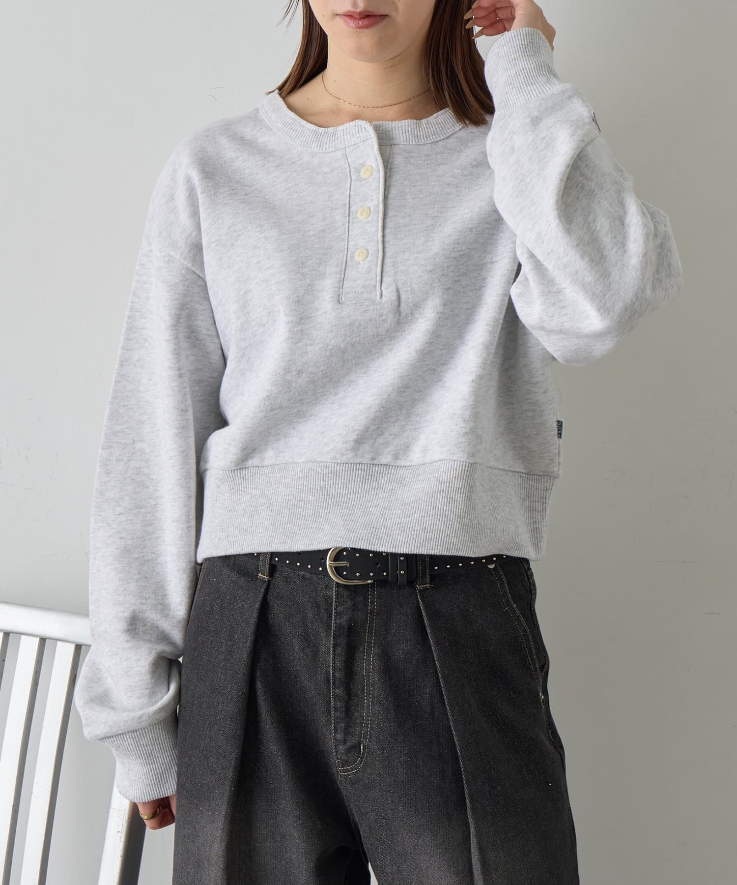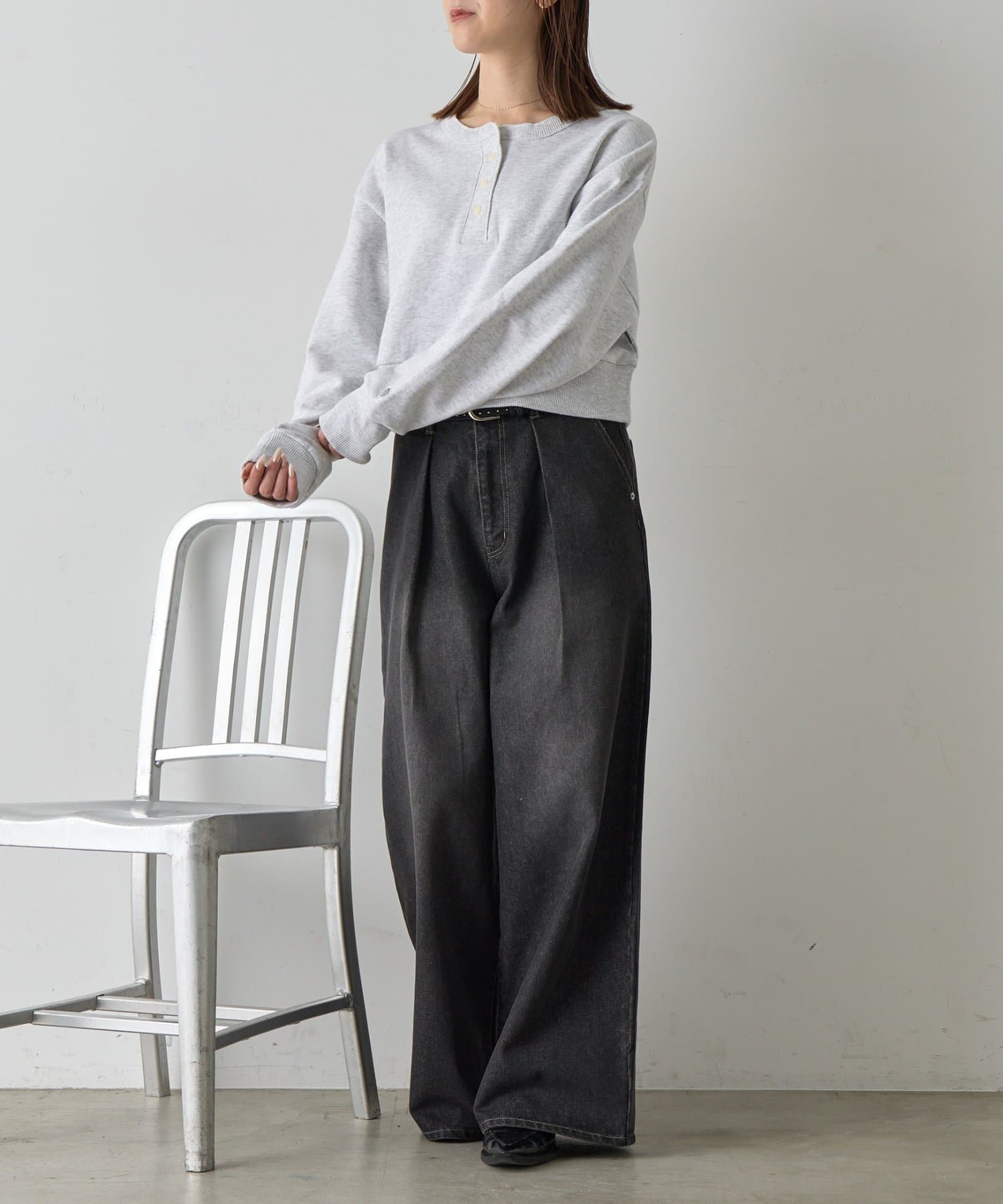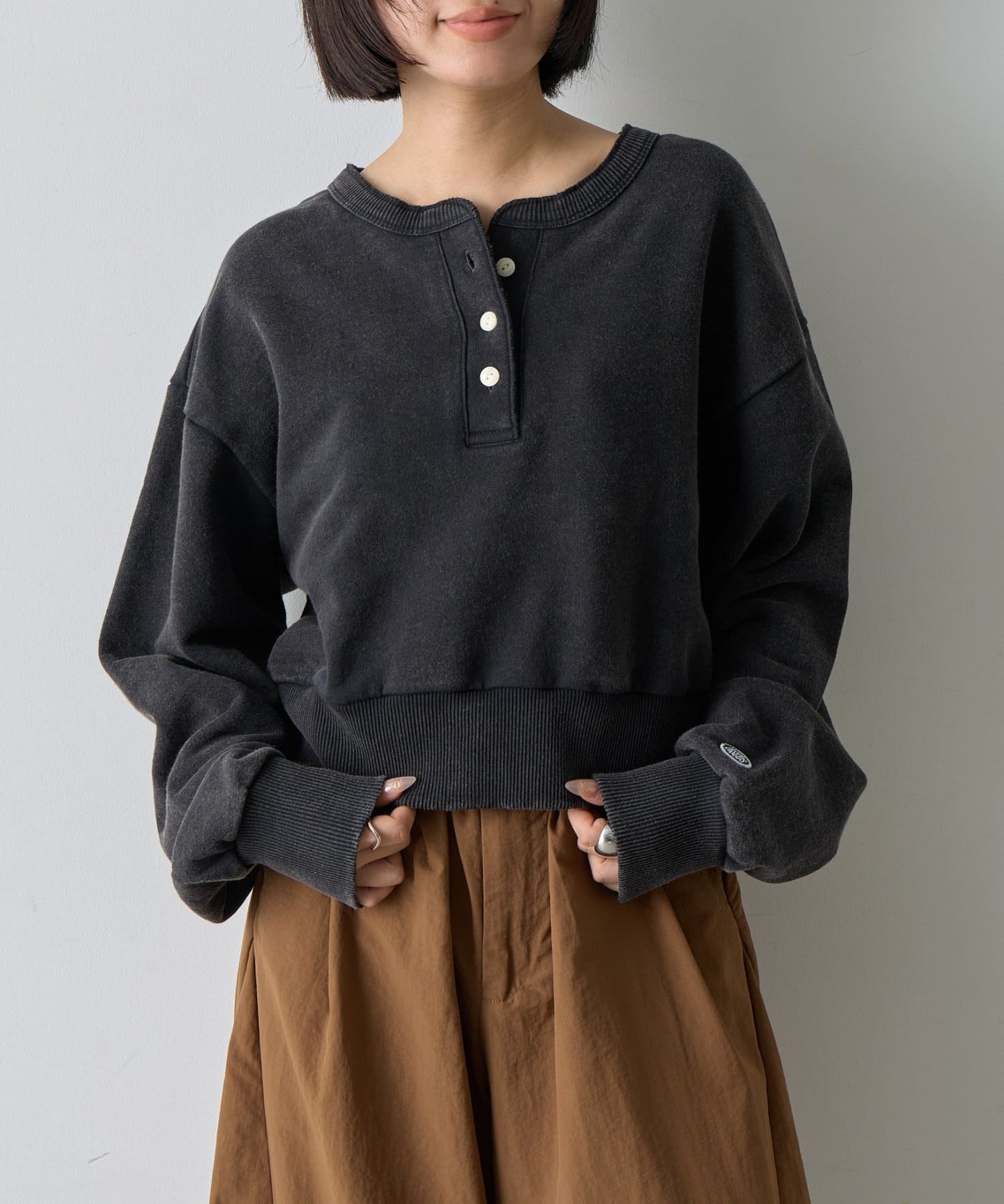 TOP > -goocy- > レディース > トップス > Tシャツ/カットソー > 【DISCUS】パウダーブリーチヘンリーネックプルオーバー
