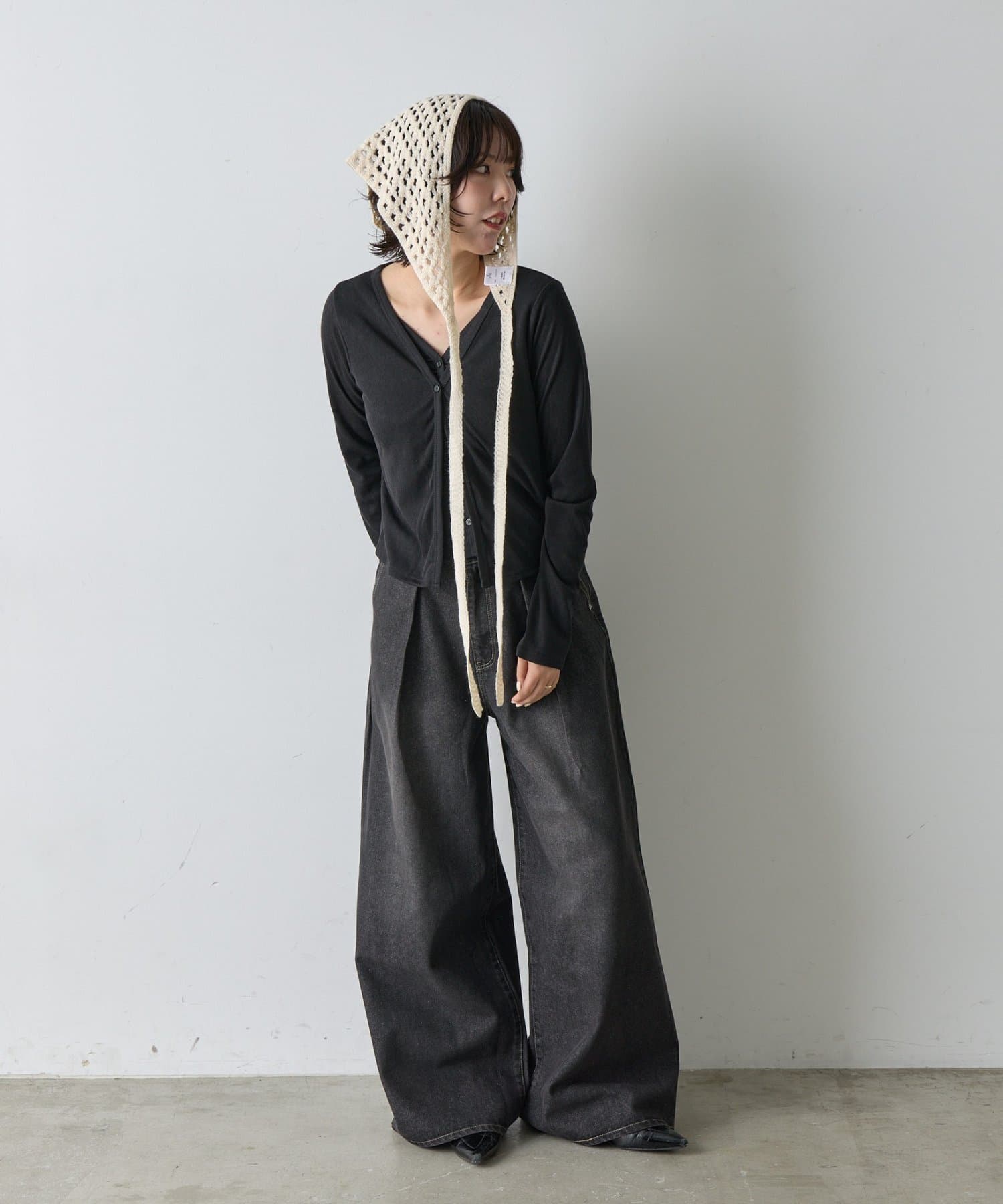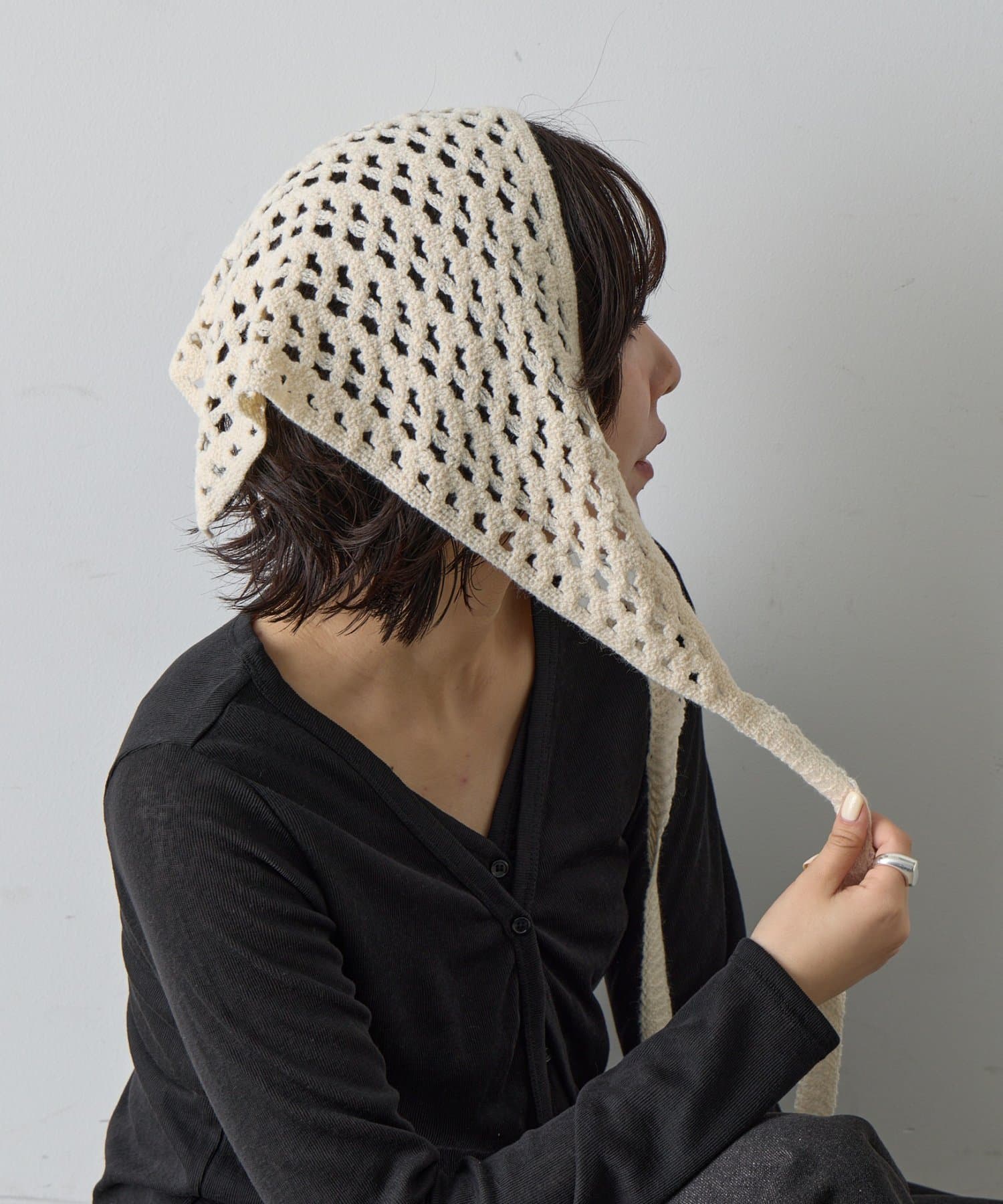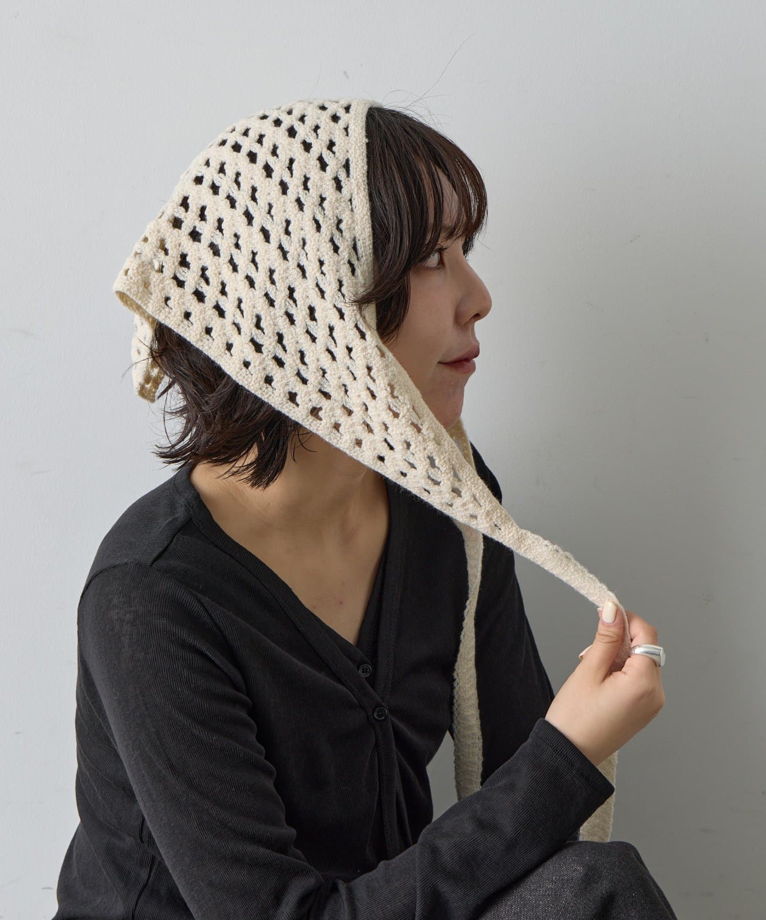 シンプルコーデを格上げする、透かし網バブーシュカ