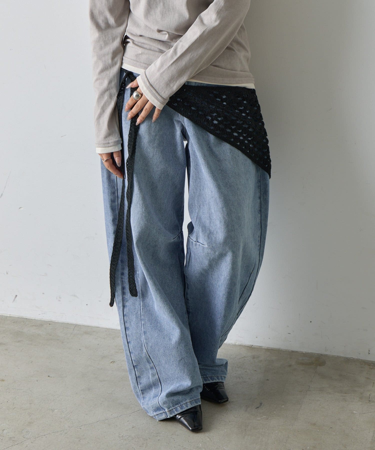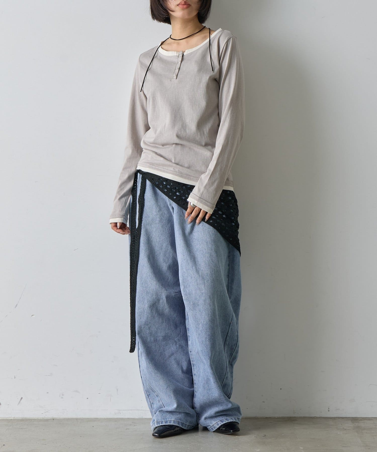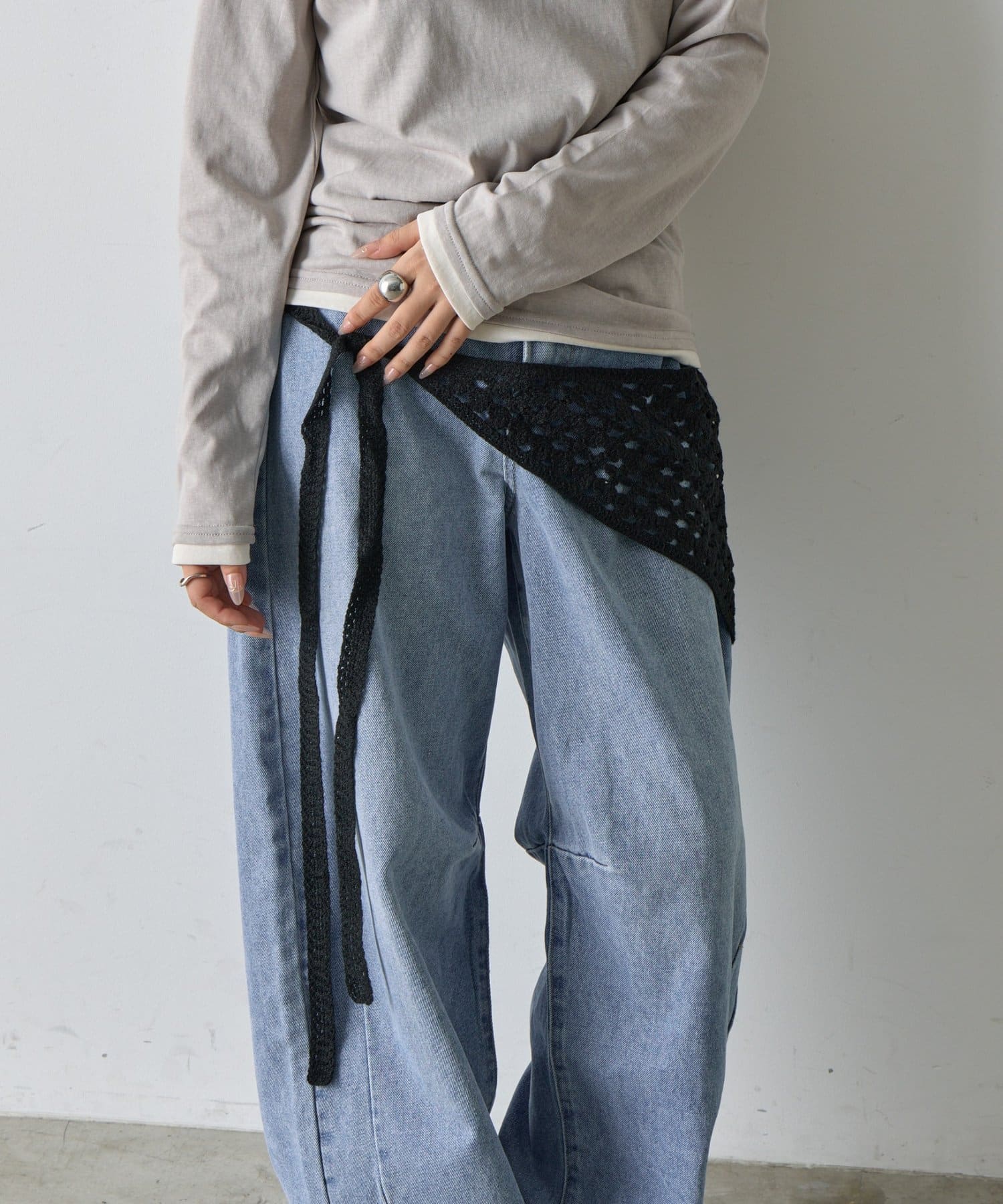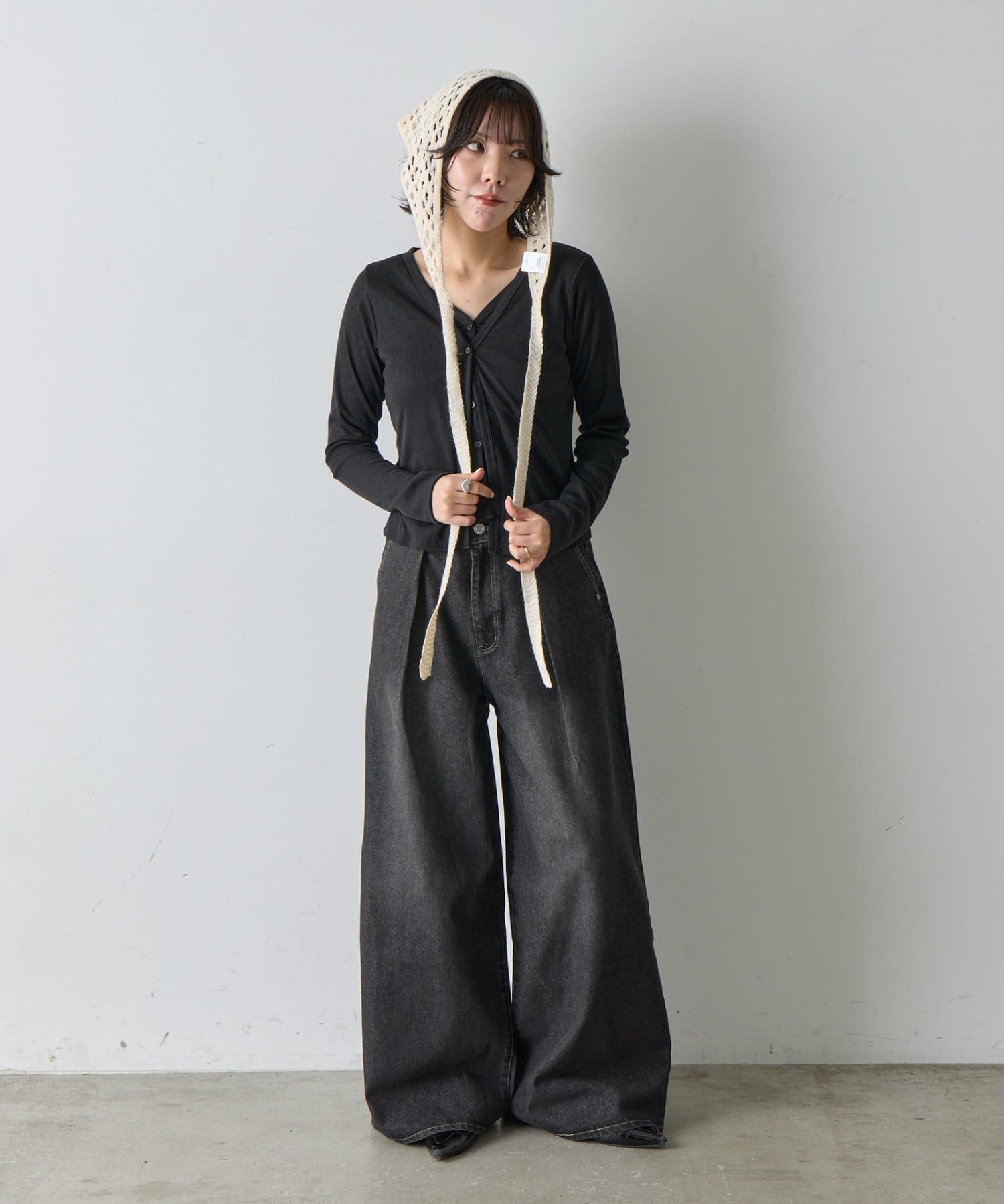 シンプルコーデを格上げする、透かし網バブーシュカ