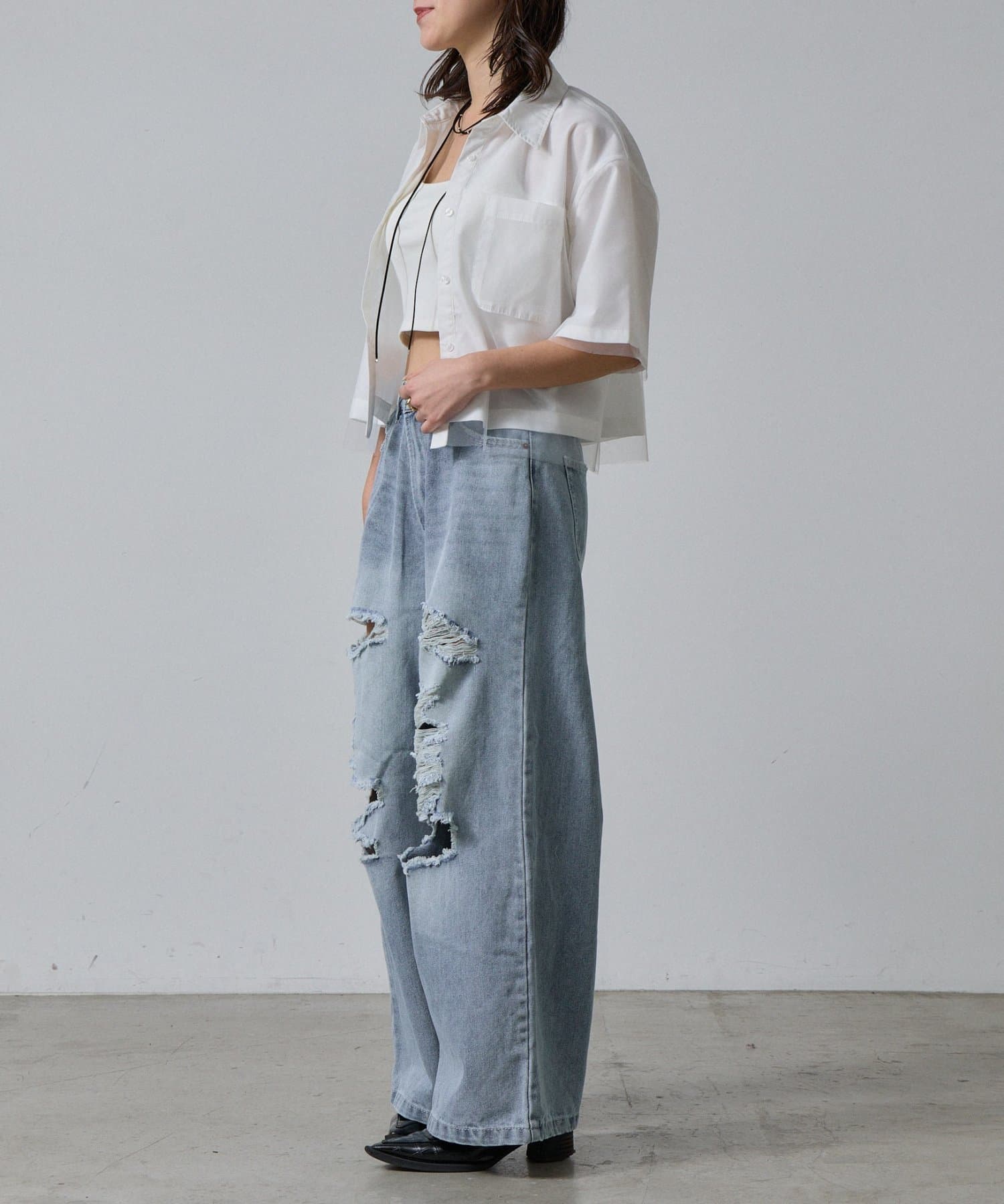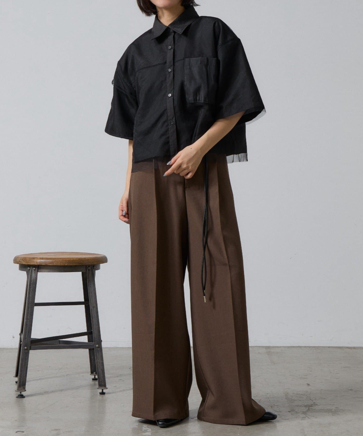 ・ショート丈なのでハイウエストのボトム合わせがバランスよく着用可能◎