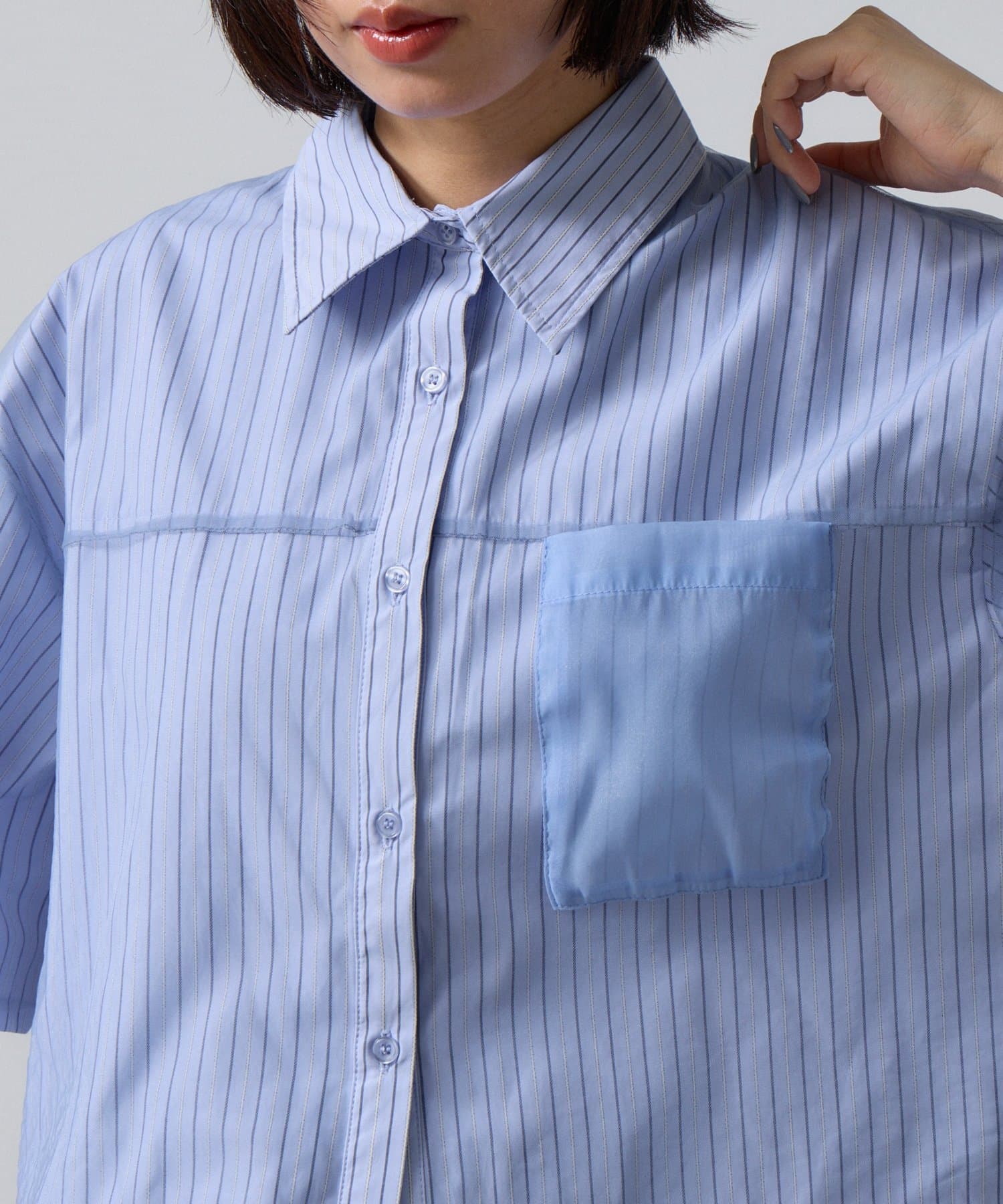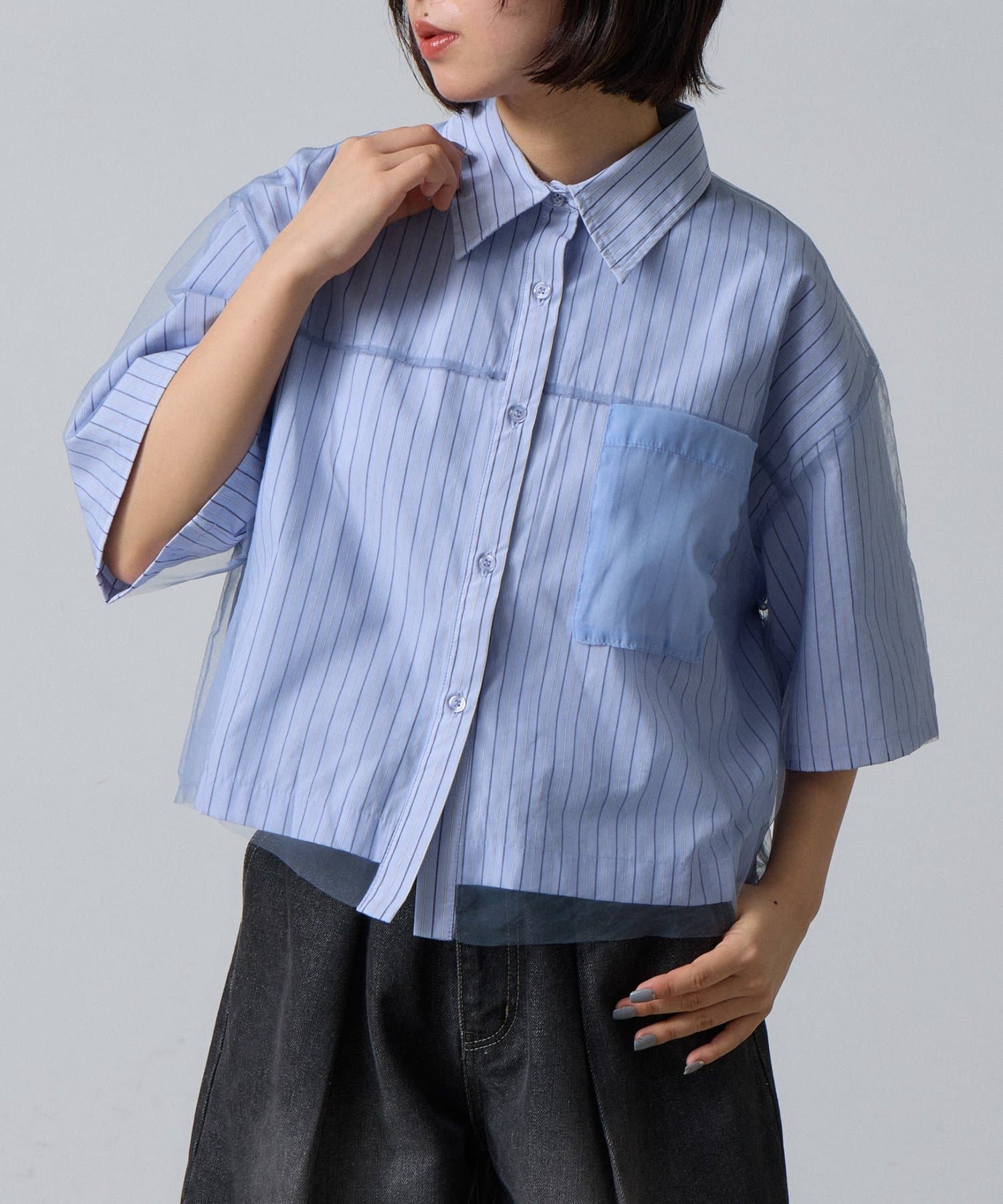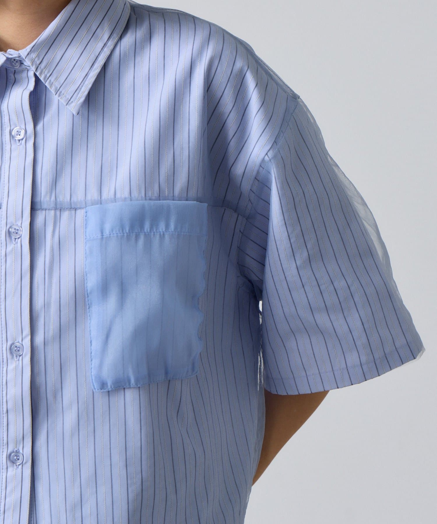 チュール被せ半袖シャツ