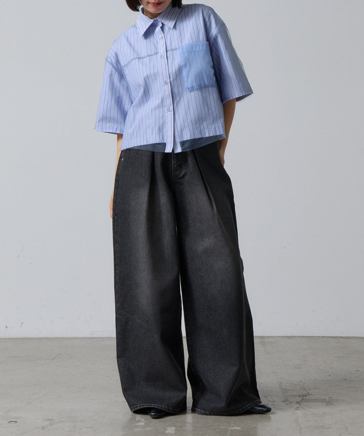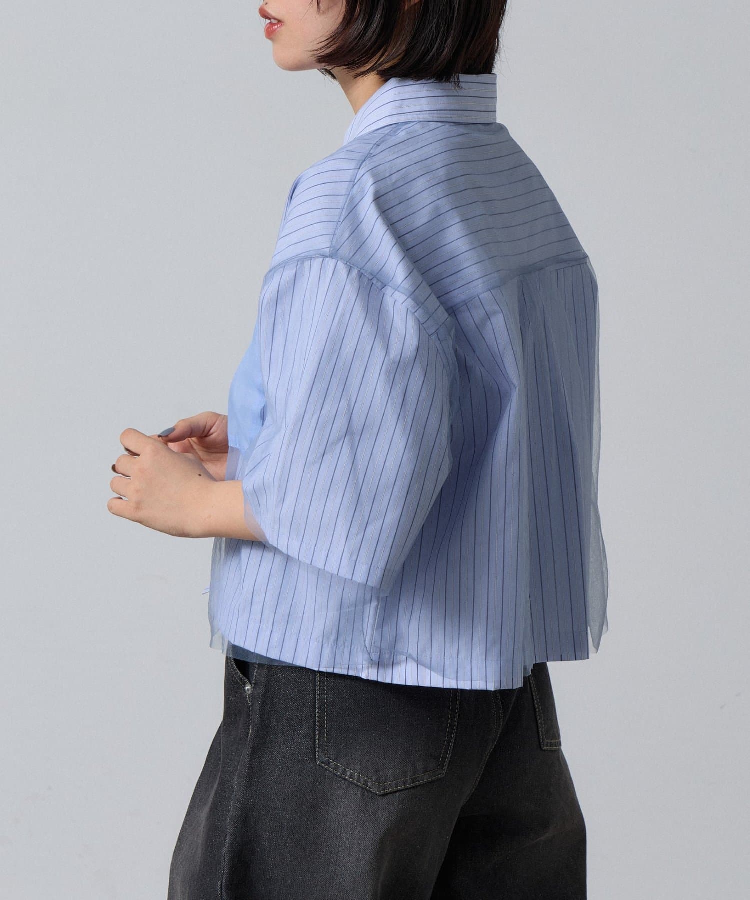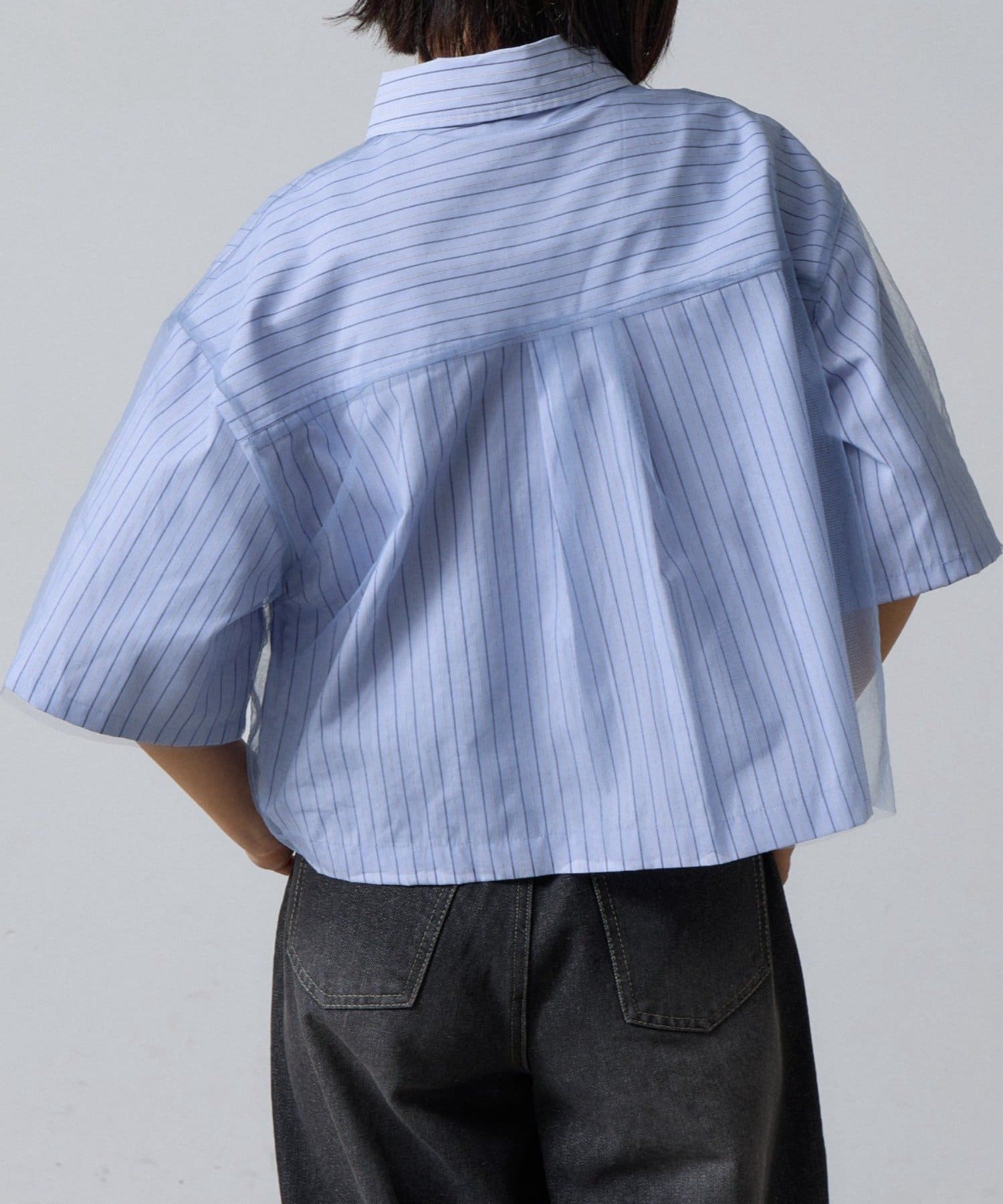 #半袖シャツ #チュールシャツ #チュールドッキング