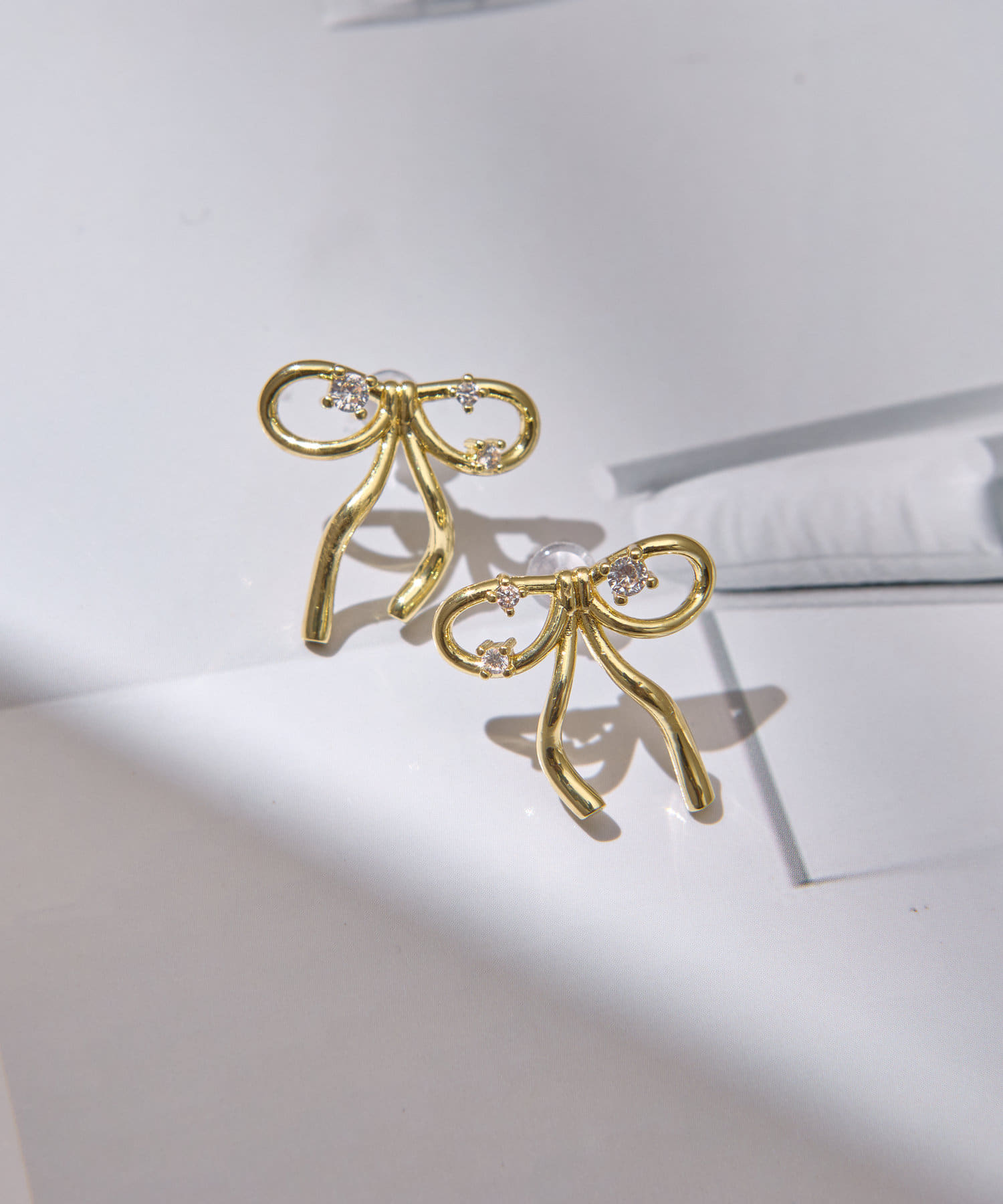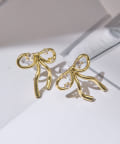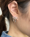 【ホワイトメタル】ビジューリボンピアス