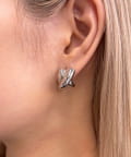 なめらかな曲線がクロスしたようなデザインは、シンプルながらも存在感があり、顔周りをぱっと華やかな印象にしてくれます。