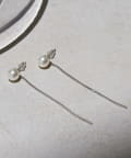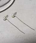 耳元で上品に輝くパールから、繊細なロングチェーンが揺れるピアス