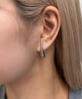 耳元で洗練された輝きを放つ、ドロップモチーフのメタルピアス。
