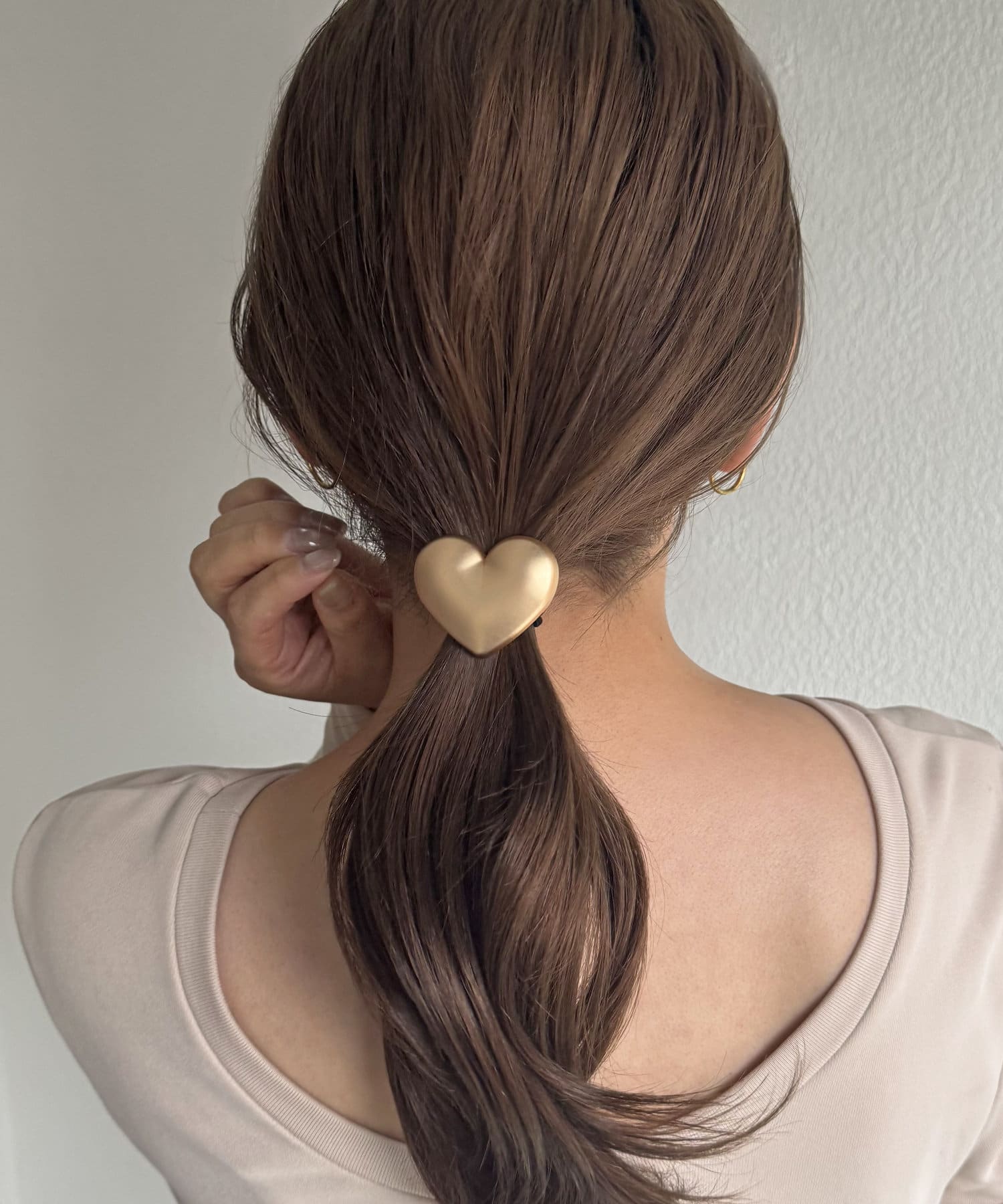 これに似たのっぺりハートのヘアゴムも持ってますが、こちらはマットゴールドでぷっくりハートが可愛くて