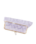 紫はラプンツェルっぽいイメージでとても可愛い。がまぐちのパールも可愛い。ポーチとしてサイズ感も使いやすい。