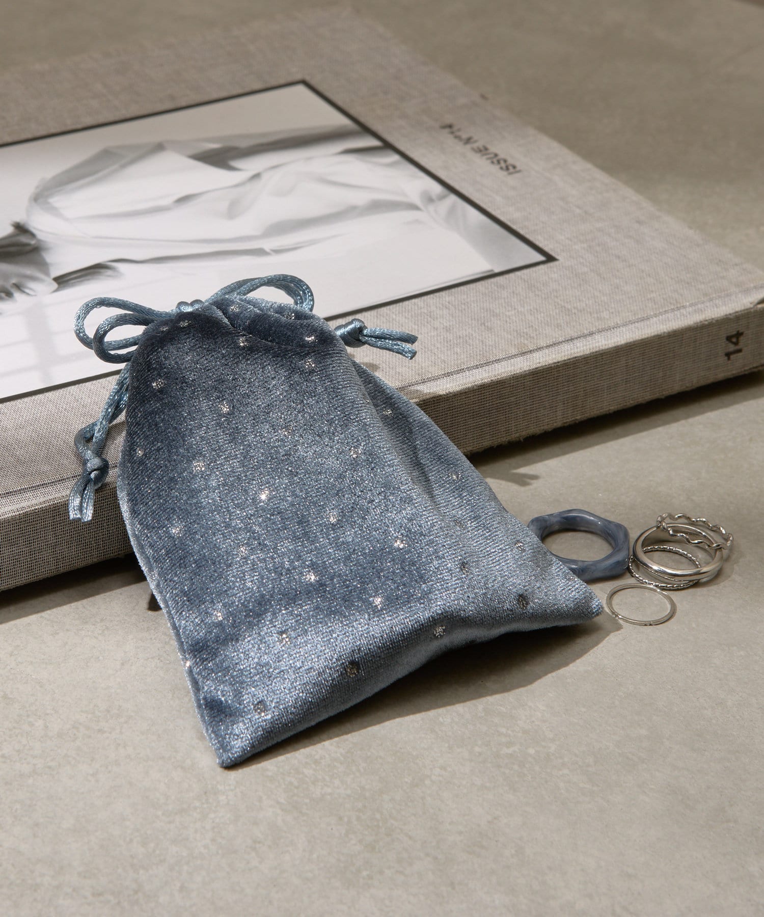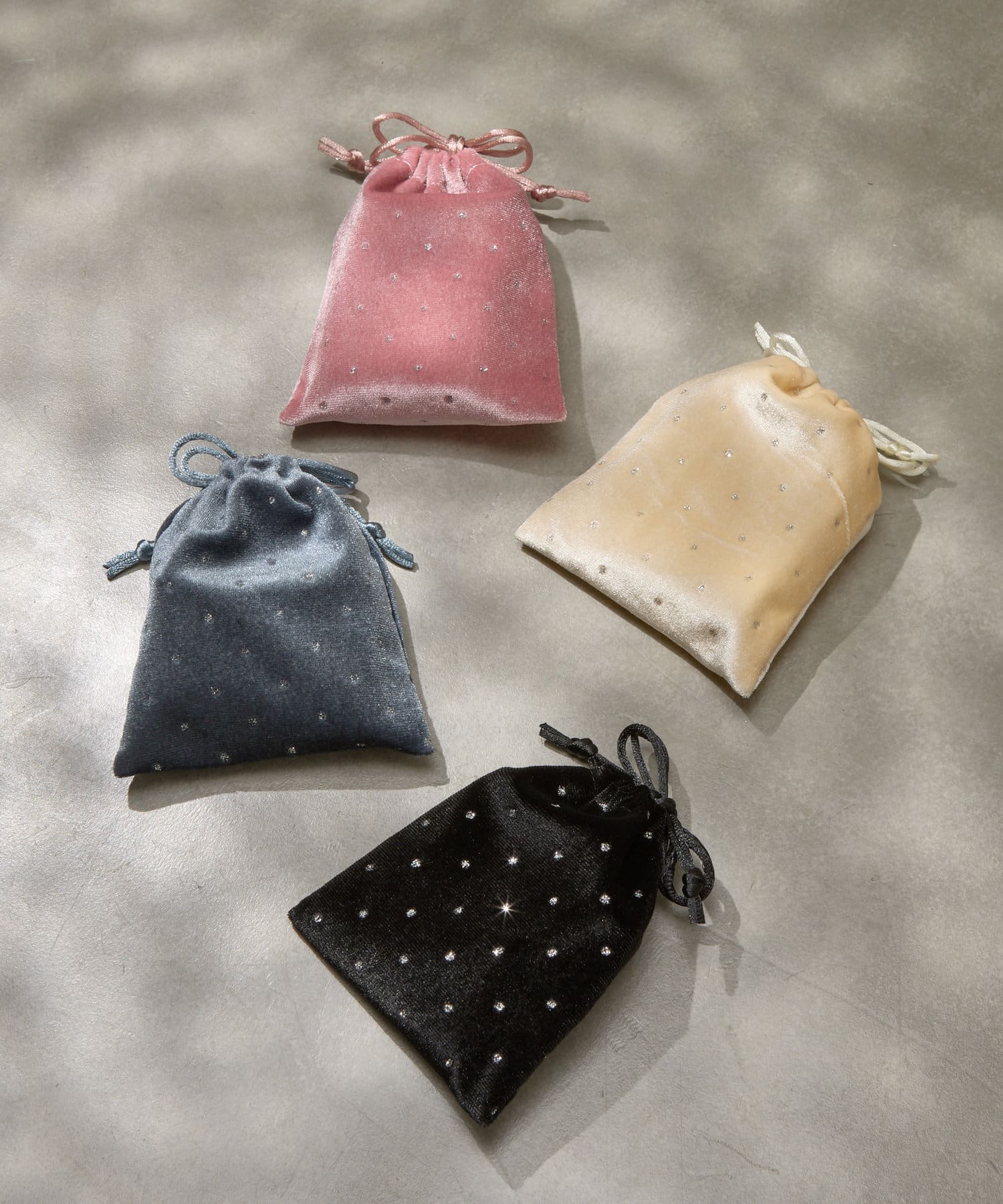 きらりと光るストーンがワンポイントの巾着ポーチ