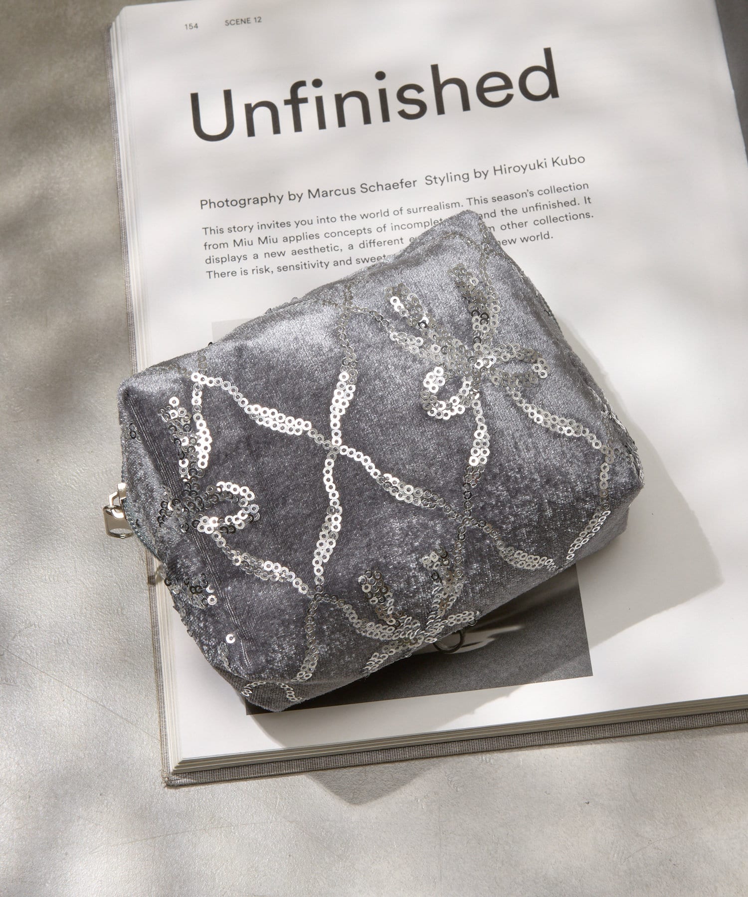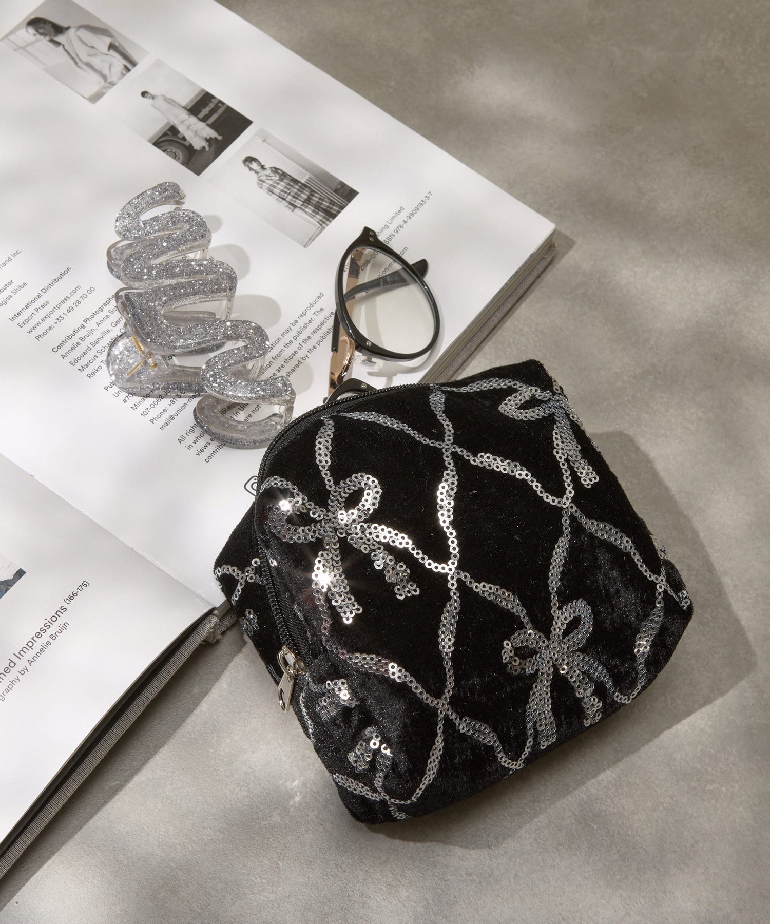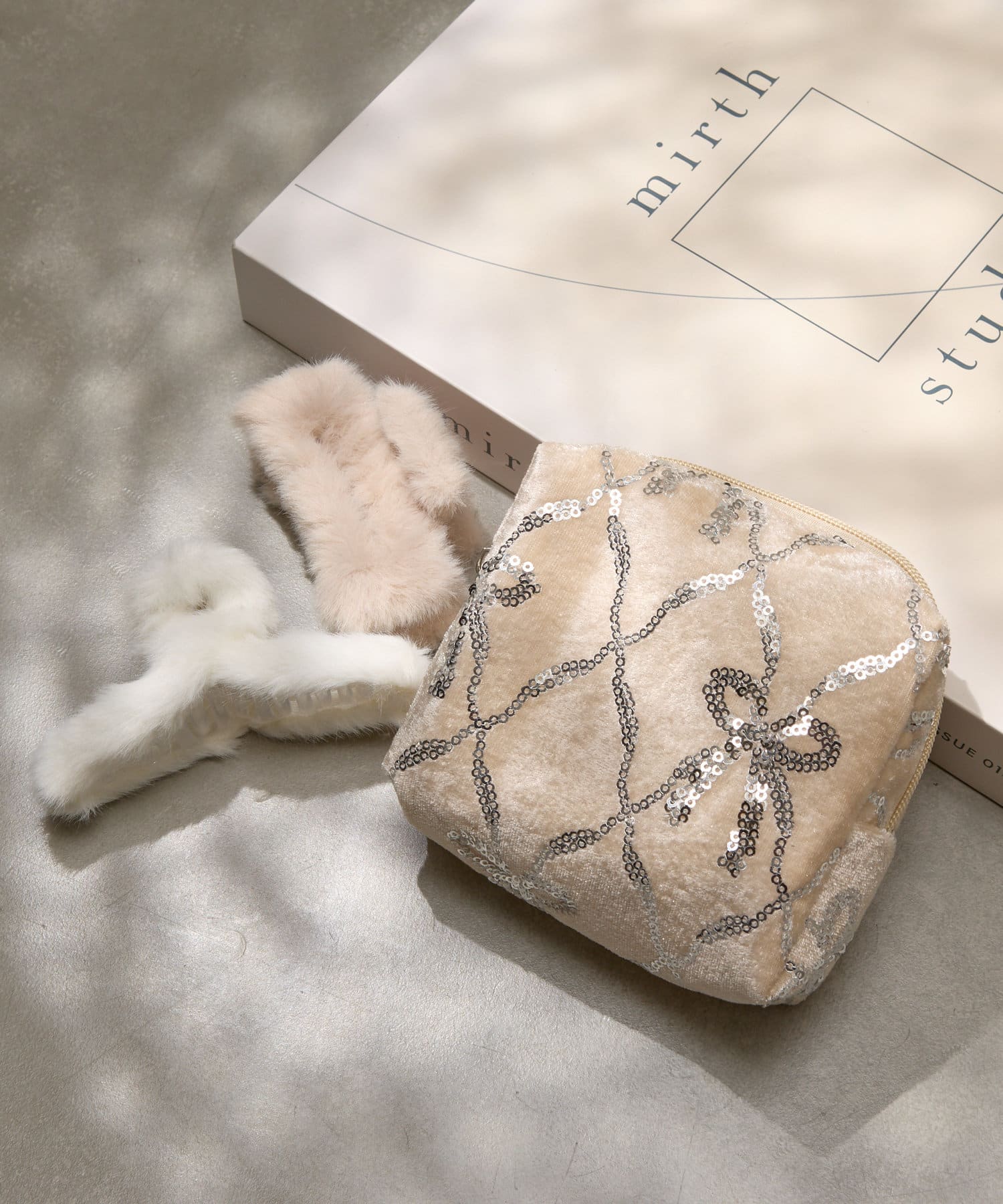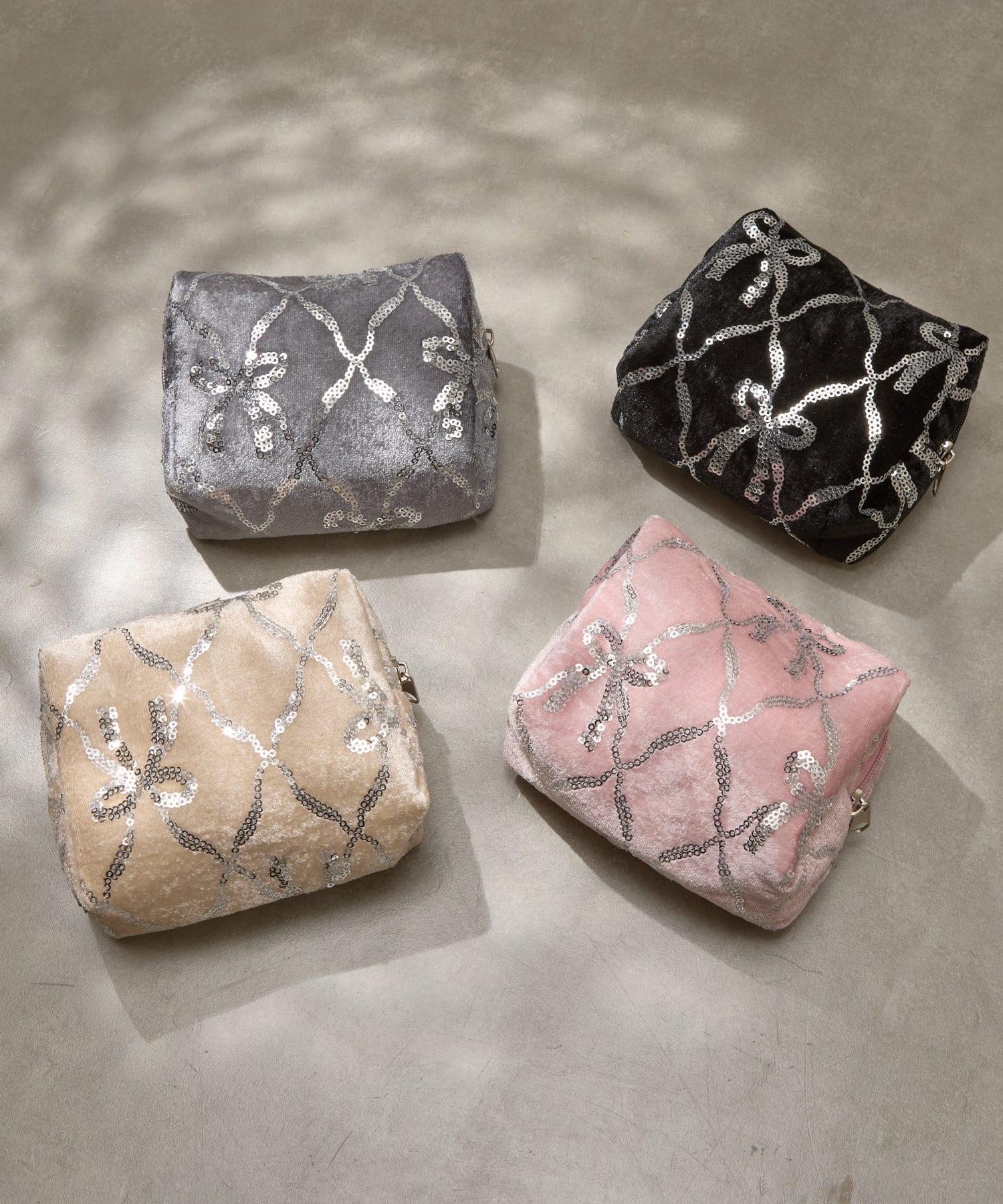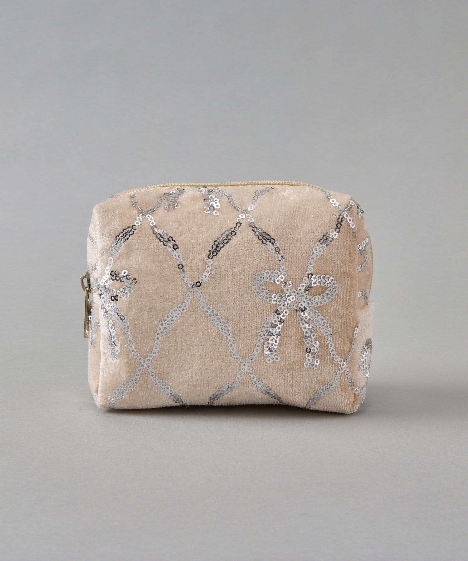 スパンコールリボンベロアポーチ