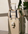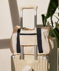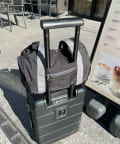 背面ベルト付きでキャリーケースのハンドルも通せます。