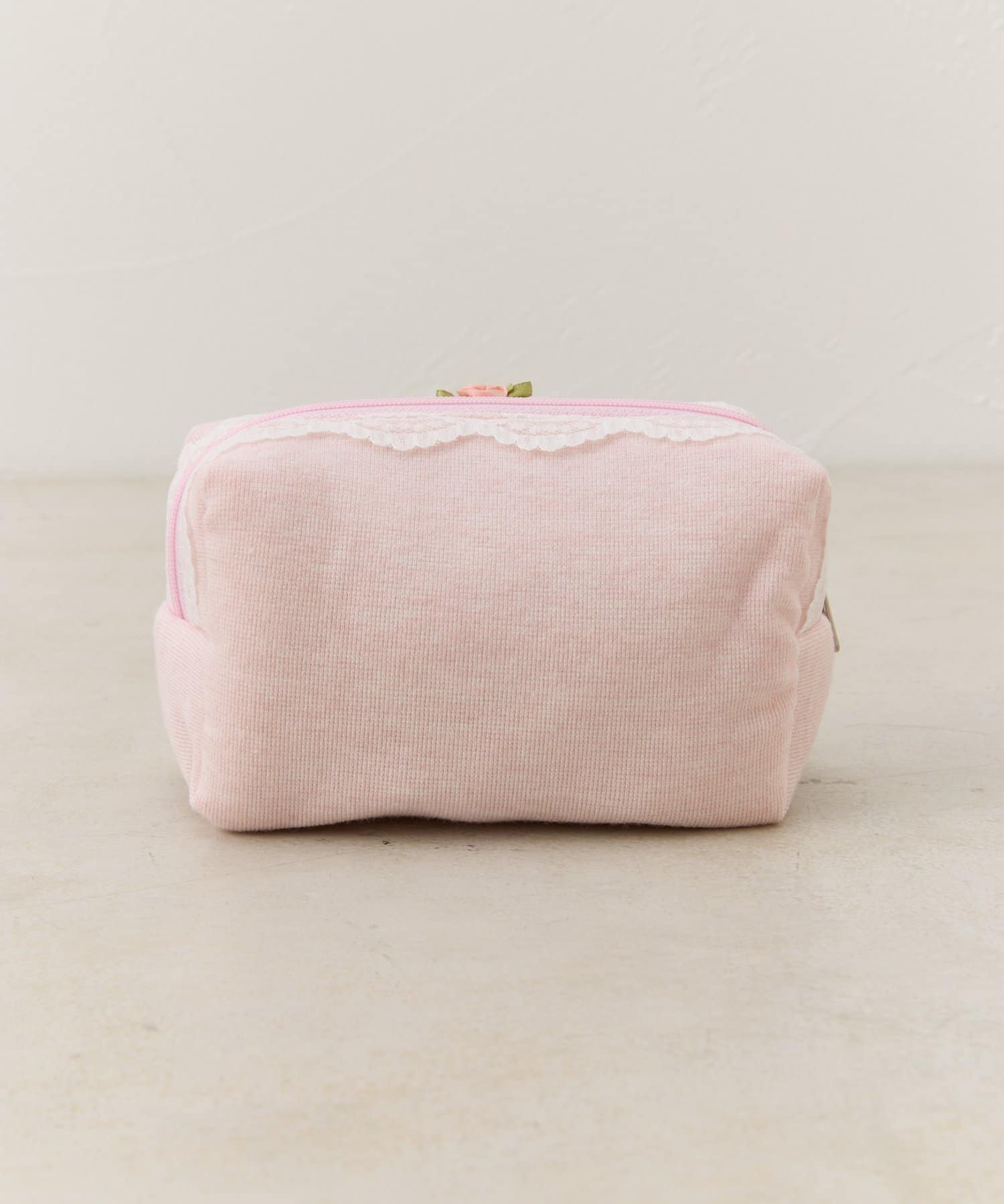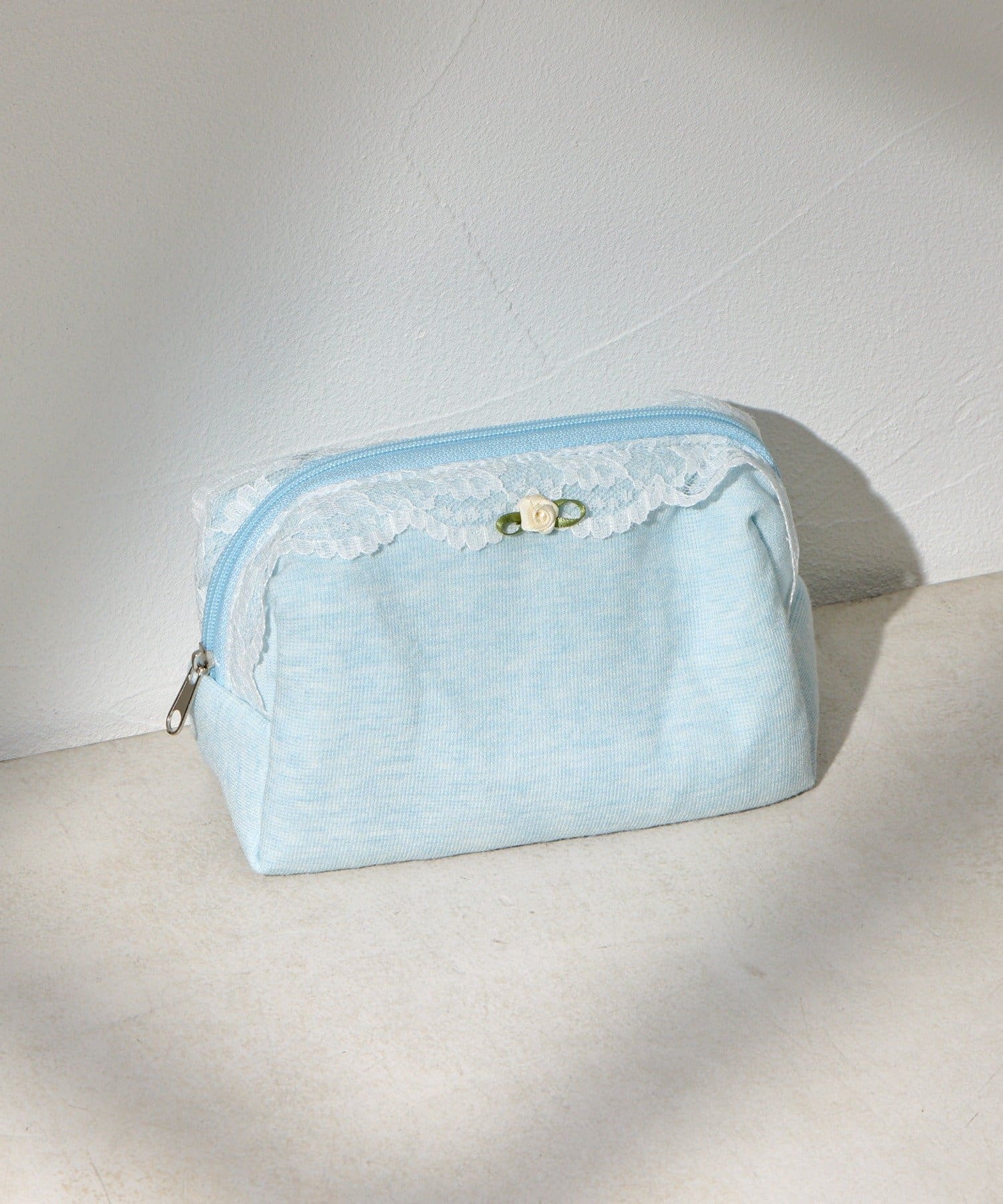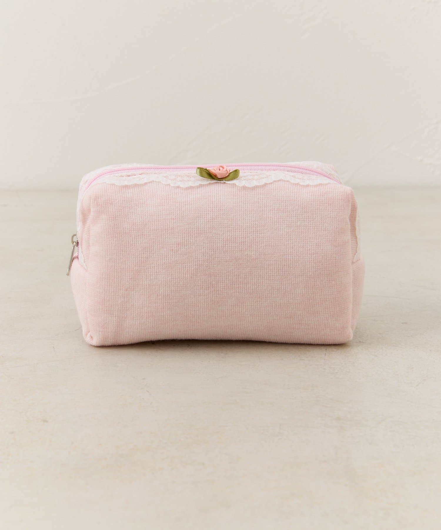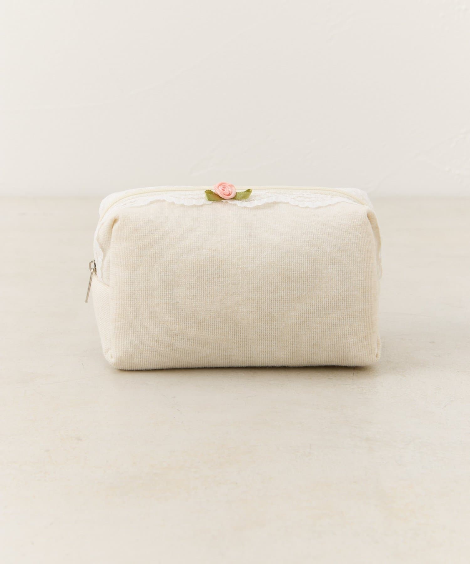 レースとワンポイントのバラが可愛いポーチ。