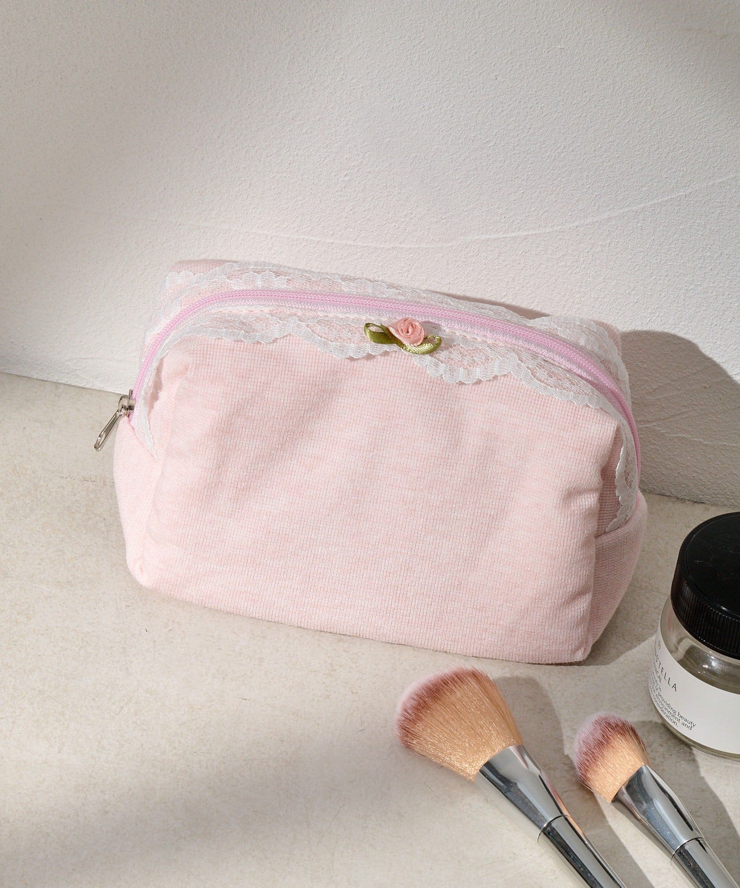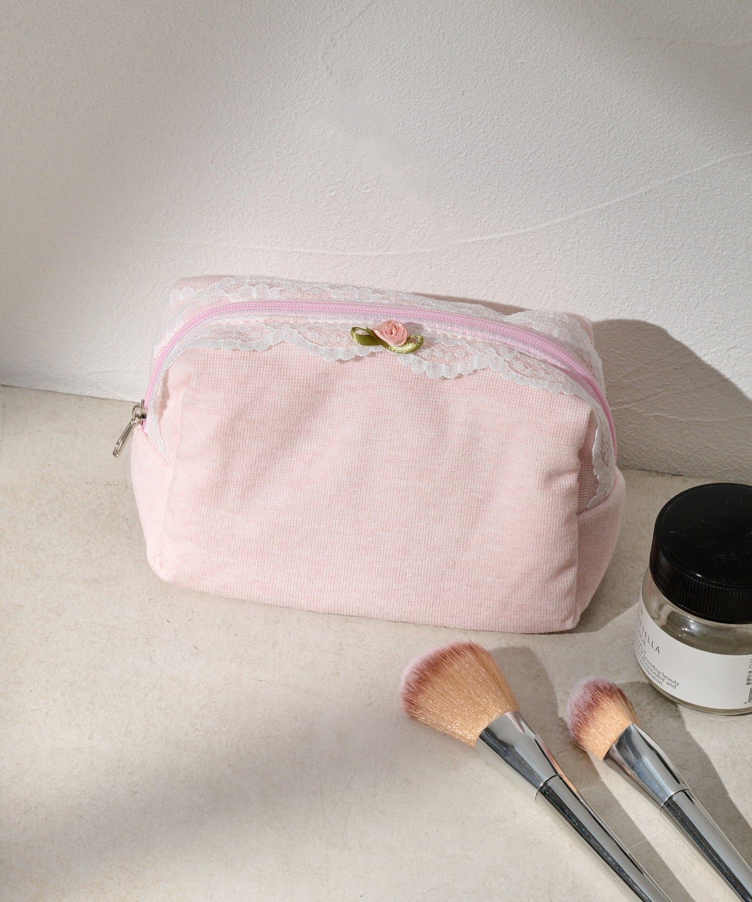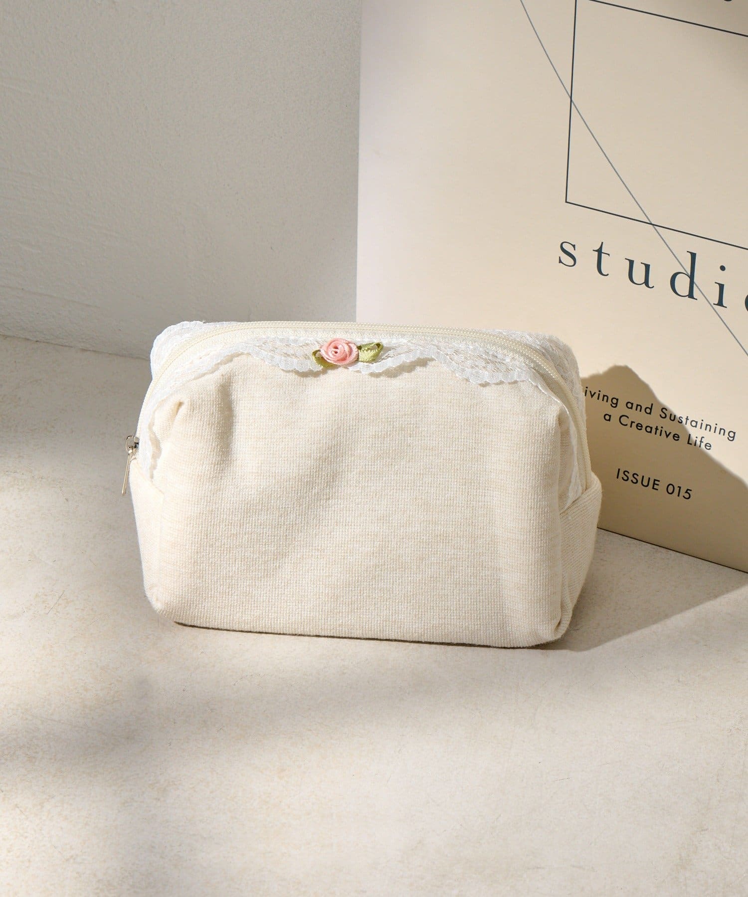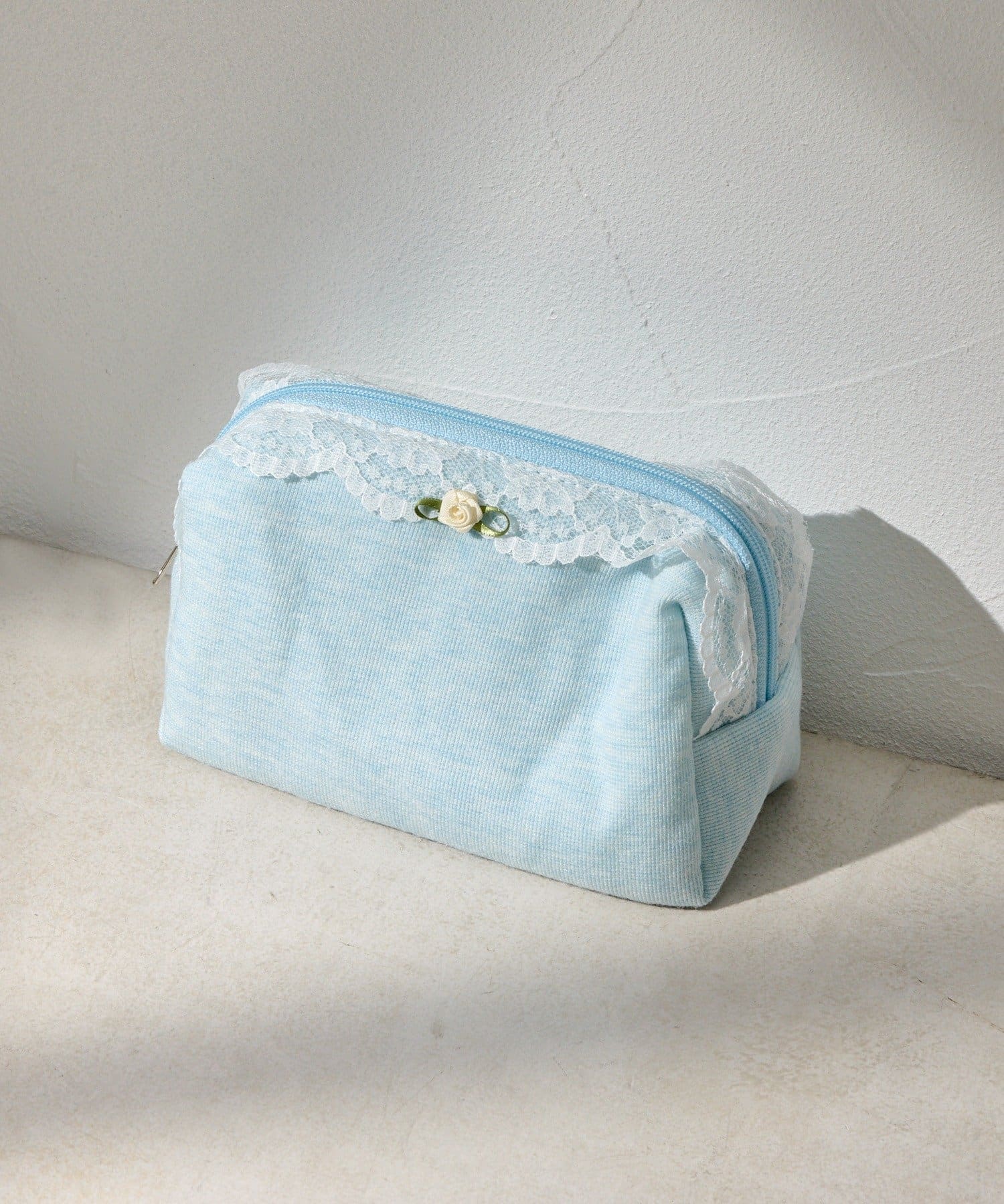 レースとワンポイントのバラが可愛いポーチ。