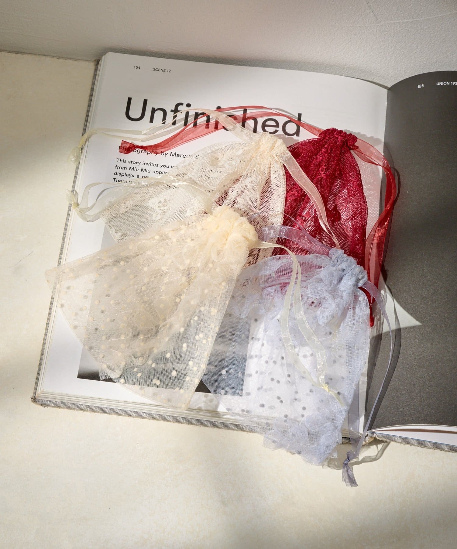 アクセサリーや小物を入れるのにちょうど良い巾着ポーチ。