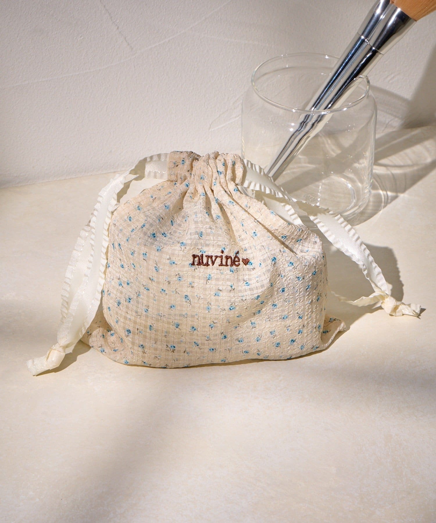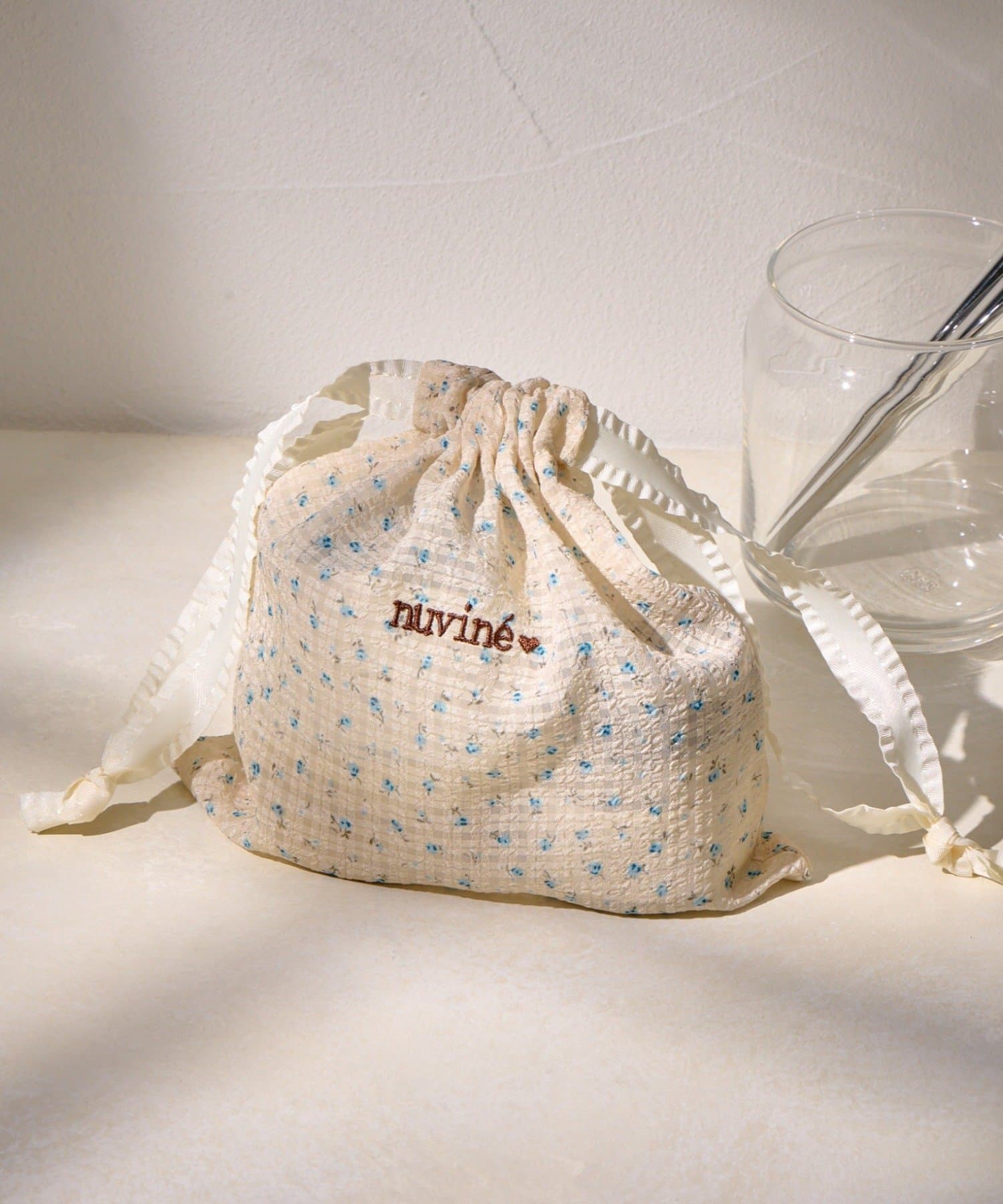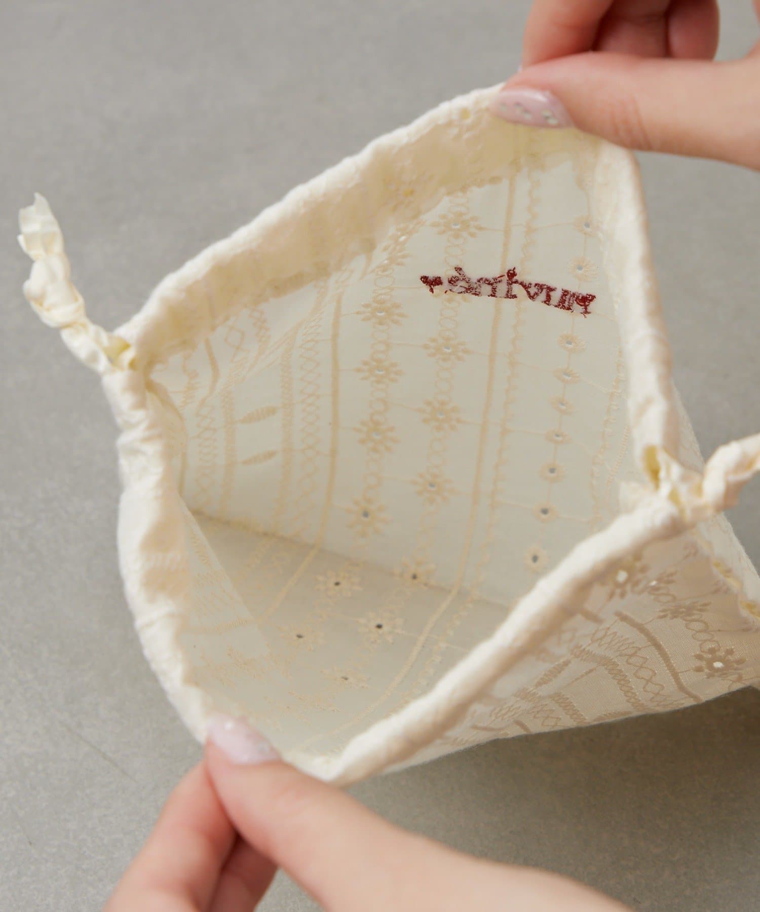 • Lattice(ラティス) パターン刺繍巾着ポーチ