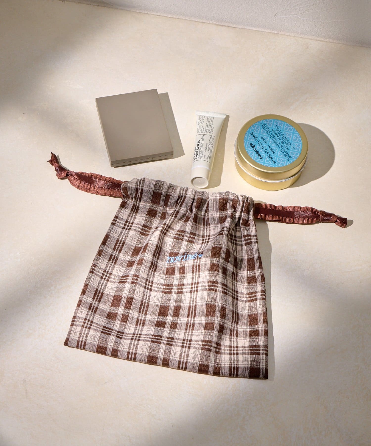 アクセサリーや小物を入れるのにちょうど良い巾着ポーチ。