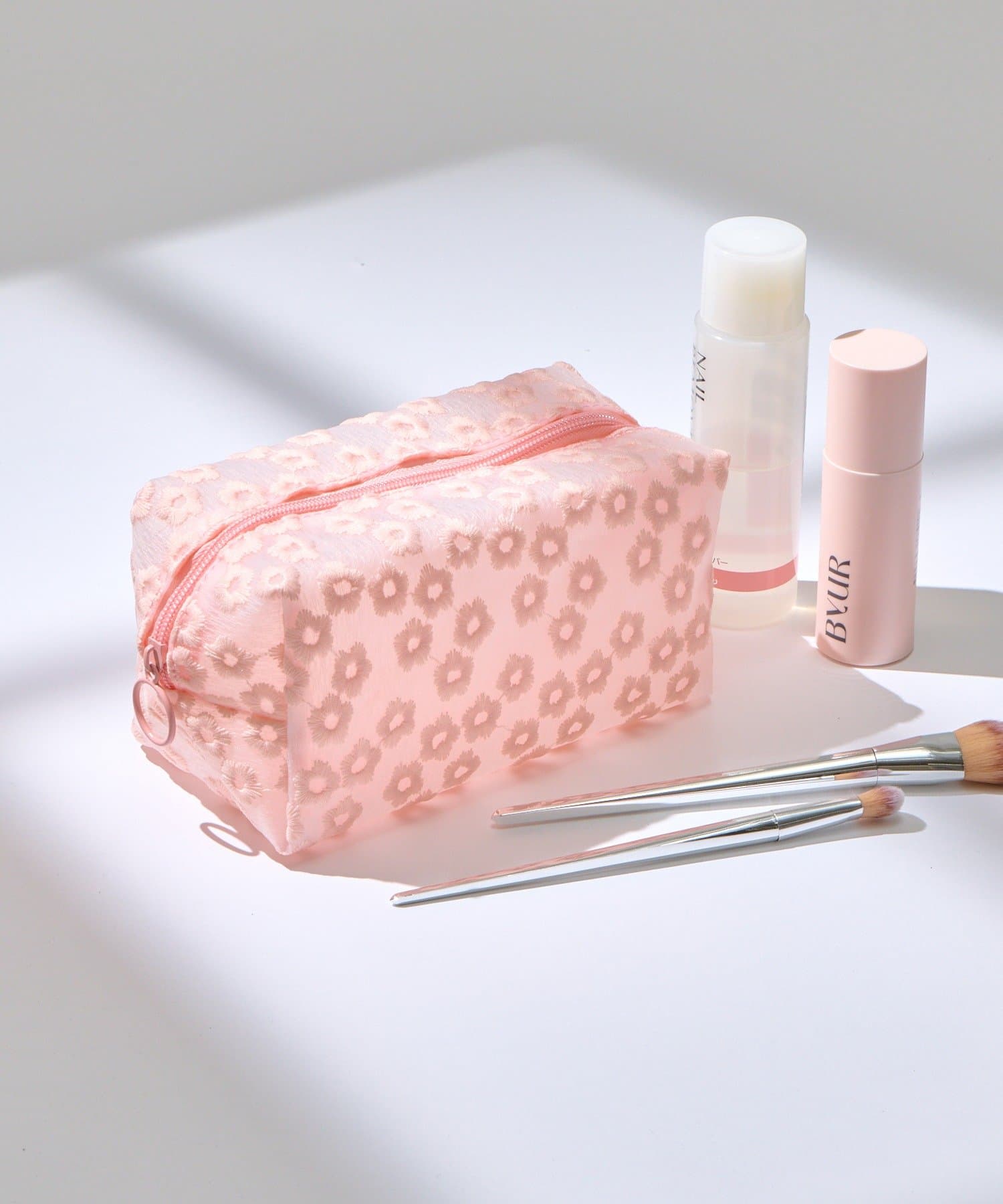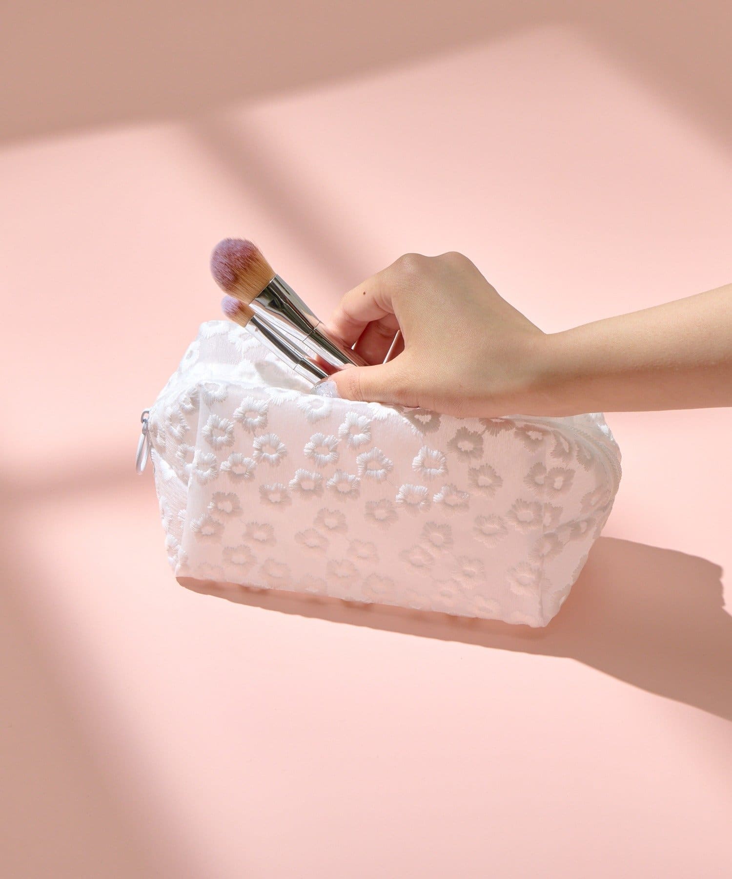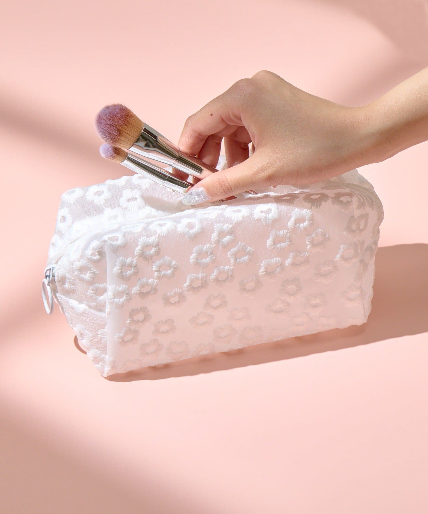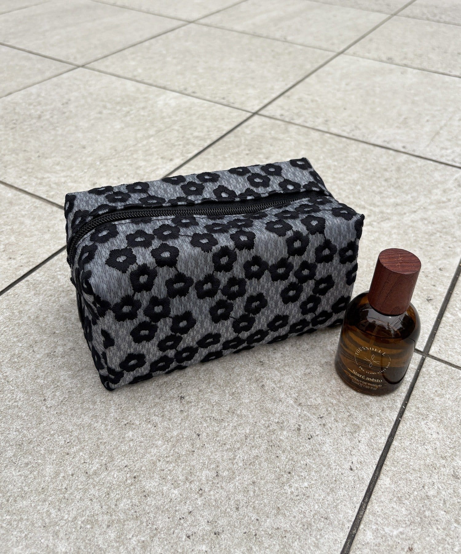 お花の刺繍がとても可愛いです。この大きさや形がお化粧品を入れやすくて便利です。