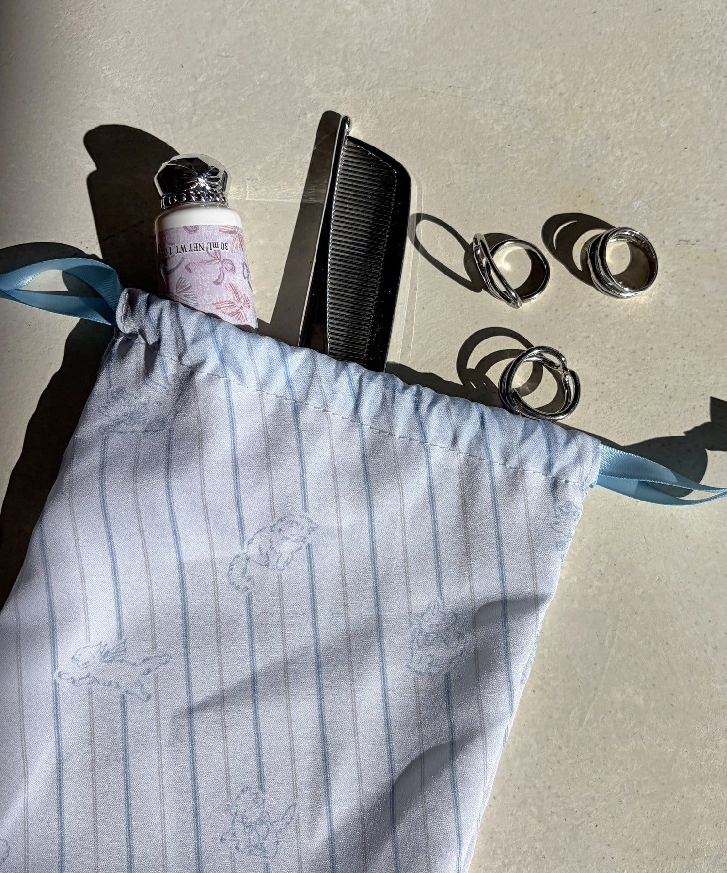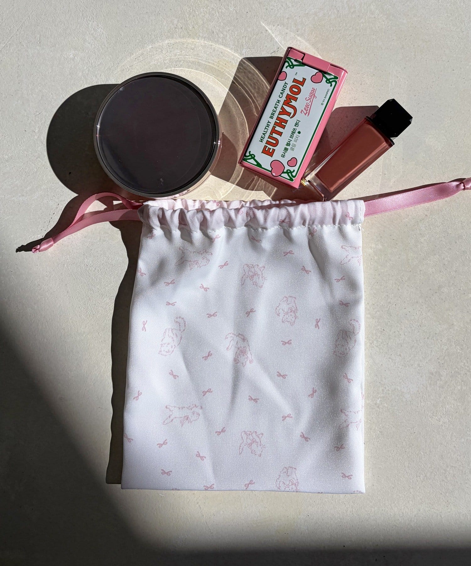 アクセサリーや小物を入れるのにちょうど良い巾着ポーチ。