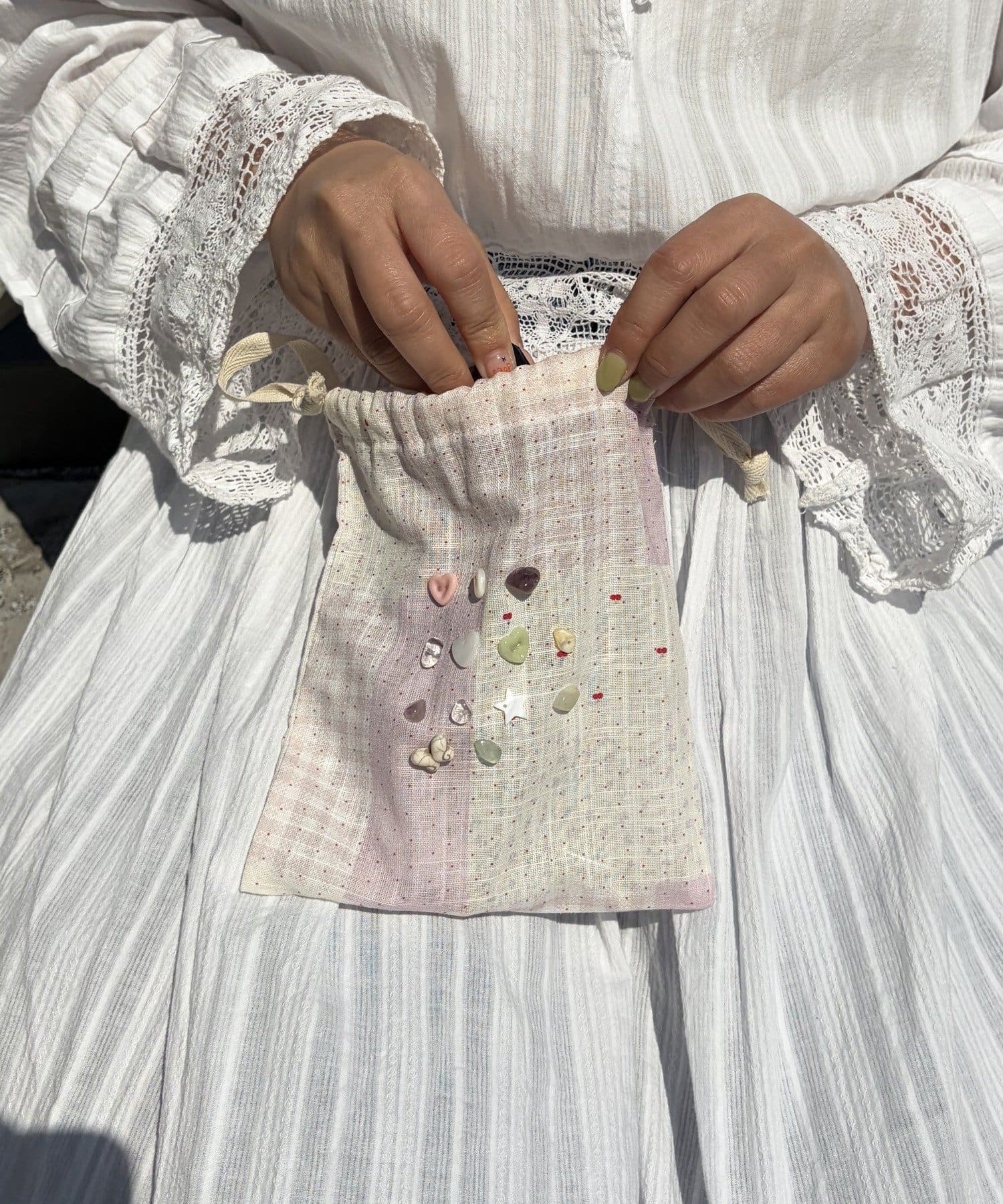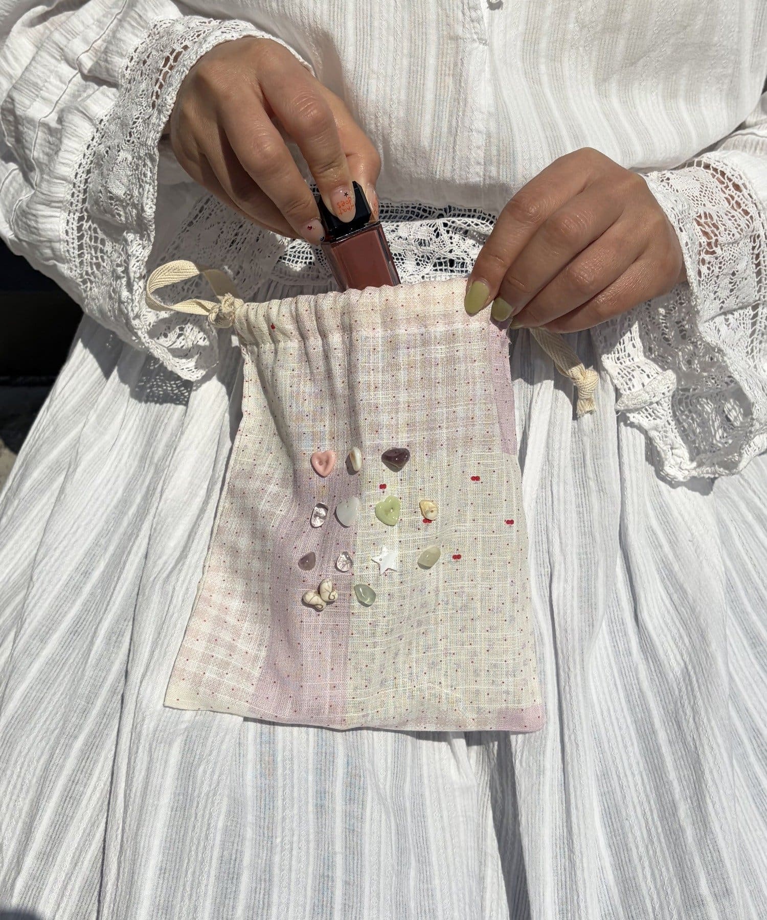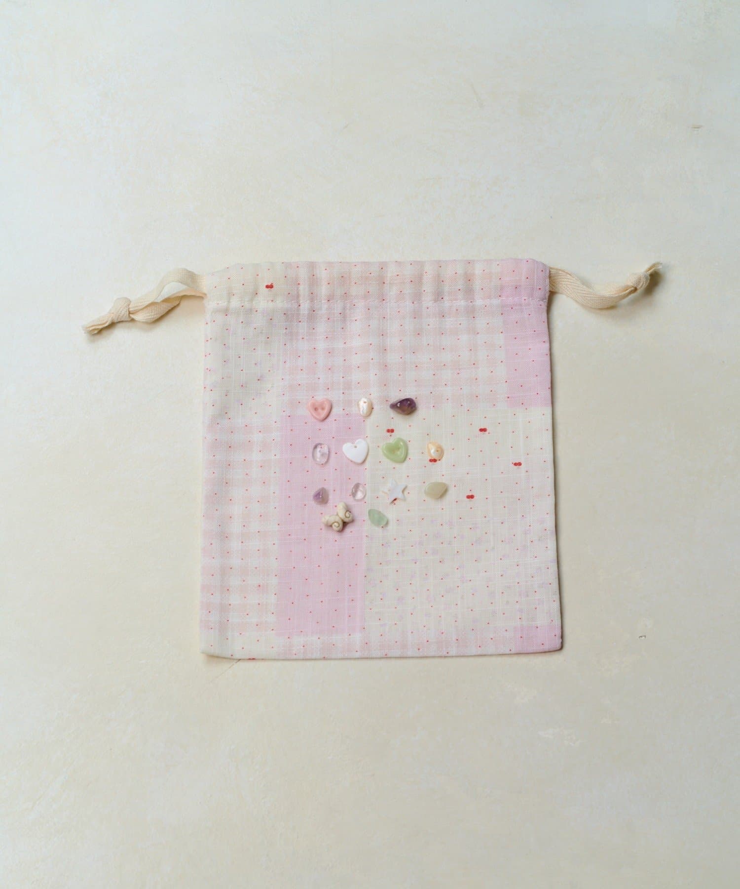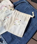淡い色味が可愛らしいボタンアイテムシリーズの巾着ポーチ